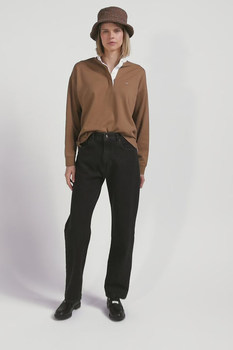 Maillot manches longues en coton cerclé marron broderie dos coupe Regular