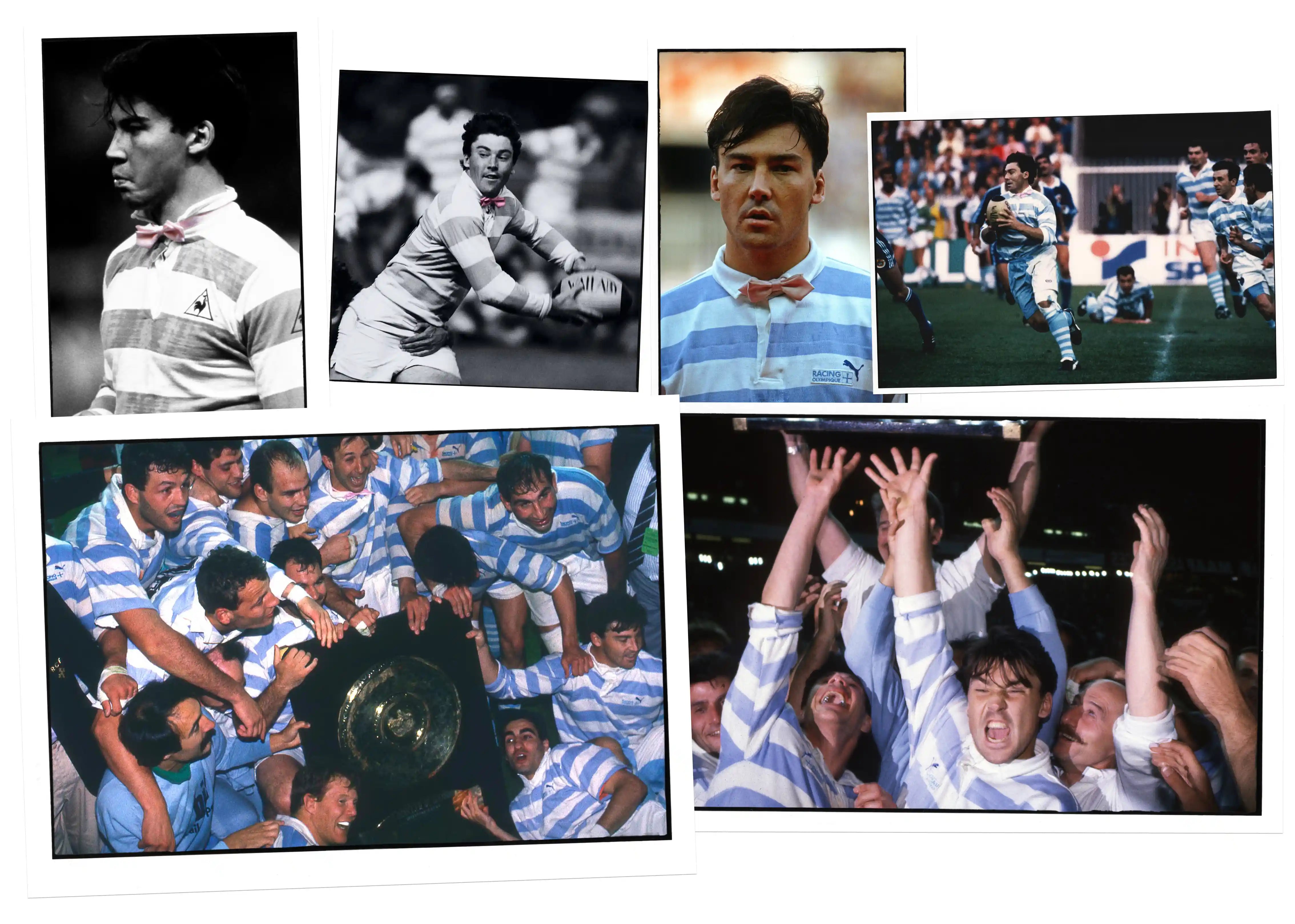 On the national level, Franck Mesnel would play his entire career for one club – Racing Club de France – and after losing the final against Toulon in 1987, he would be crowned French Champion by winning the final against Agen in 1990, with, obviously a pink bow tie around his neck on that magnificent sky blue and white jersey which was an essential reason for his coming to the legendary Racing Club de France.