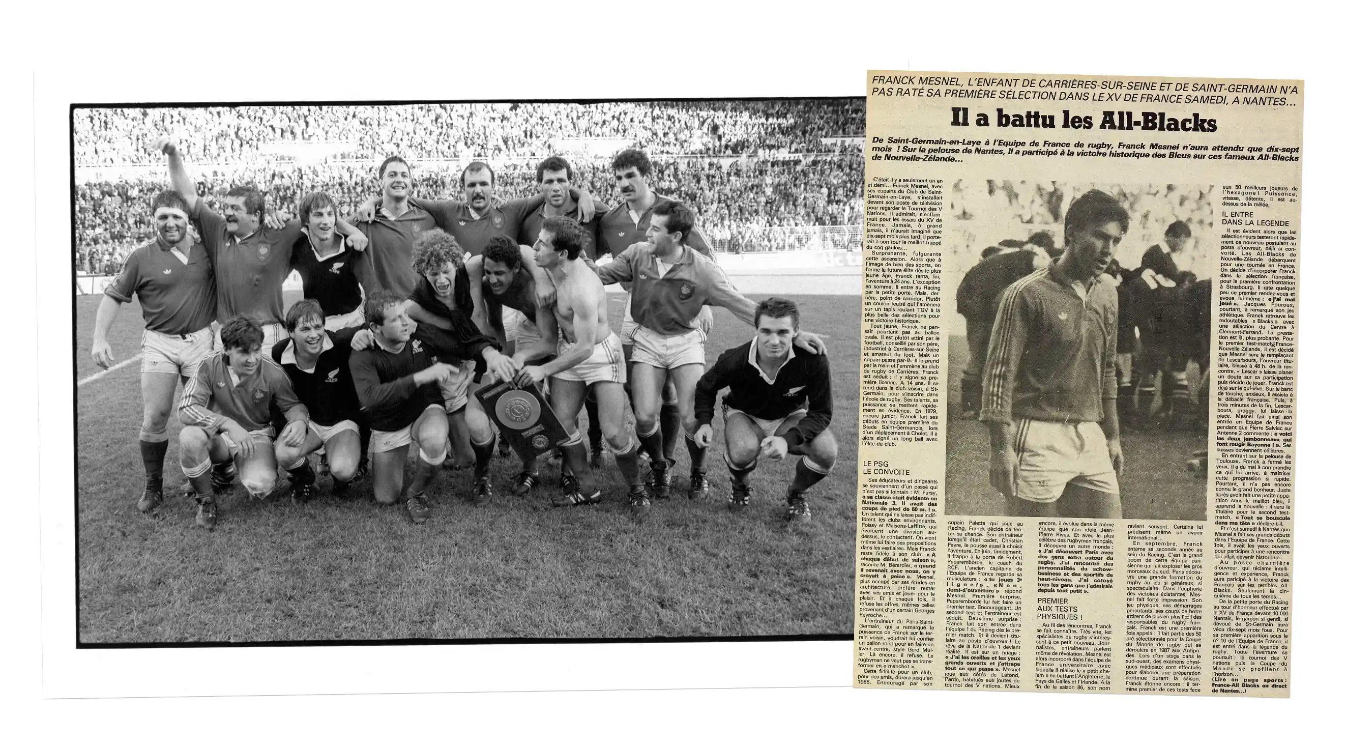 Author of a meteoric rise from his first season with Racing Club de France, in November 1986, the native of Carrières-sur-Seine was called up to the French team by Jacques Fouroux who very quickly trusted him to face the fearsome All Blacks on tour in France. "I have always had admiration for the All Blacks," he admits. "In my eyes, these men from the antipodes who have succeeded in their melting pot, combining British rigor with the instinct of the Maoris and other Polynesians, practice dream rugby, based on taking individual initiative, by completely empowering the support players who must position themselves at the right level and offer alternatives, a kind of rugby that always moves forward like entrepreneurs!"