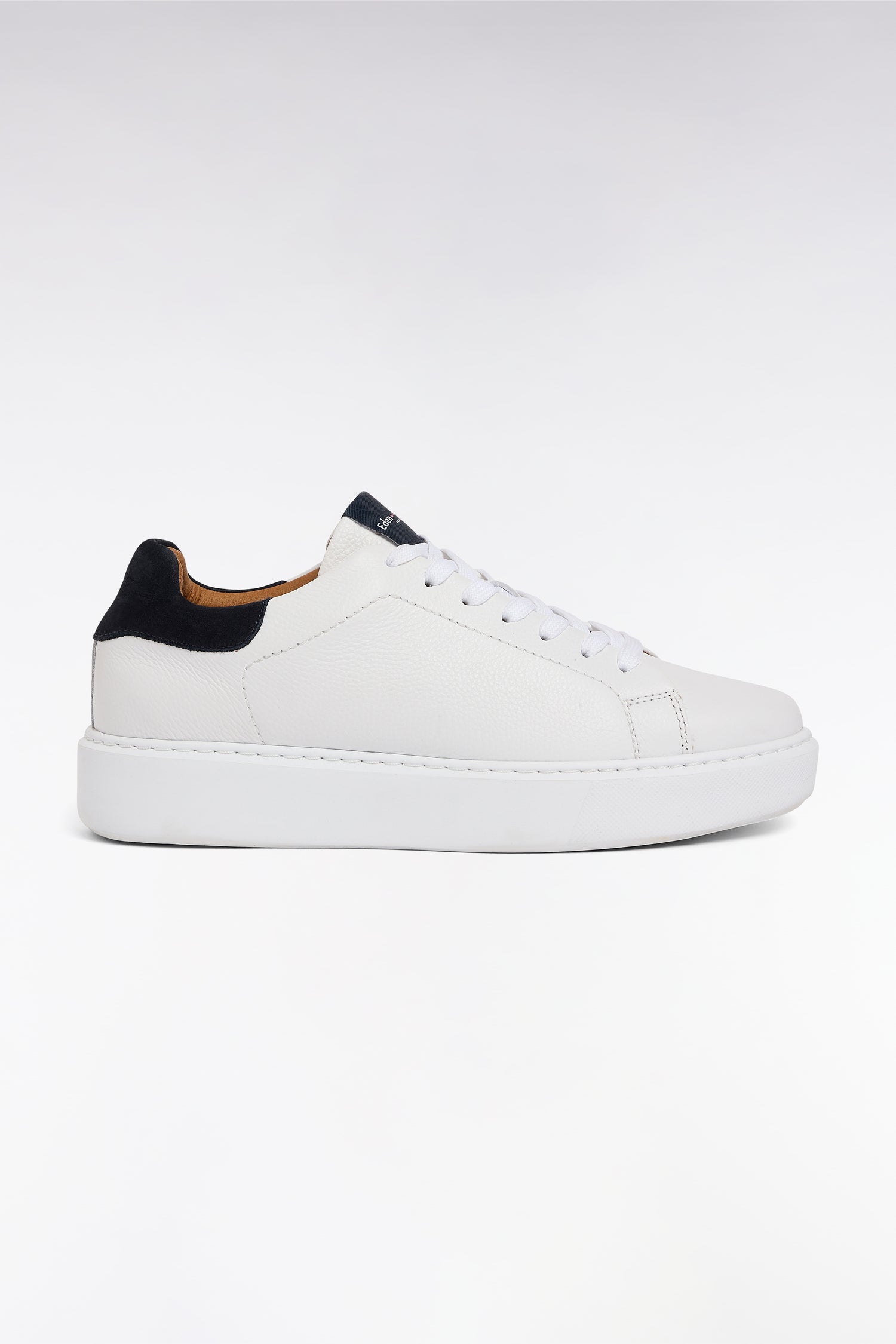 This pair of white women's sneakers revisits the sport-chic style of our fashion and accessories collections with contrasting navy leather details and high-quality construction ensuring comfort and durability. The soft upper, comfortable sole and tone-on-tone laces make it a safe everyday value. The discreetly embossed bow tie emblem on the heel reinforces the elegance of these white grained leather sneakers. A mastered balance between comfort, style and identity that has set our creations apart since the beginnings of our House. Wear with raw jeans, a midi skirt or dressier pants to break the codes.