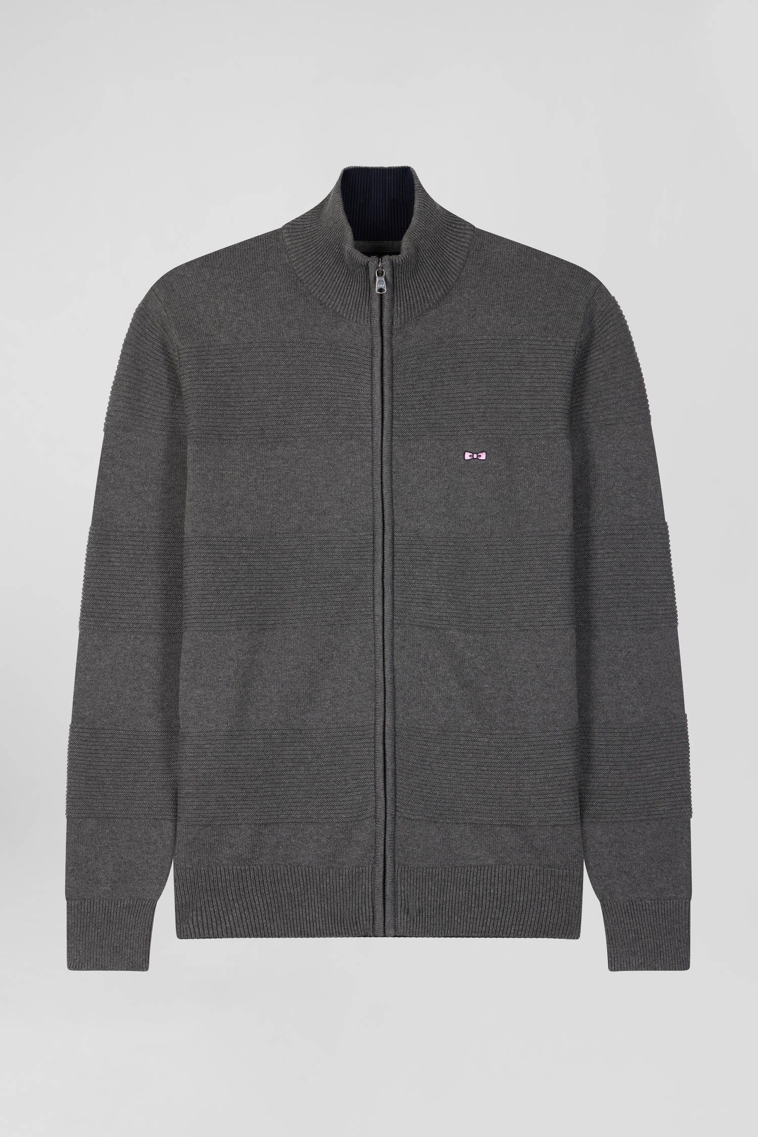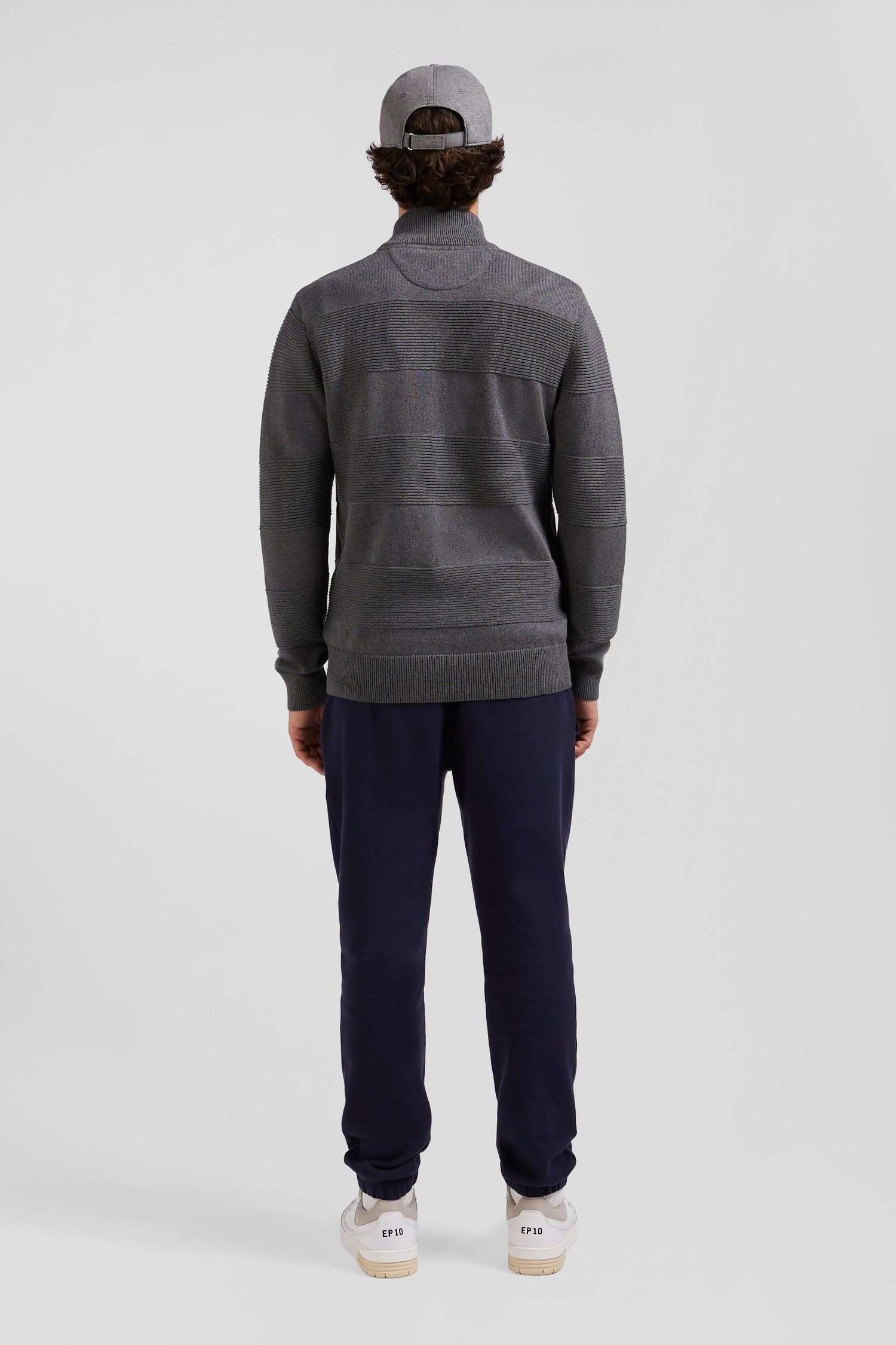 Embrace the Eden Park spirit with our unique zipped cardigan, where the play of knits creates a tone-on-tone striped effect, inspired by hooped rugby jerseys. Carefully crafted in cotton, this men's cardigan offers both comfort and style.
