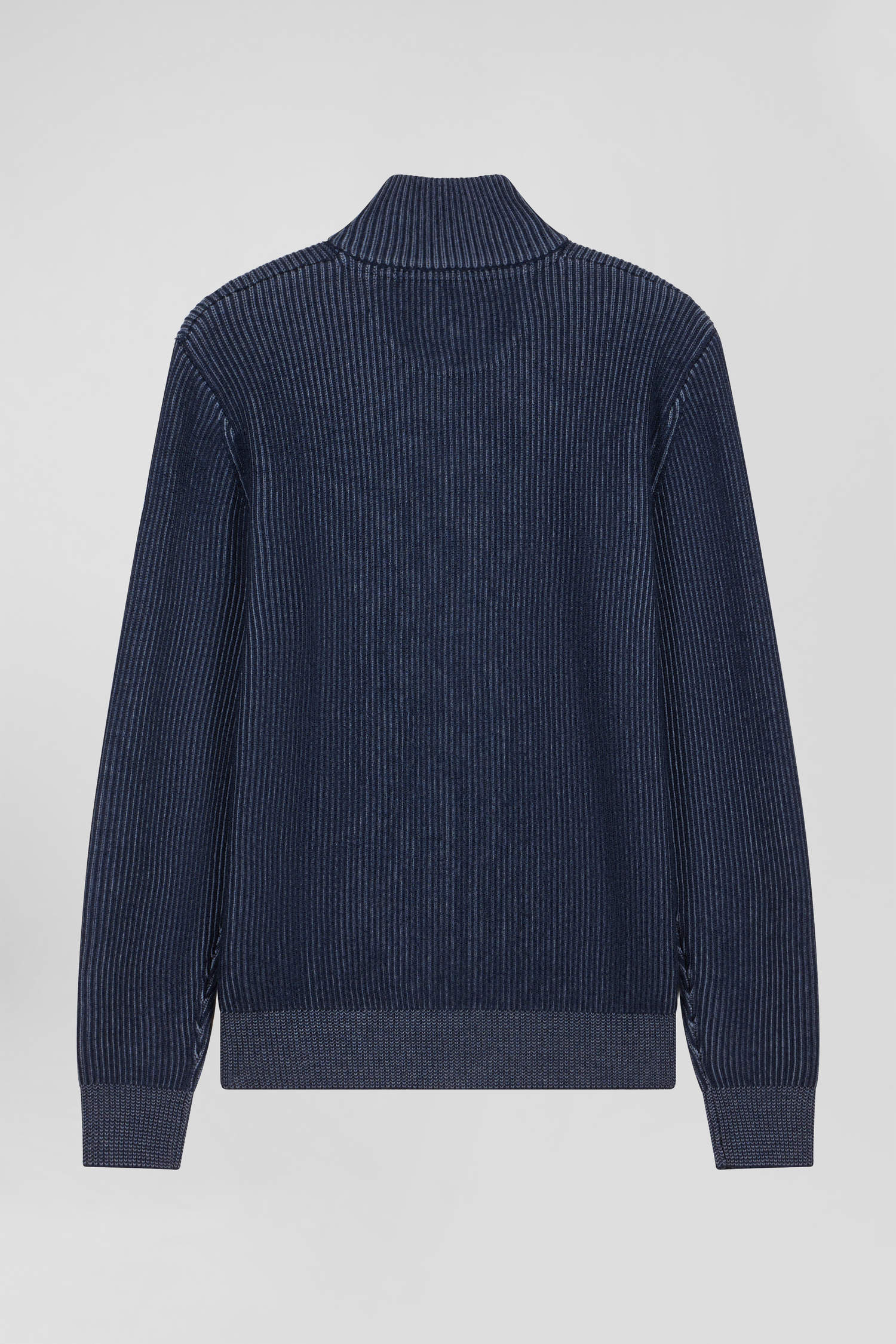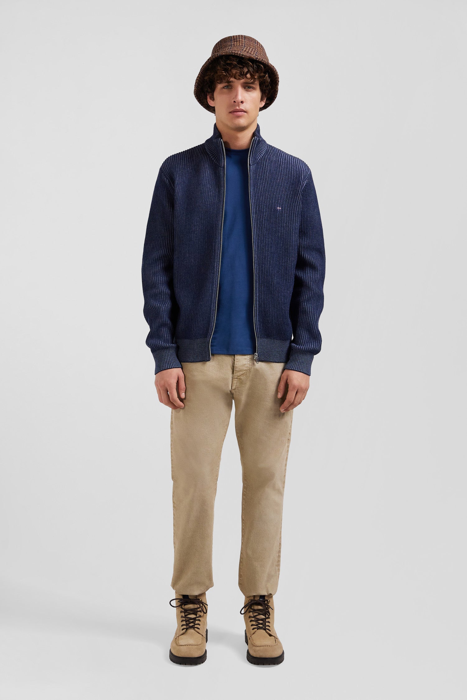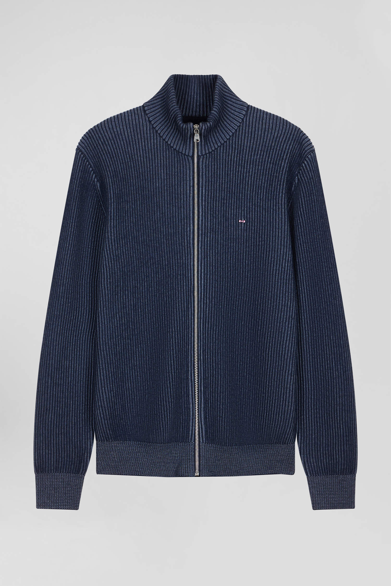 Our men's zip-up cardigan combines wool and cotton for optimum wearing comfort. Its straight Regular fit and gray zip are enhanced by a knit that creates a vertical stripe effect, for a modern, sports-inspired style. Available in three timeless colors, this zip-up cardigan is a perfect match for the men's wardrobe imagined by Eden Park for Fall/Winter.