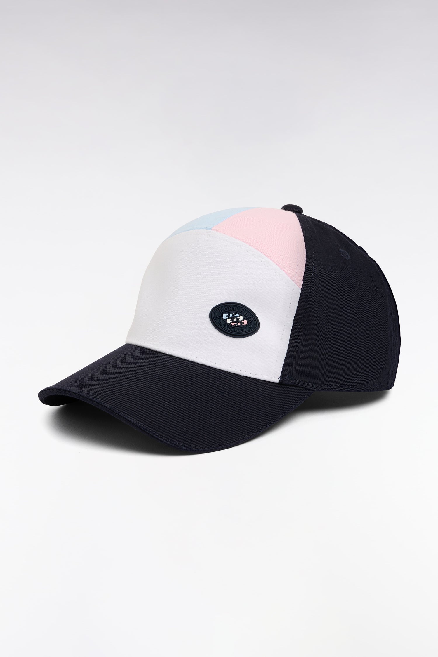 Réalisée dans un mélange de twill et jersey de coton pour une touche sportive, cette casquette masculine présente un colorblock signature et un badge en gomme sur le devant figurant notre emblème en version tricolore ciel-blanc-rose. Un modèle athlétique retravaillé dans les codes de notre Maison pour parfaire une silhouette en toutes occasions.