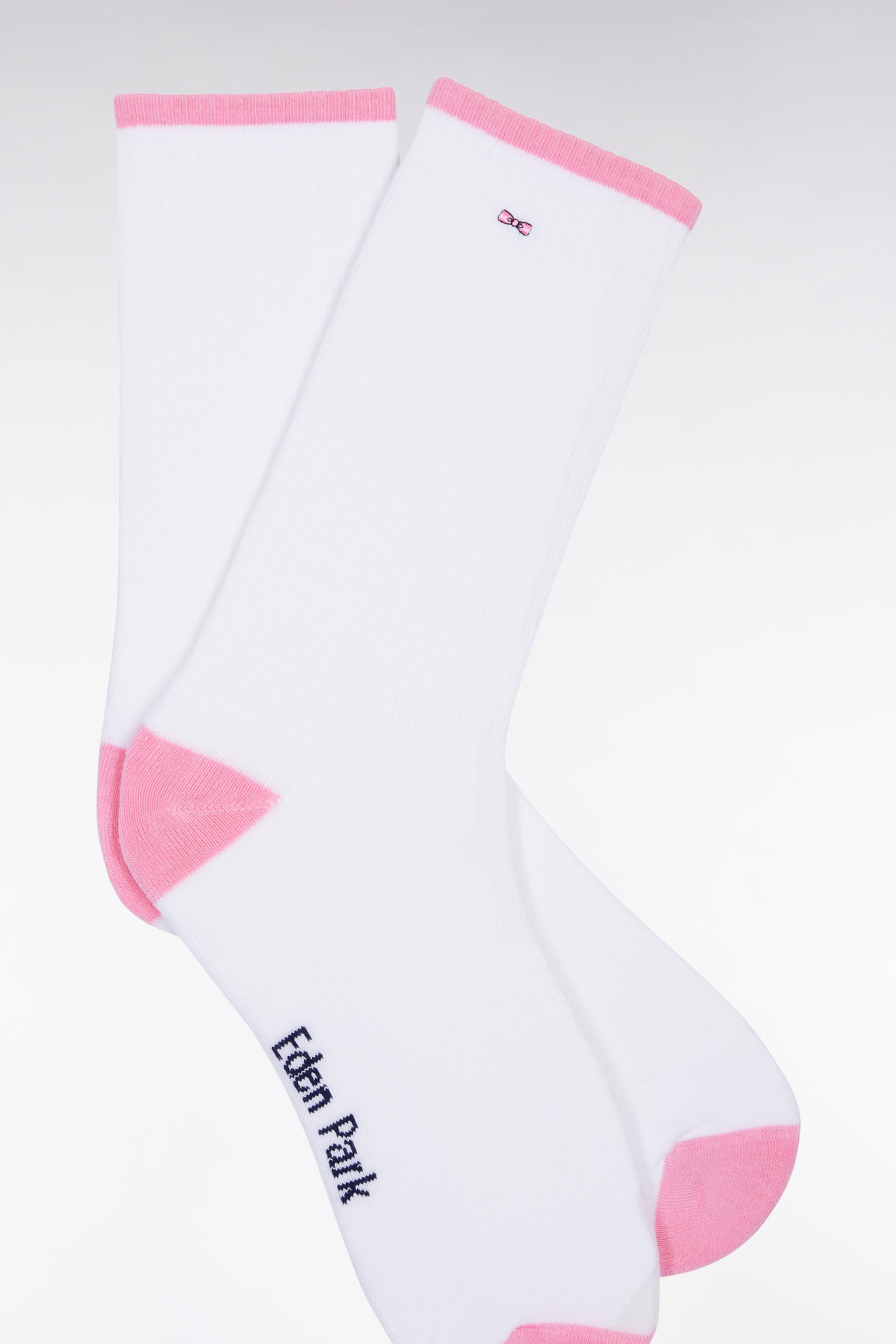 White cotton blend socks with pink reinforcements