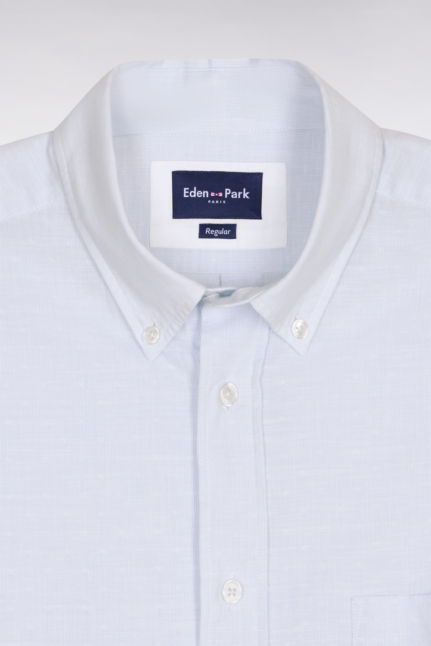 Chemise à manches courtes en coton jacquard rayé bleu ciel