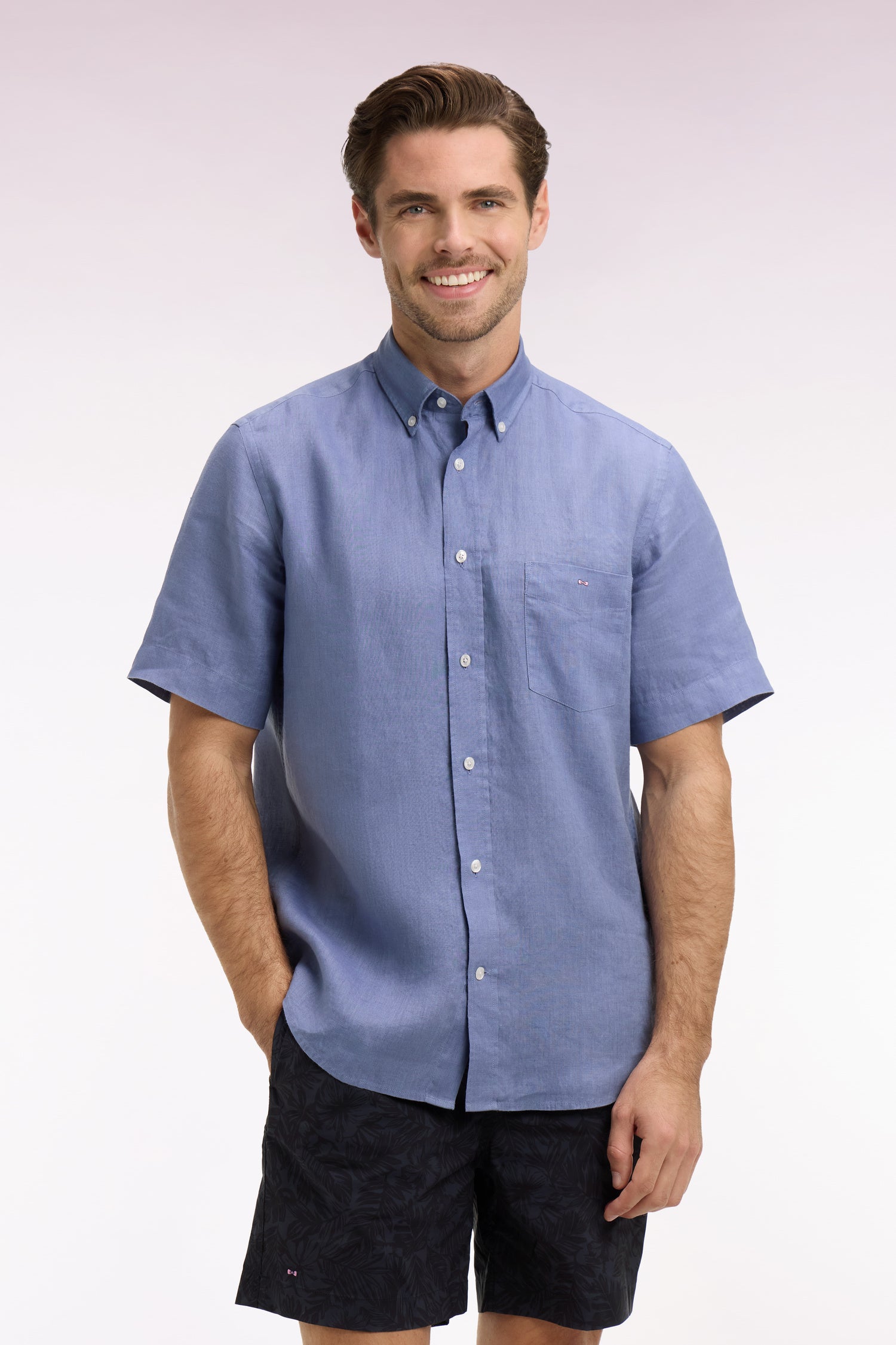 Cette chemise à manches courtes en lin pur s’impose comme l’incontournable de la saison été. Légère, respirante et naturellement texturée, cette chemise masculine offre un confort incomparable lorsque les températures s’élèvent. Sa coupe droite à pans arrondis et son col à pointes libres lui confèrent une allure décontractée mais toujours soignée, idéale pour passer avec aisance de la ville aux vacances. Déclinée dans une large palette de coloris, des tons naturels aux nuances plus lumineuses, cet indispensable se coordonne aisément à un chino léger comme à un short en toile. Ses finitions discrètes et sa matière noble, font de cette chemise en lin le pilier d'un vestiaire estival, frais et élégant.