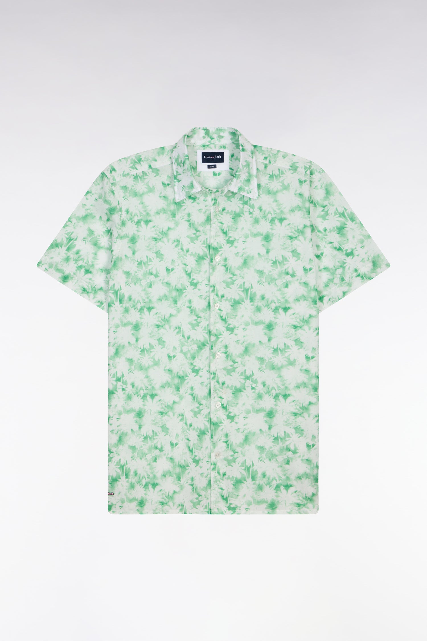 Chemise à manches courtes en popeline de coton à motif floral vert coupe slim