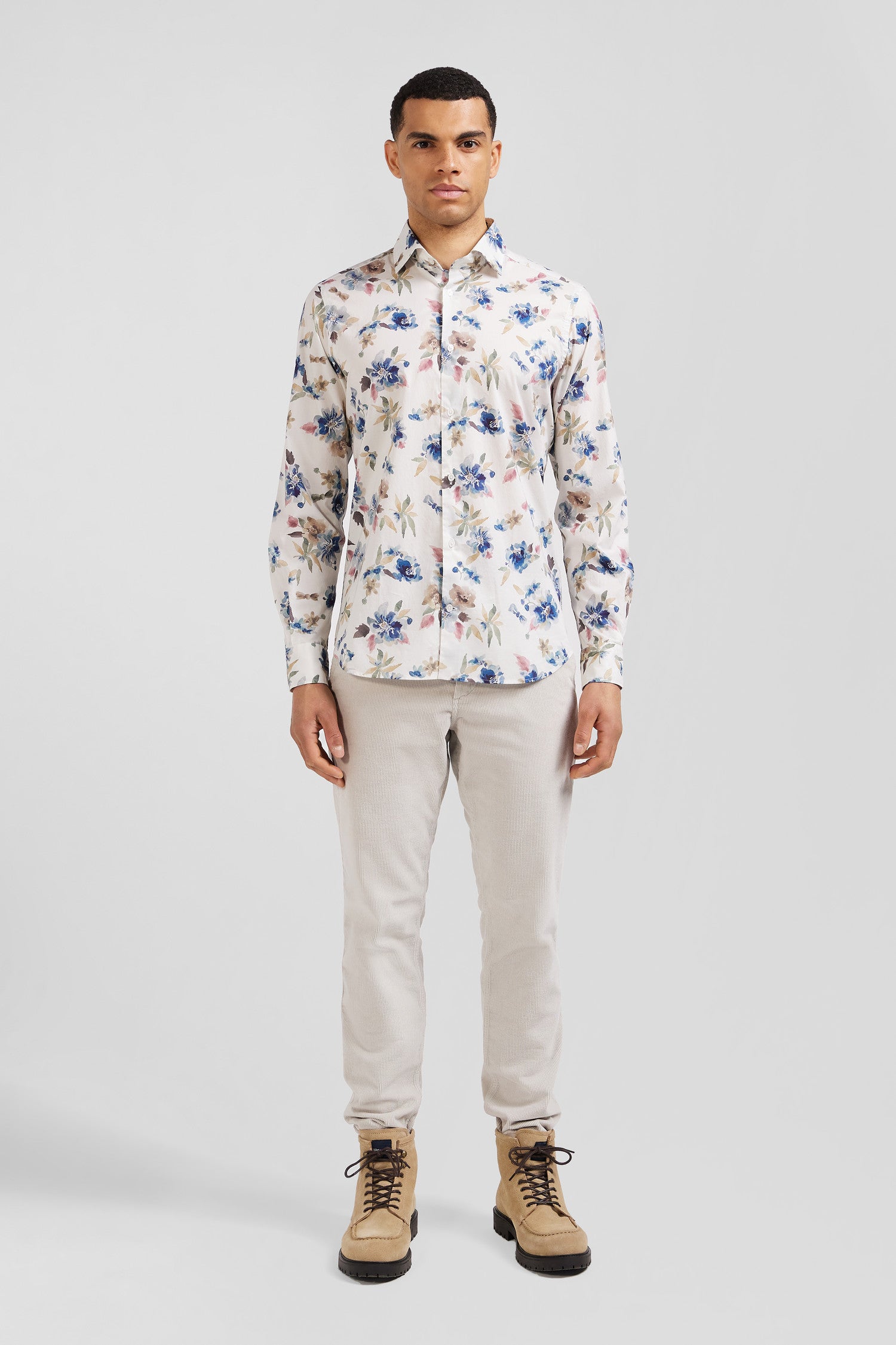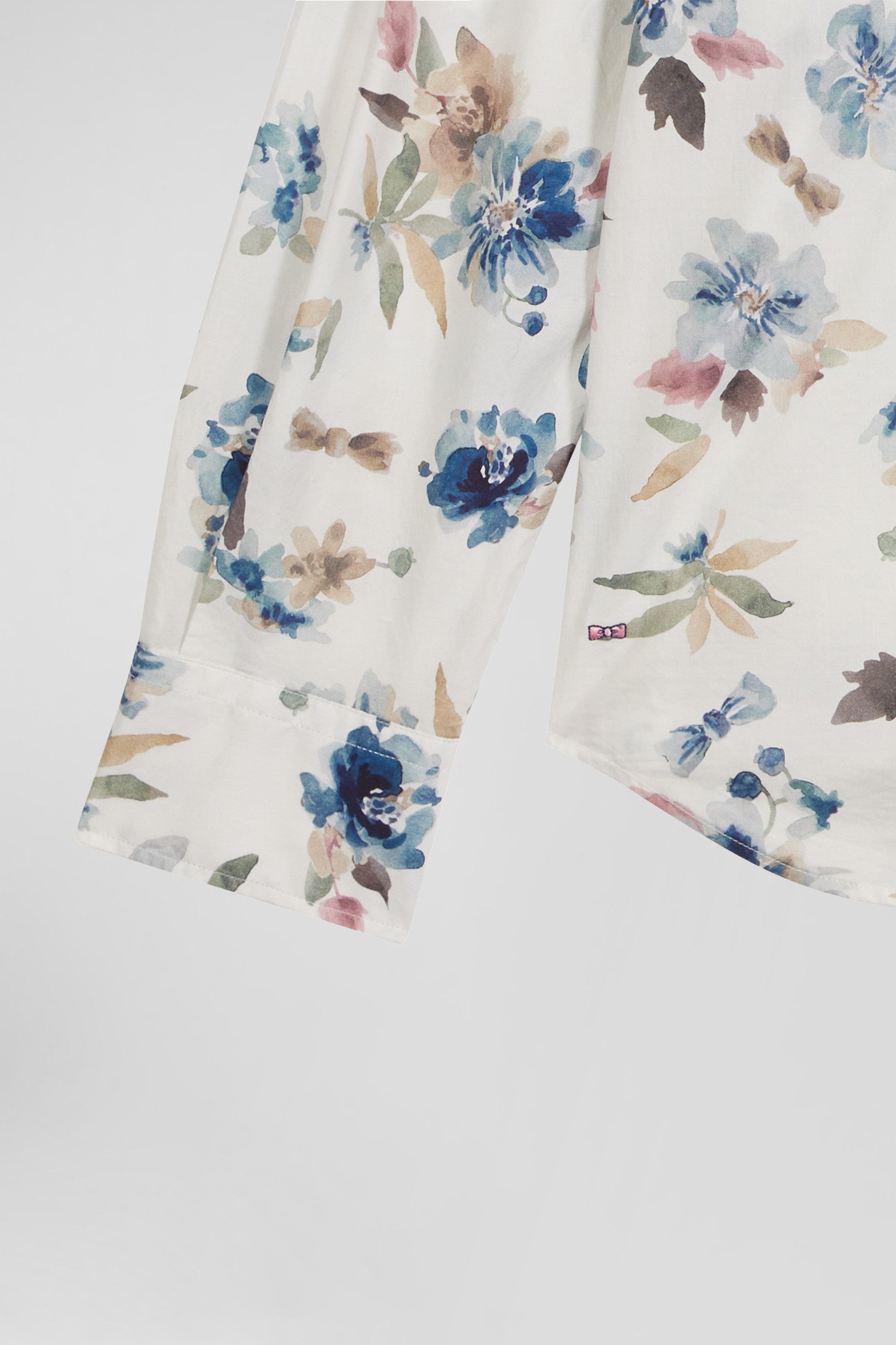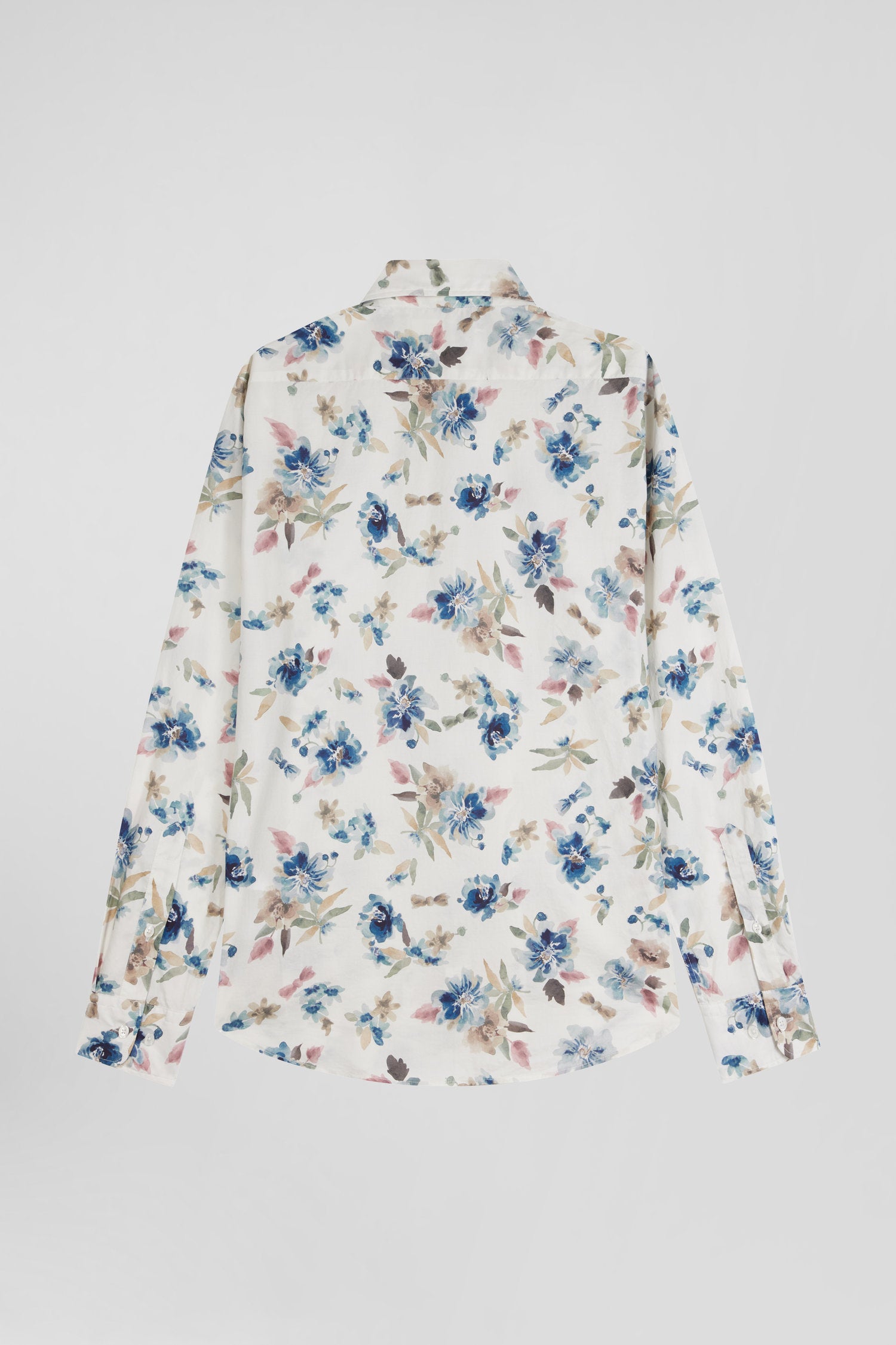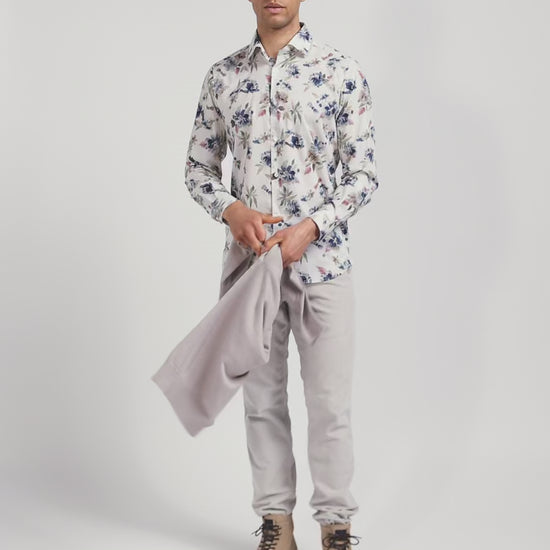 Slim ecru floral print cotton shirt