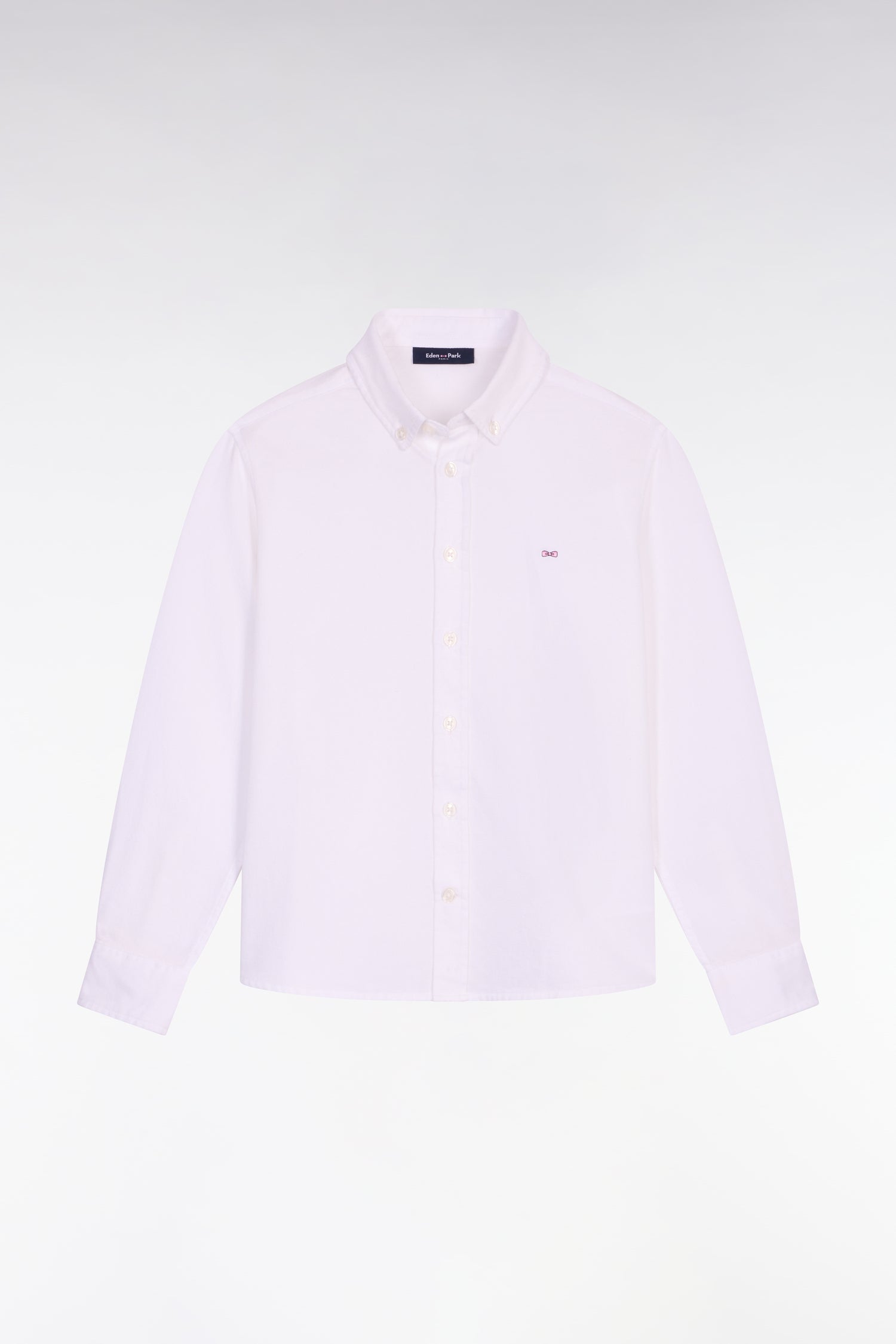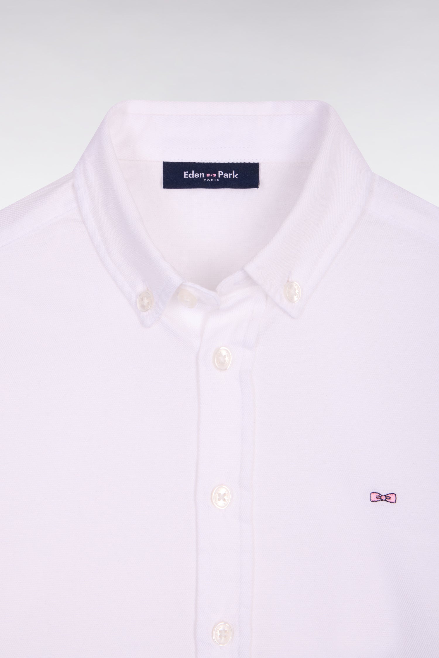 Cette chemise à manches longues pour enfant allie le raffinement d’une coupe habillée au confort du coton. Proposée dans un blanc immaculé, idéal pour le vestiaire cérémonie des plus petits, cette chemise enfant se distingue par sa broderie nœud papillon rose, signature discrète des collections Eden Park et son col classique à pointes boutonnées.