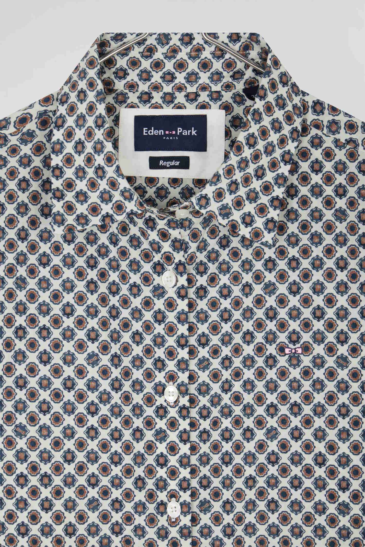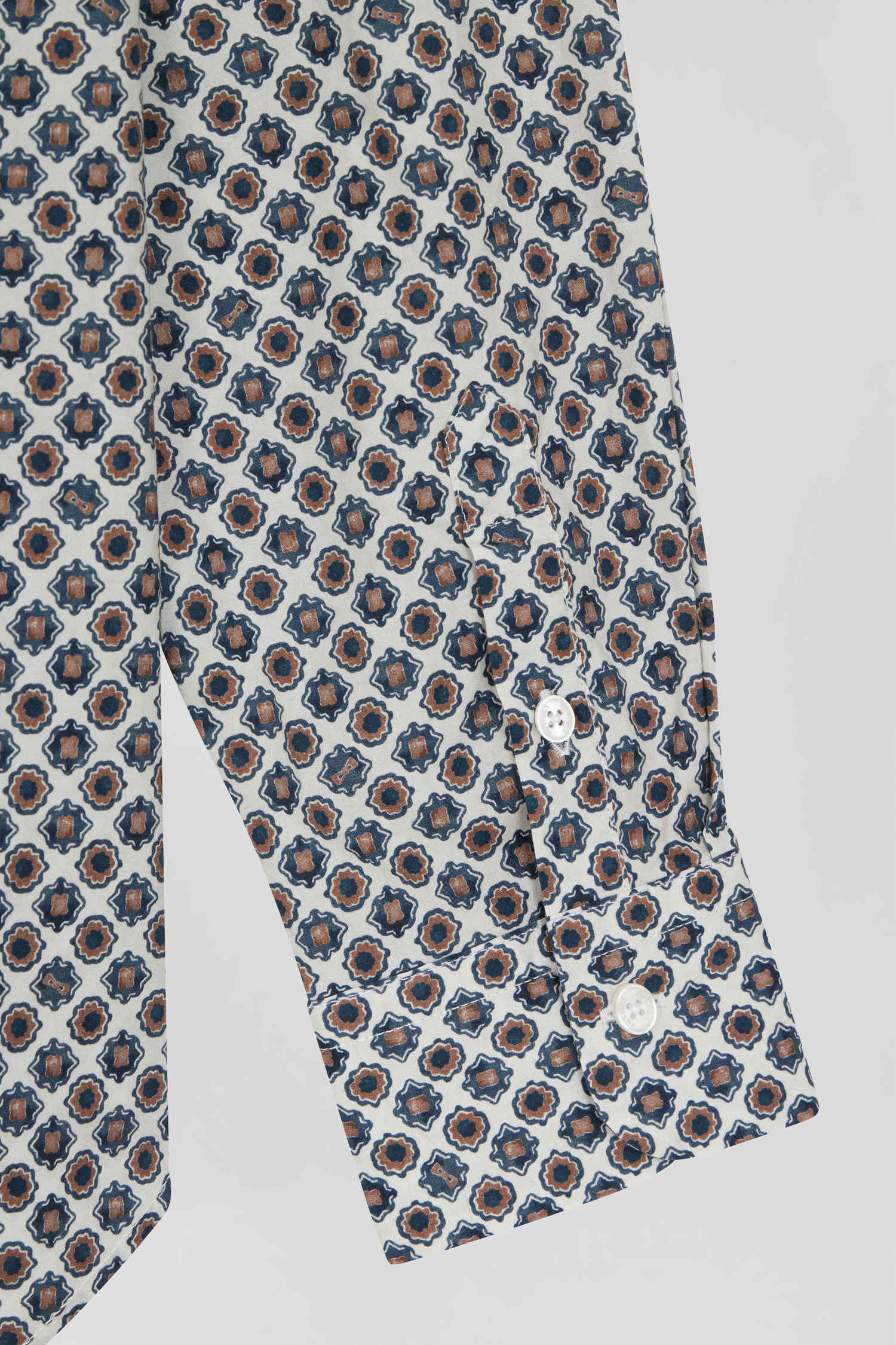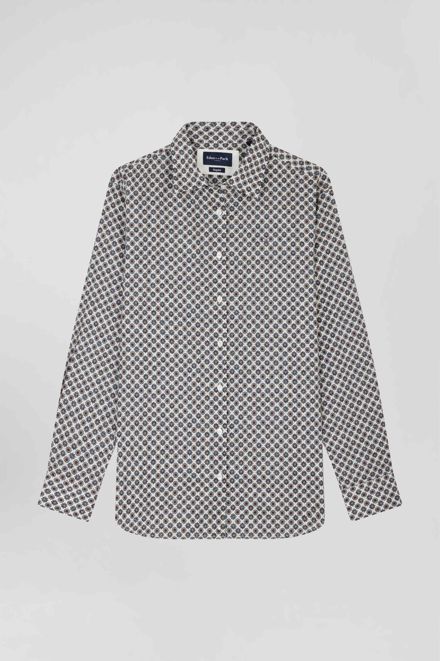 Regular ivory graphic microprint cotton shirt