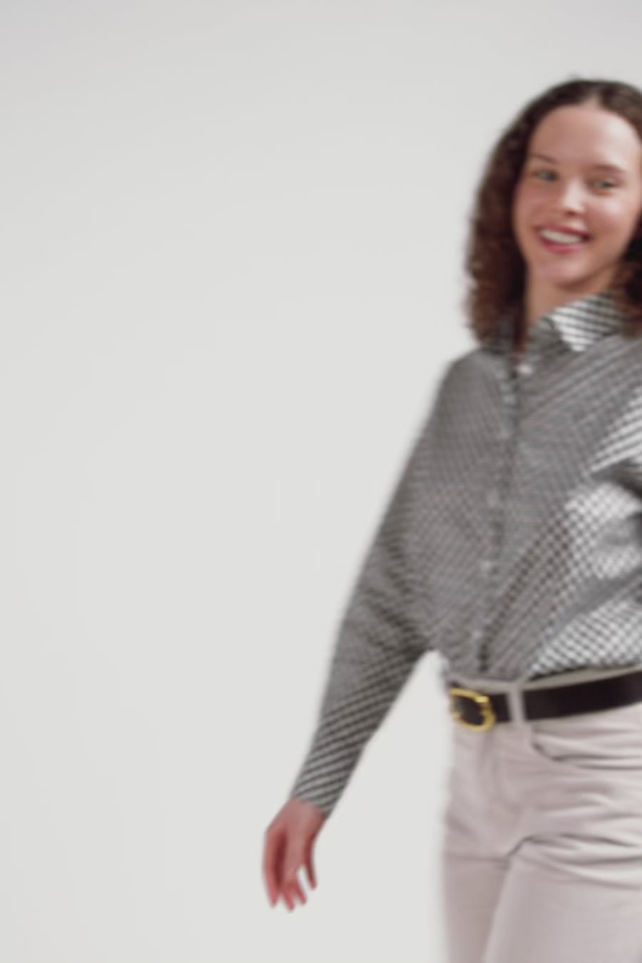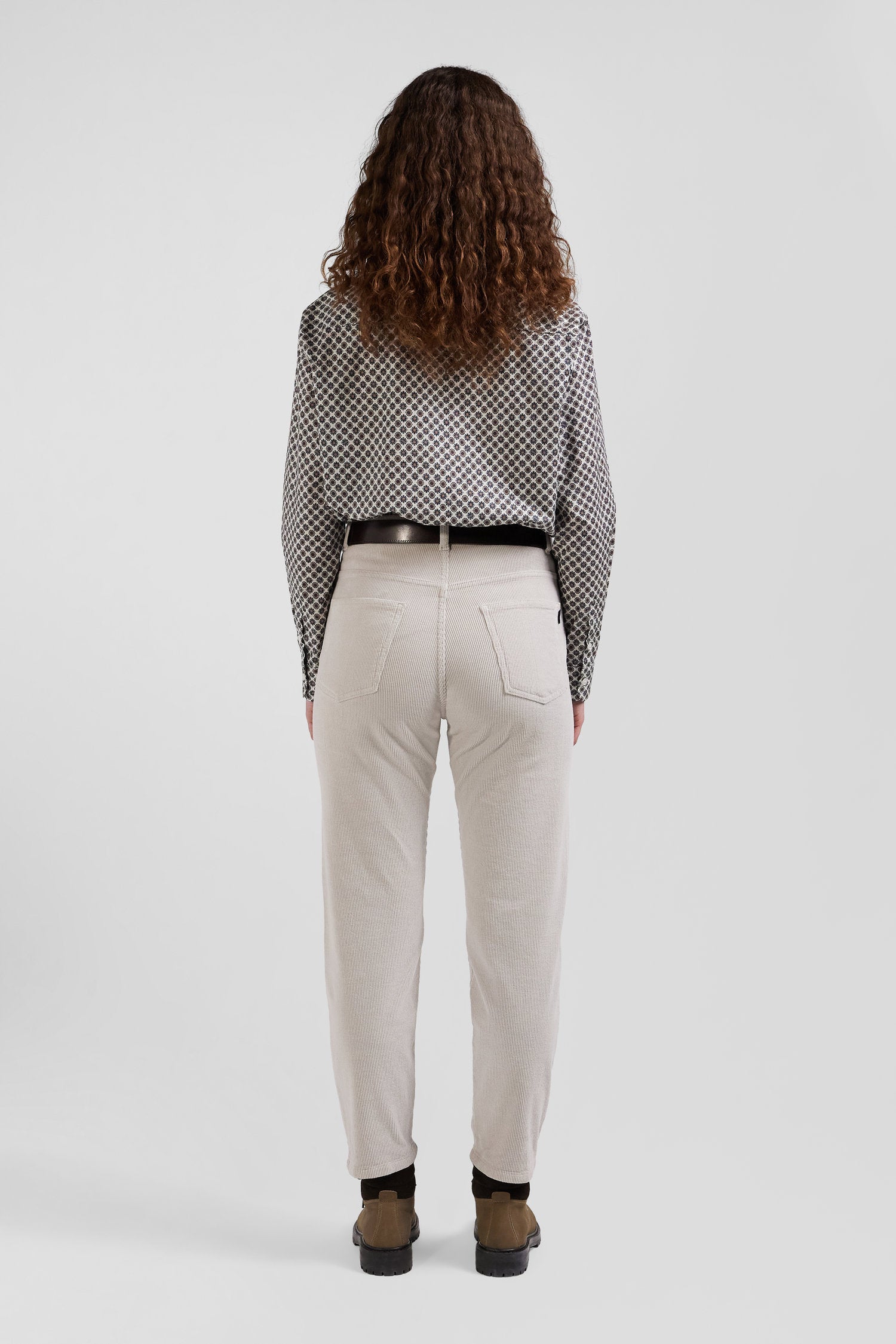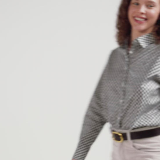 This women's shirt in cotton poplin is adorned with a graphic microprint exclusive to our Maison. In its elegant ivory and gray hues, this unique piece adds a subtle touch of originality to your outfit. Perfect for the office or a night out, this women's shirt combines distinctive style with comfort.
