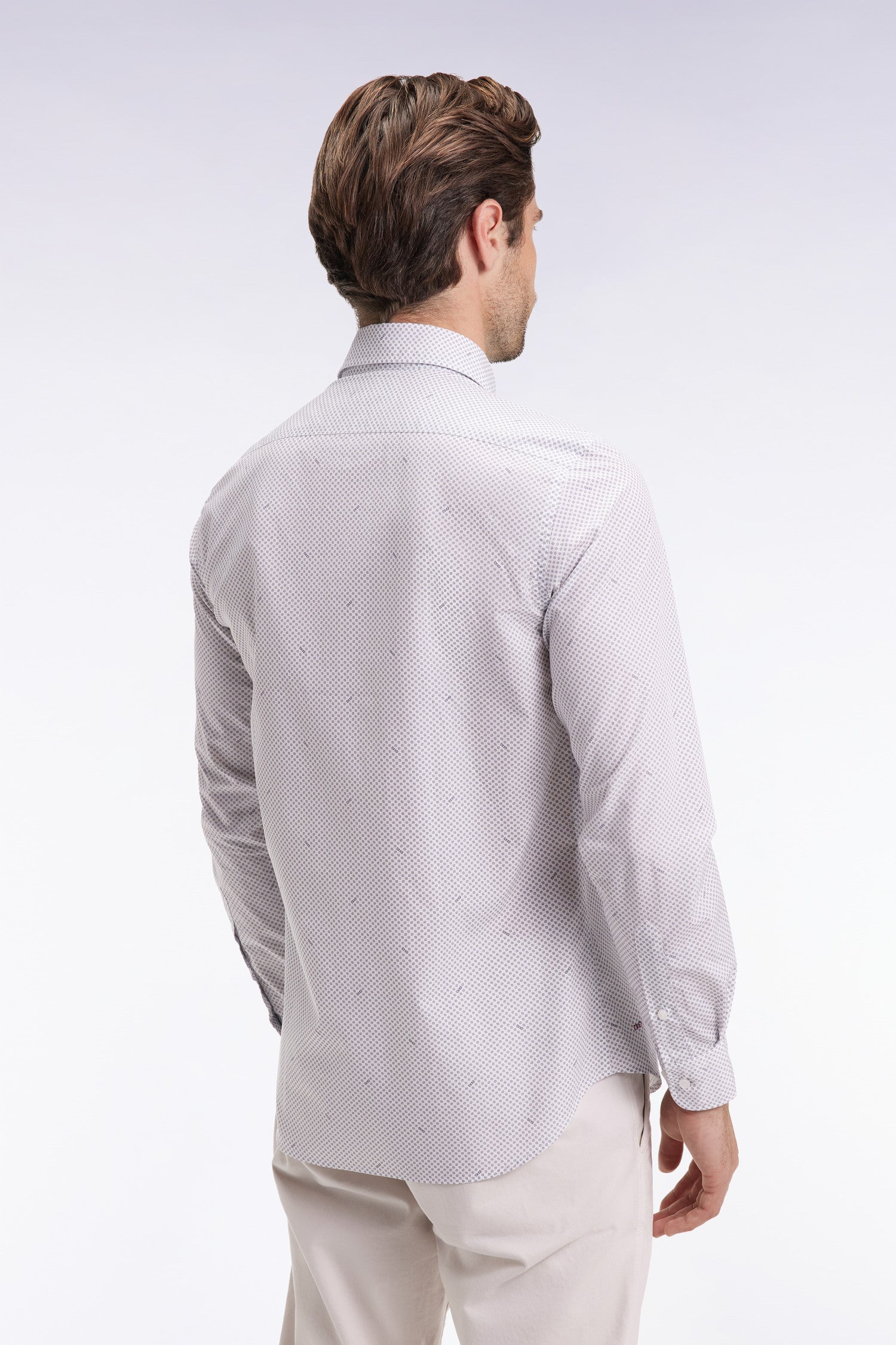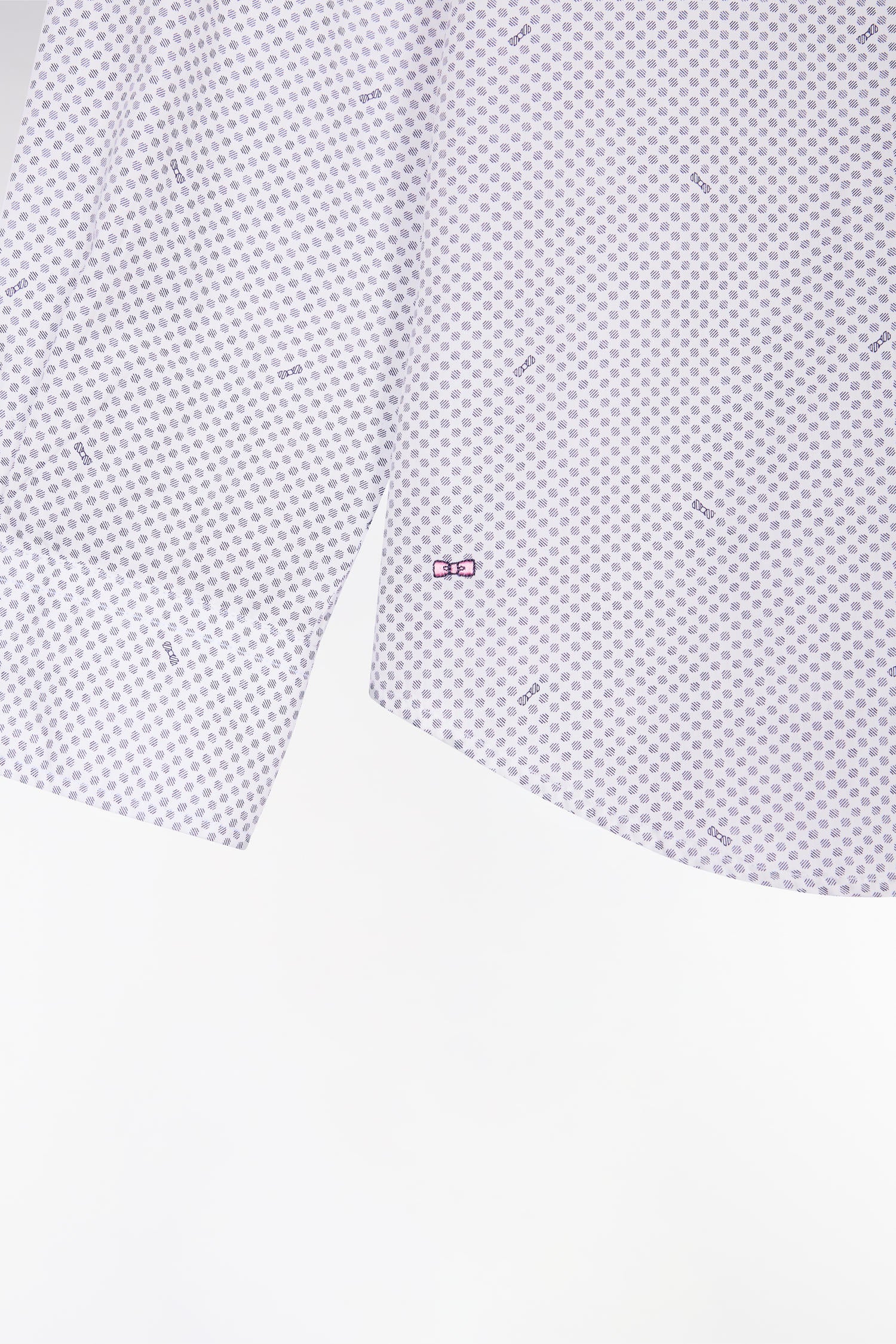 Designed for a well-groomed silhouette in all circumstances, this men's shirt with its micro-geometric print combines the modernity of the colorful motif with the softness of the luminous white cotton poplin. Its slim fit with slightly rounded sides adapts to every style, whether worn alone or under a sweater. The pink bowtie embroidery is a discreet reminder that it belongs in the Eden Park wardrobe.