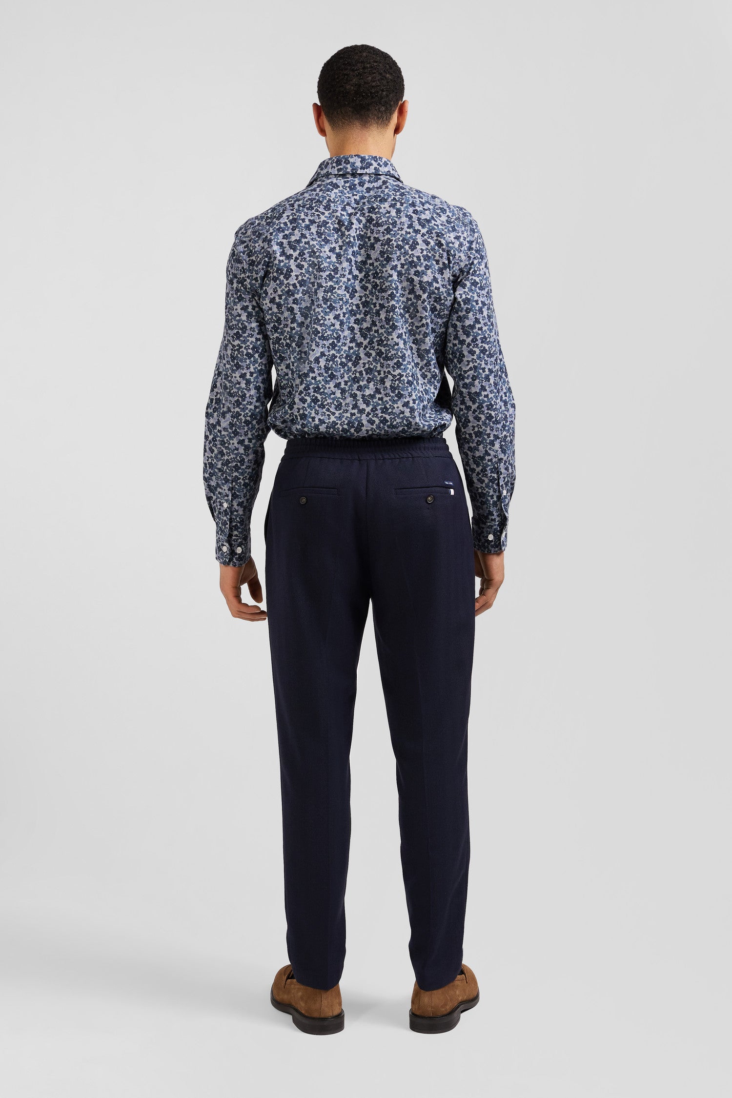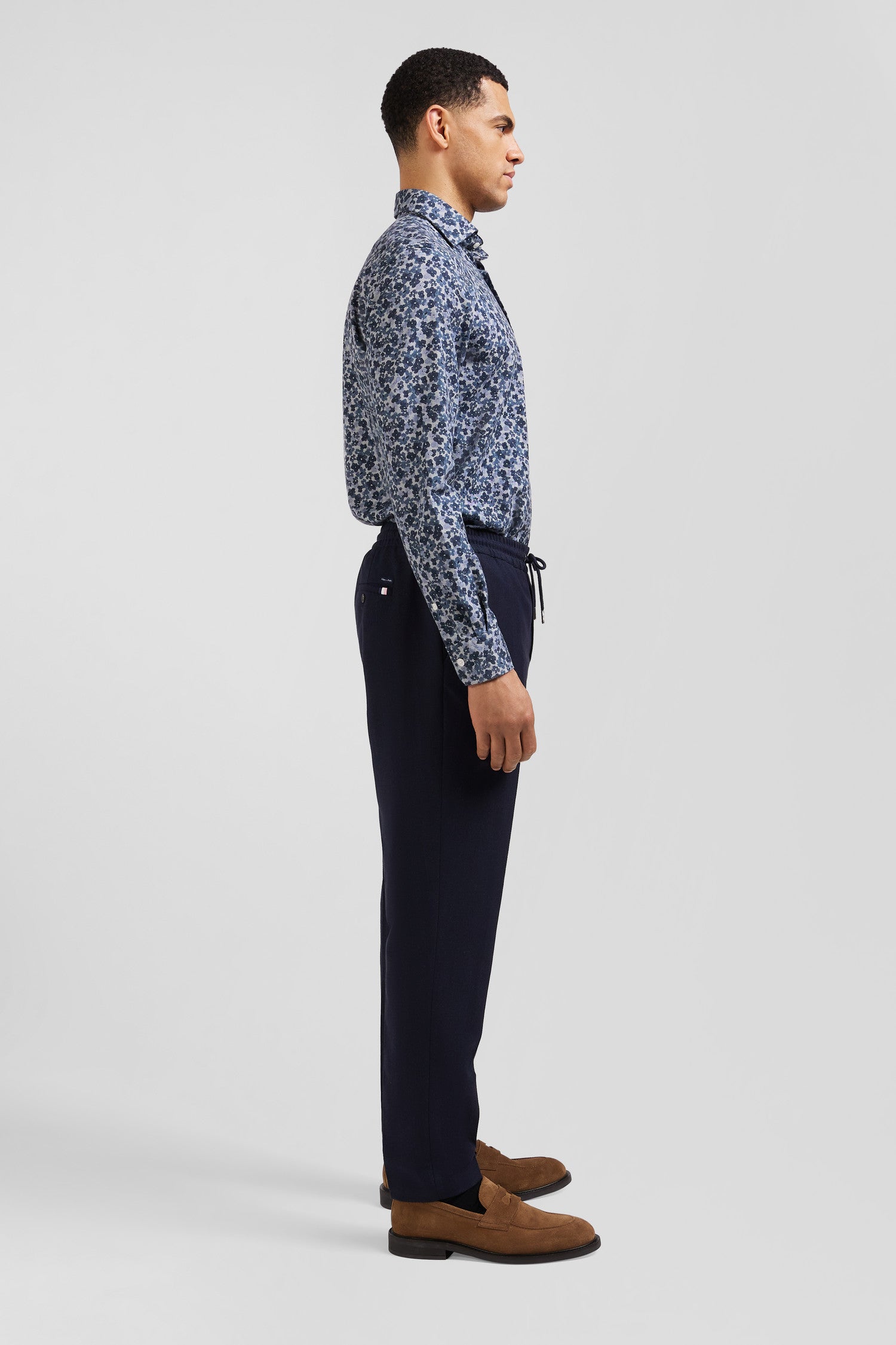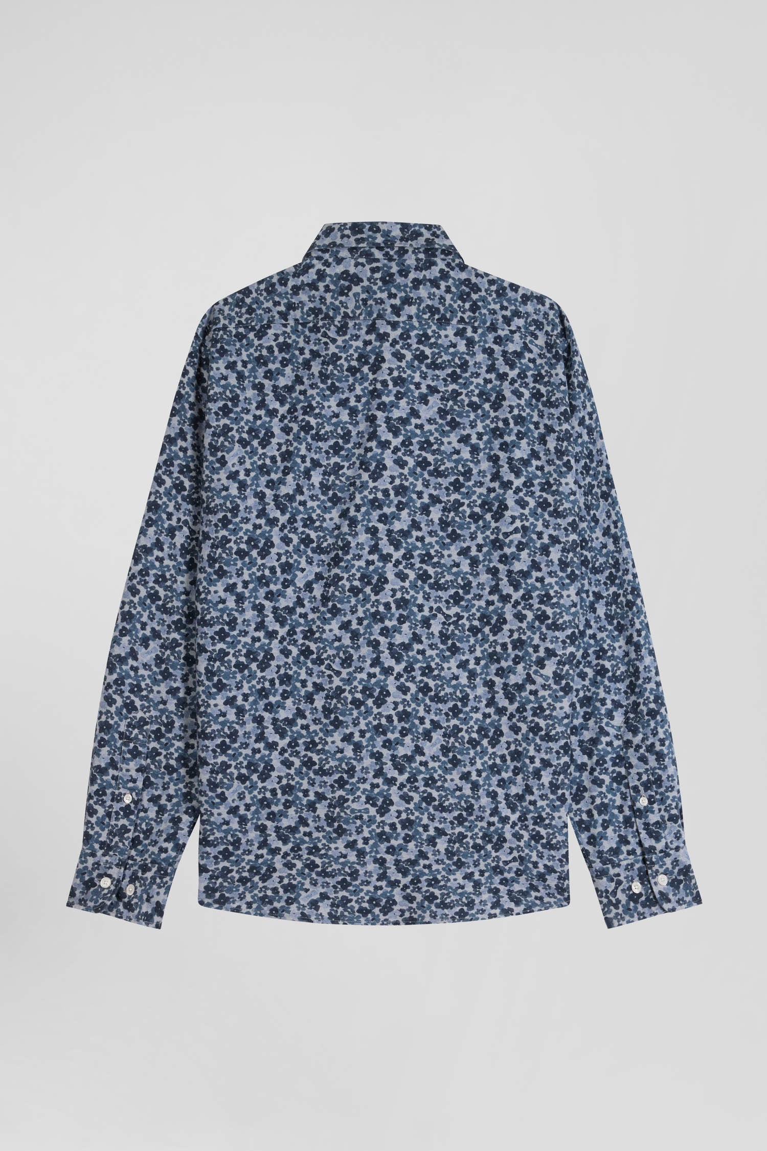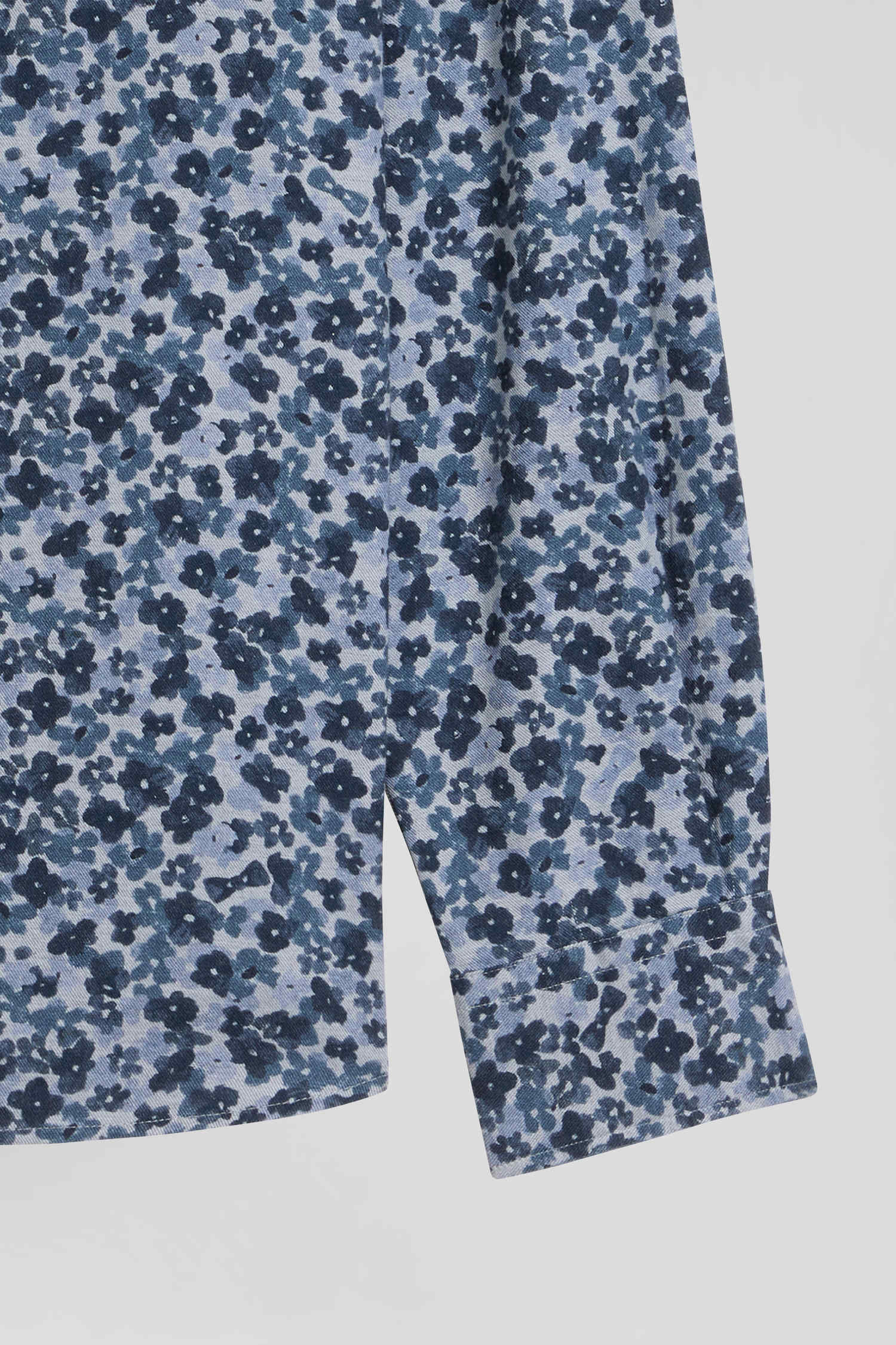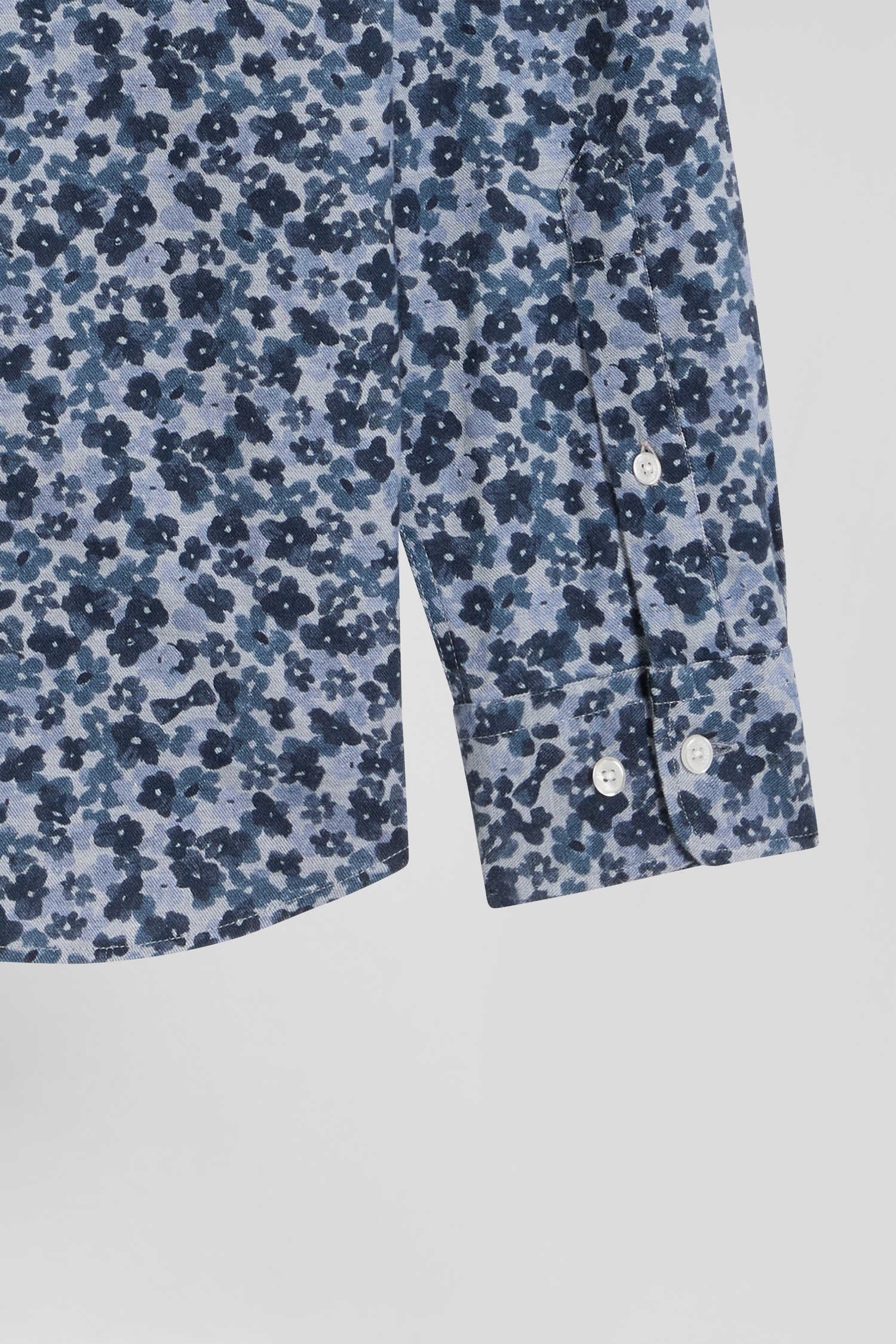 Show off your sense of style with this gray poplin shirt, featuring a floral print exclusive to our French Maison. Its slim, slightly fitted cut and button-down collar make it a versatile piece, perfect for any occasion.