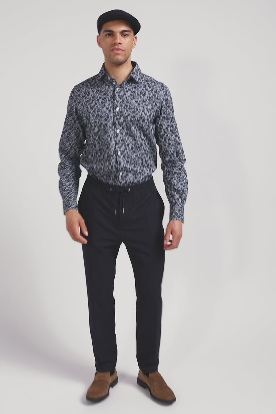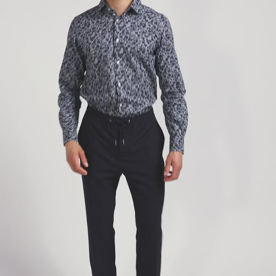 Slim-fit shirt in grey cotton poplin microprinted with flowers