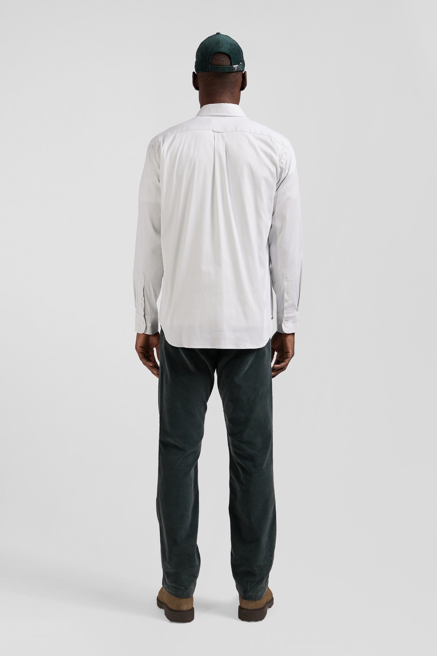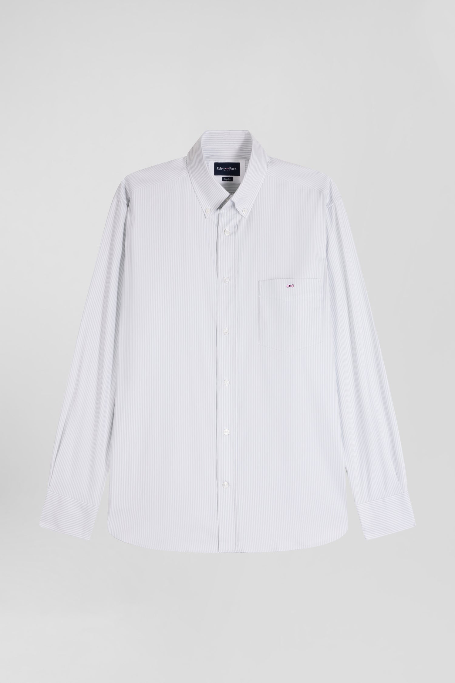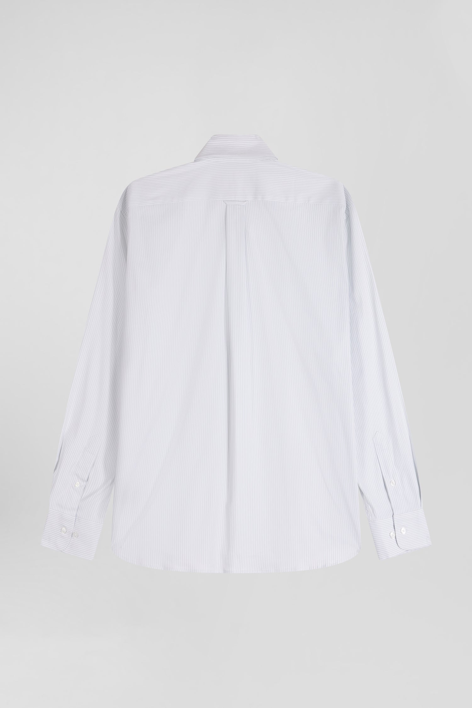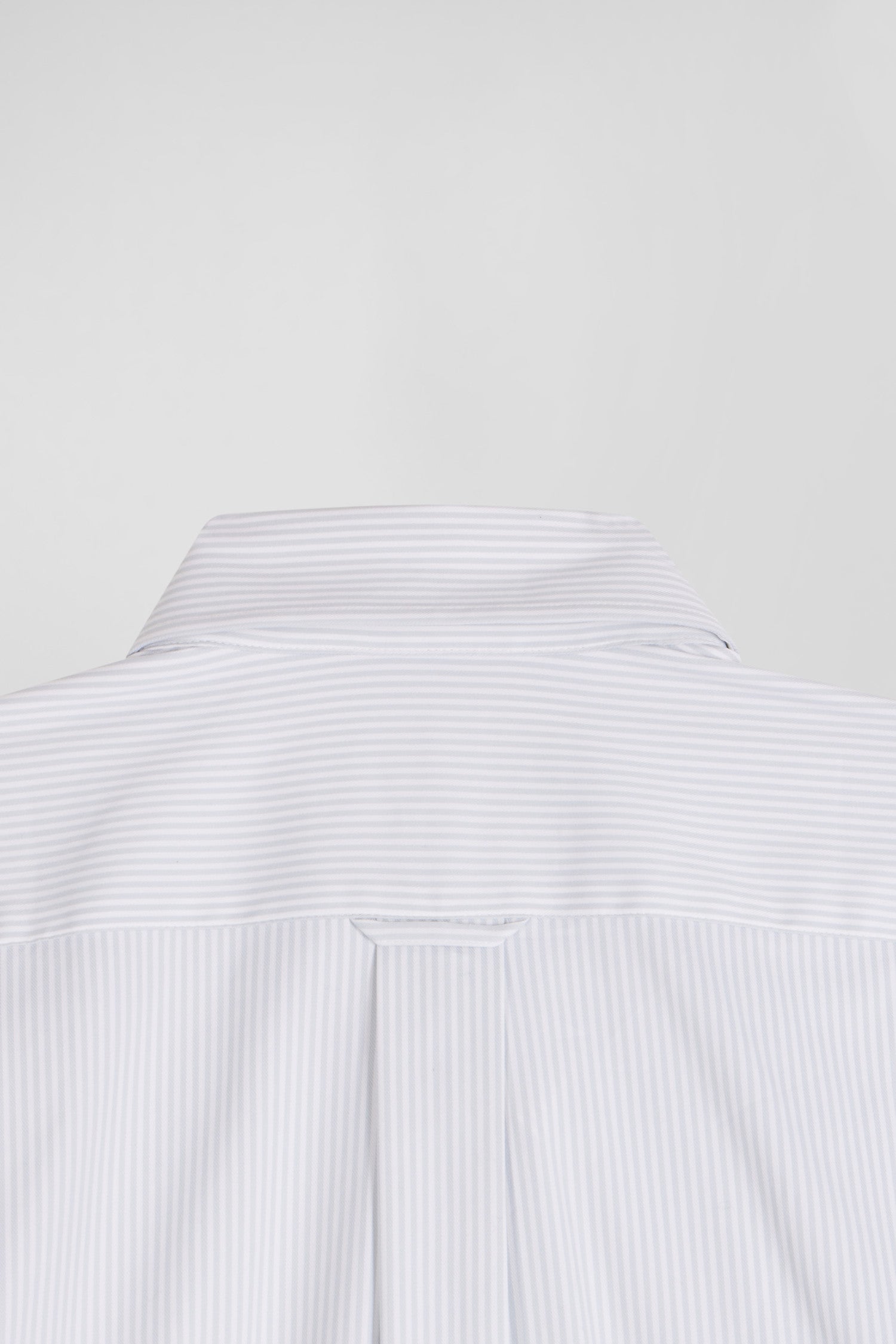 This comfortable, elegant cotton poplin shirt features graphic stick stripes for a preppy look and slimmer silhouette. This men's shirt features a casual patch pocket, a back pleat and a button-down collar for a perfect fit, the latter detail also enhancing the masculine head carriage. A guarantee of quality and durability, this men's shirt is available in a range of timeless colors, and is made from luxurious Italian poplin.