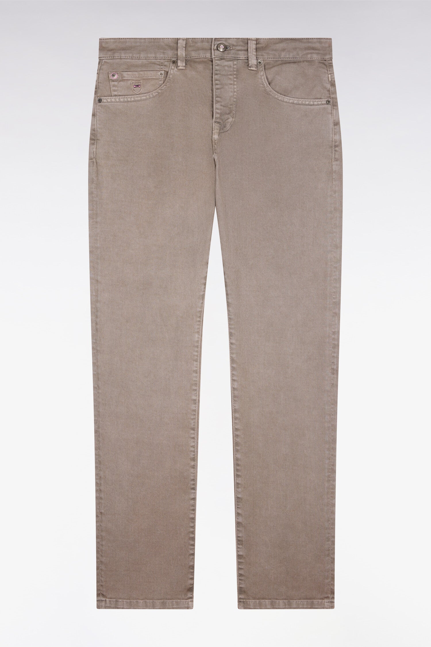 Ce jean en denim stretch beige est un essentiel du vestiaire masculin à l'allure nette et contemporaine. Sa coupe regular assure une ligne équilibrée et votre confort, tandis que la toile denim stretch accompagne naturellement les mouvements. Le style épuré de ce jean beige est rehaussé par les détails signature de la Maison assurant l'élégance sport-chic et la durabilité de ce modèle.