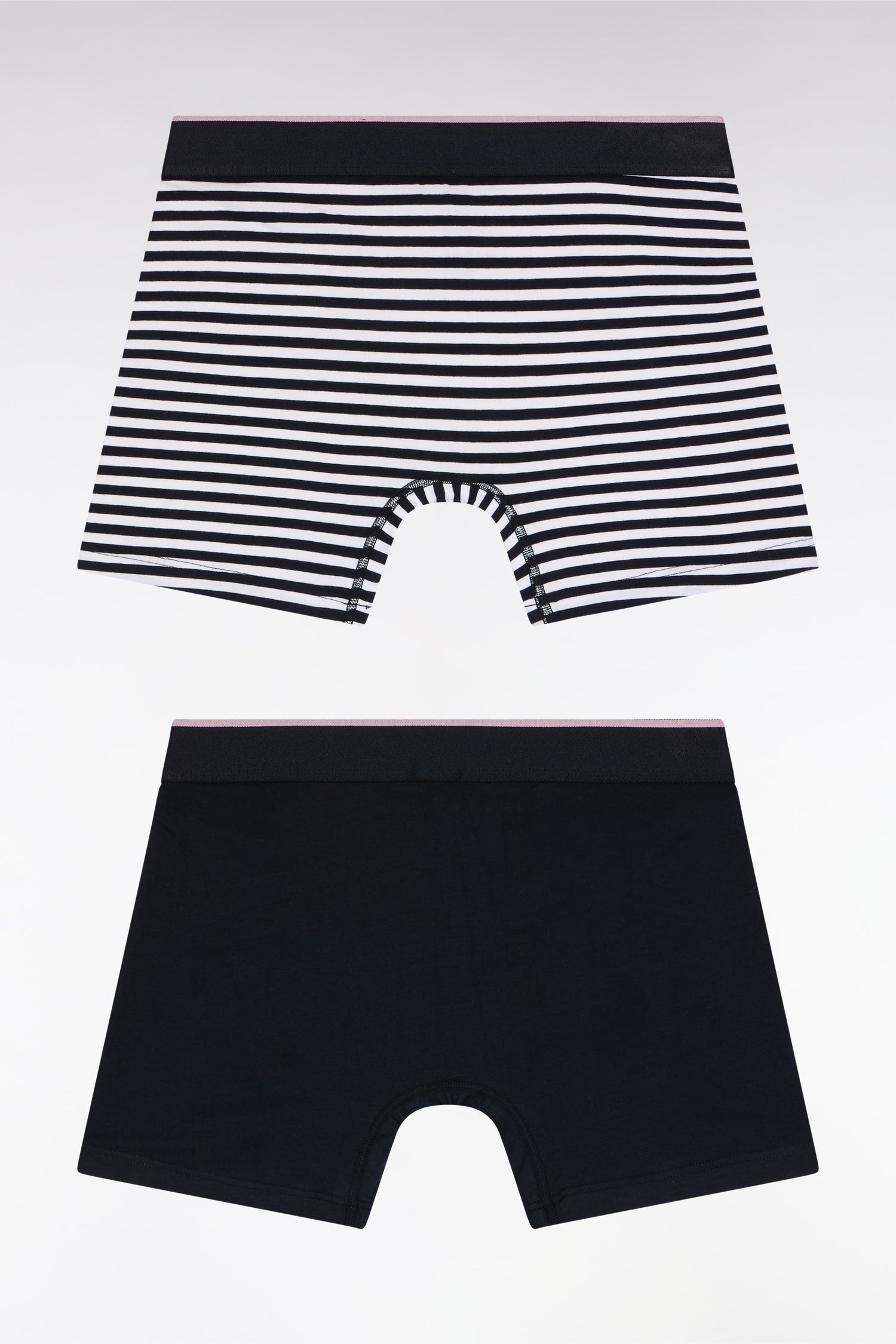 Set of two navy and striped stretch cotton jersey boxer shorts