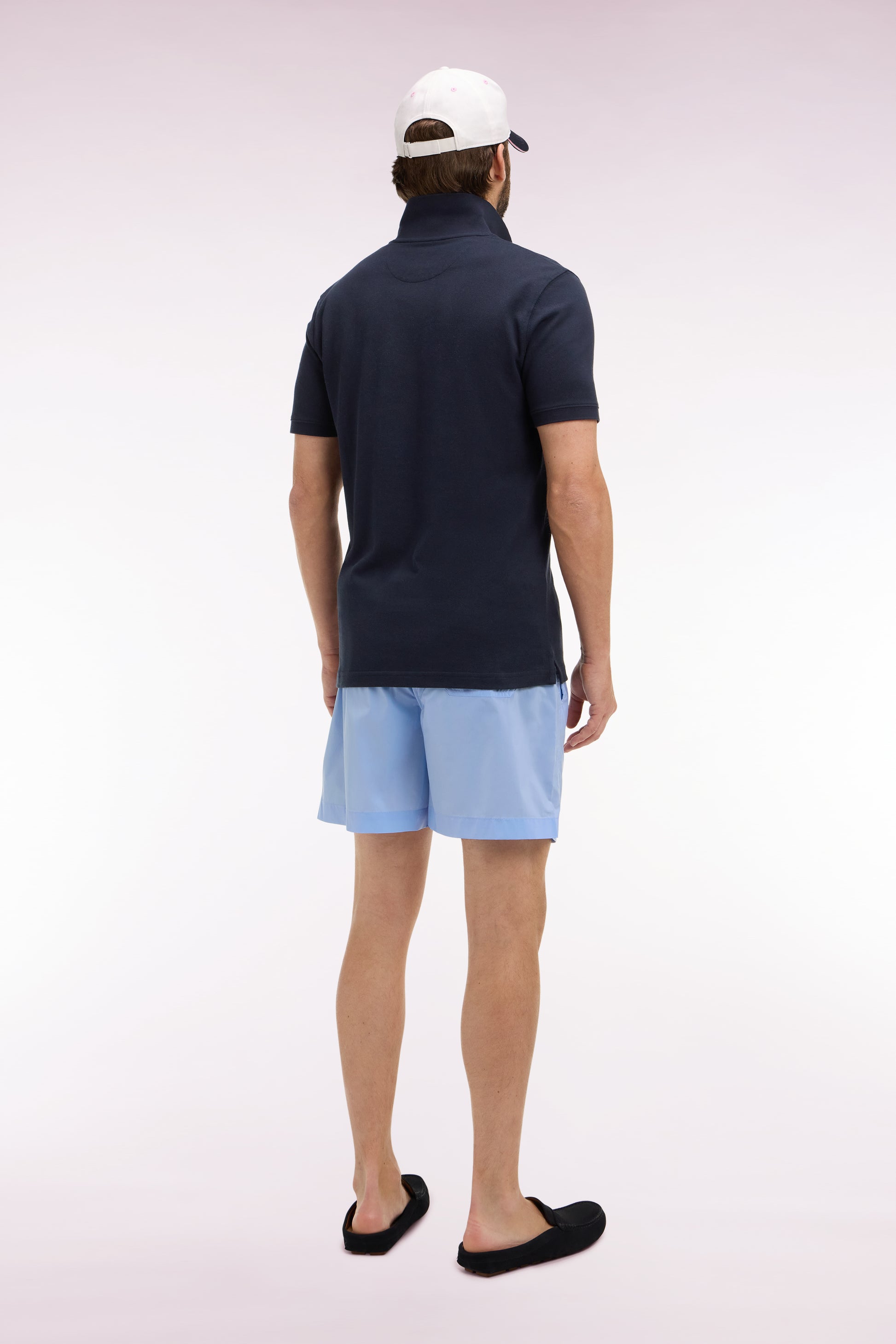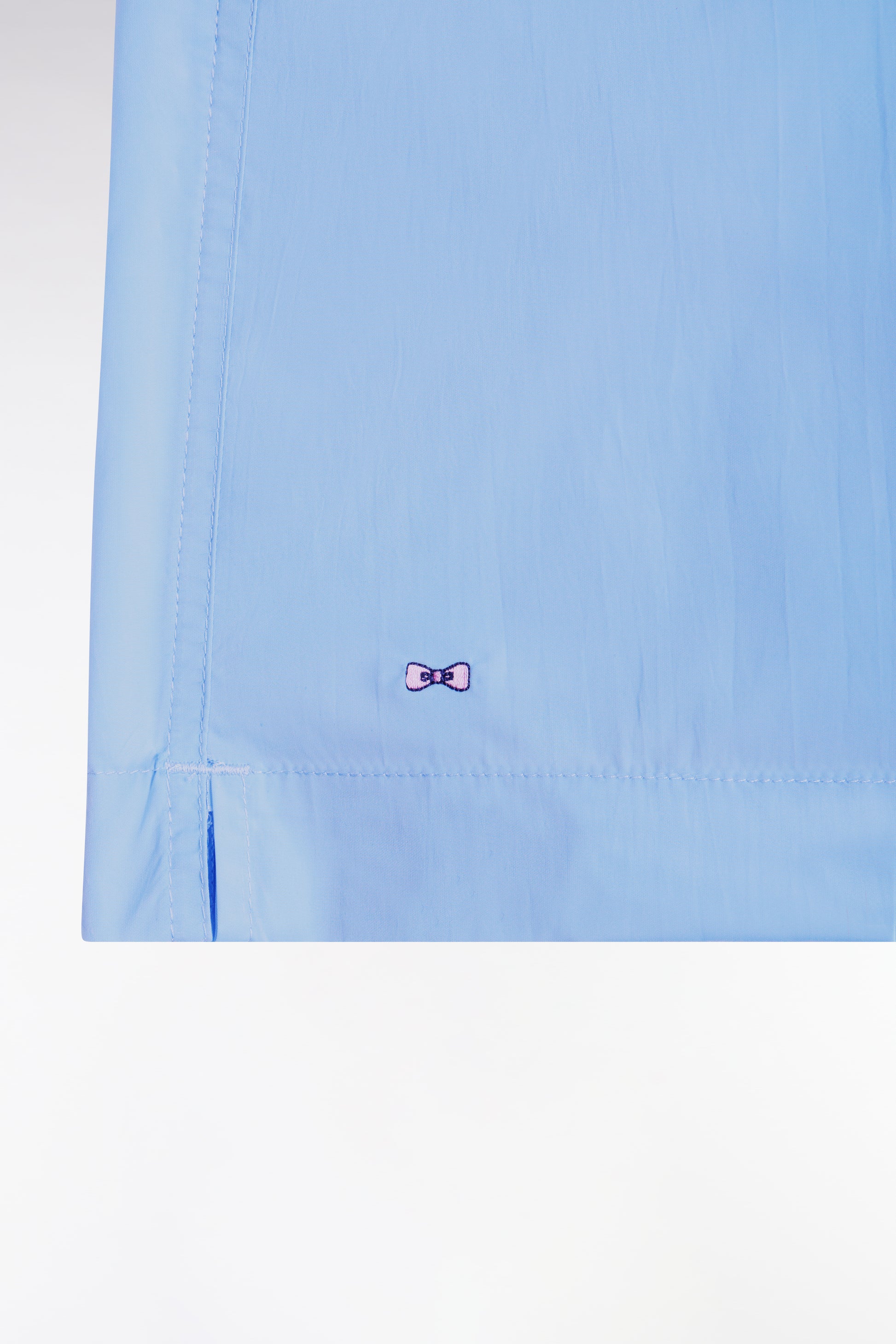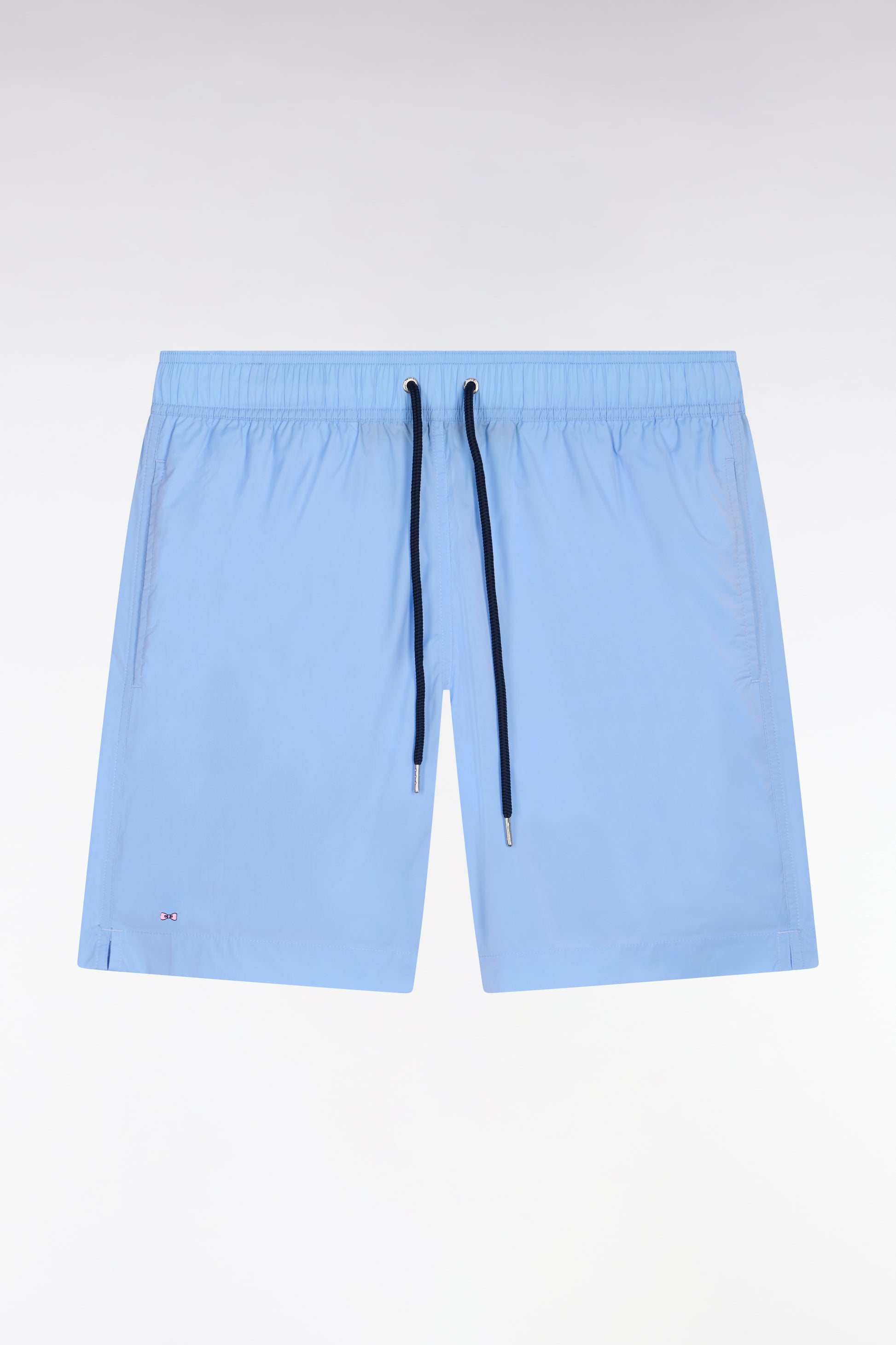Our men's swimsuit has the sporty-chic look typical of the collections Eden Park in a seaside wardrobe built around a wide palette of colors. Its elasticated belt with contrasting interior and its tubular cords provide comfort, support and graphic detail. The discreet bow tie embroidery on the bottom of the leg completes these swim shorts with a rear flap pocket.
