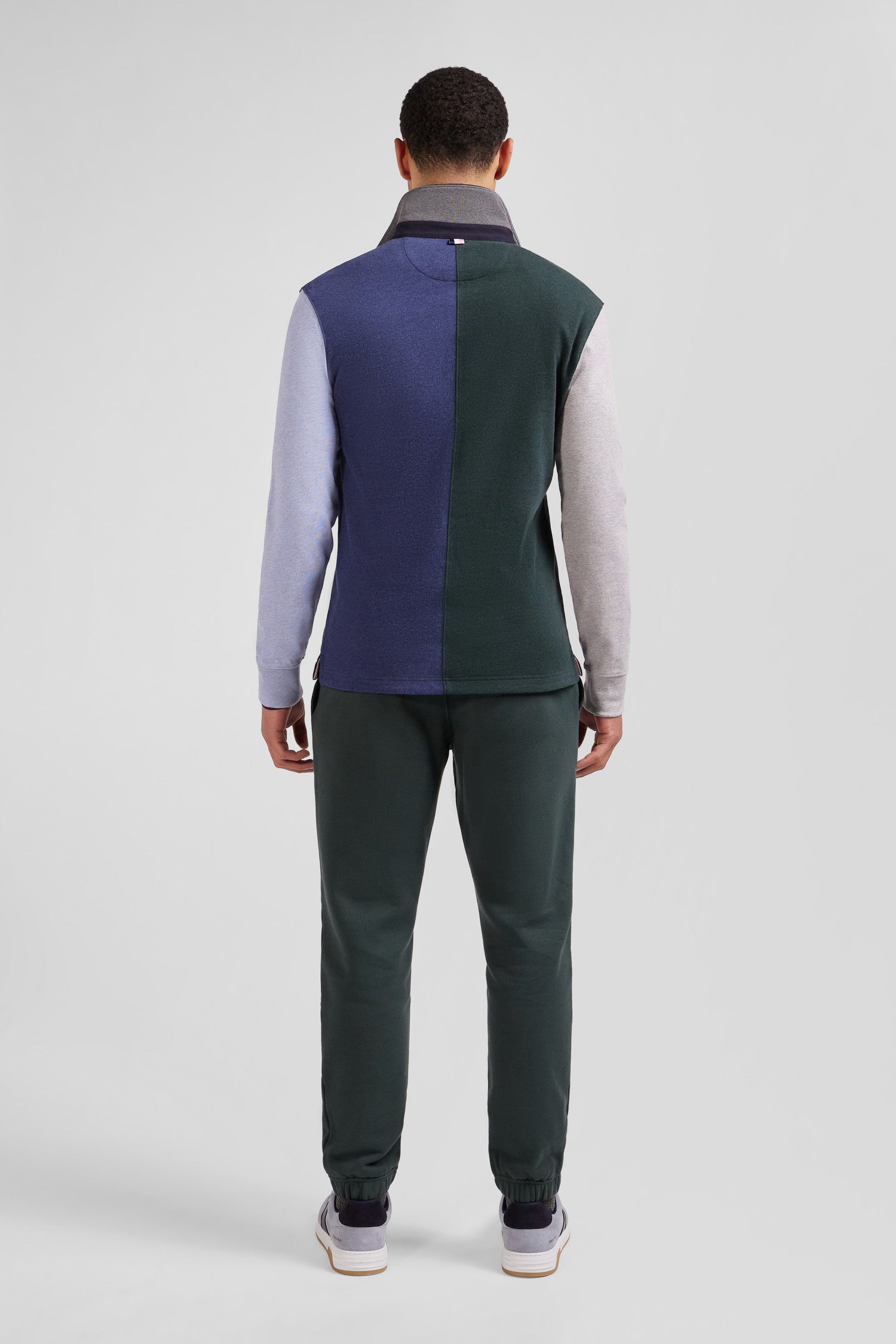 Bring originality to your everyday outfits with our four-color swimsuit. Its two-tone long sleeves combine with a bib divided into two contrasting hues. This bold graphic design is complemented by ribbing on the sleeves and a gum patch on the chest, bringing a sporty, contemporary touch to this straight-cut jersey. Perfect for those looking to combine style and character in a single garment, this colorblock long-sleeved jersey will quickly become a favorite in your fall wardrobe.