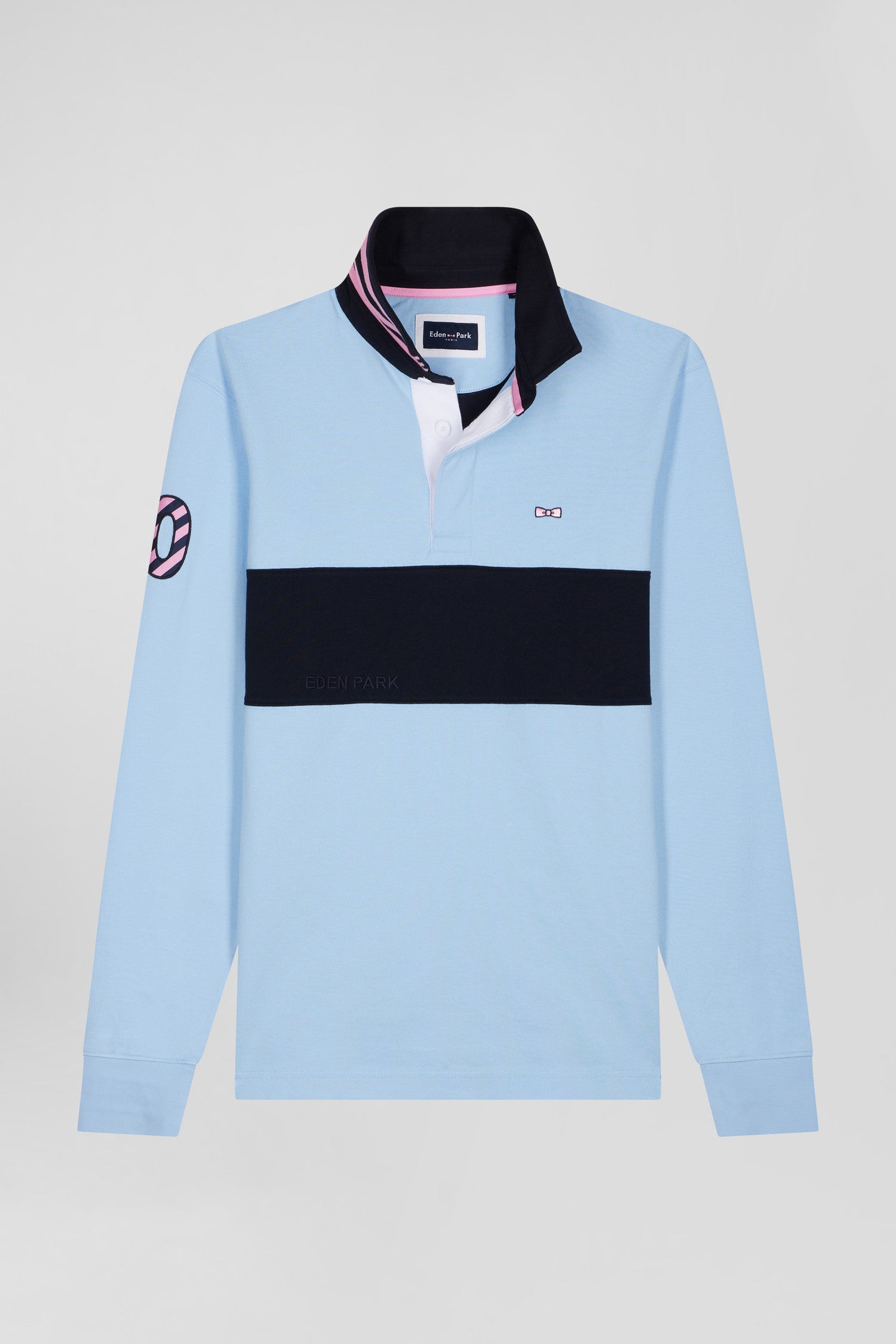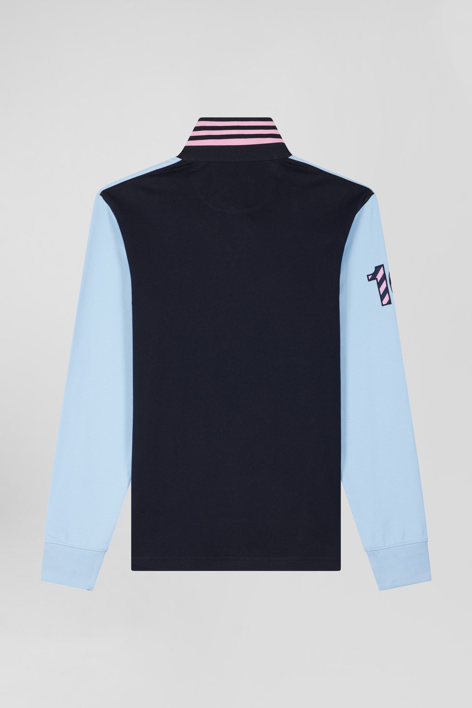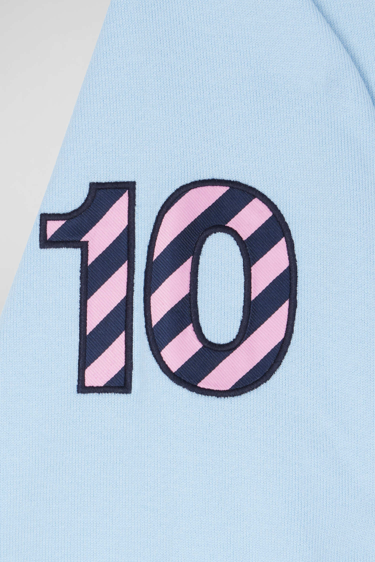 Regular sky blue long-sleeved cotton rugby shirt with sleeve N°10 embroidery