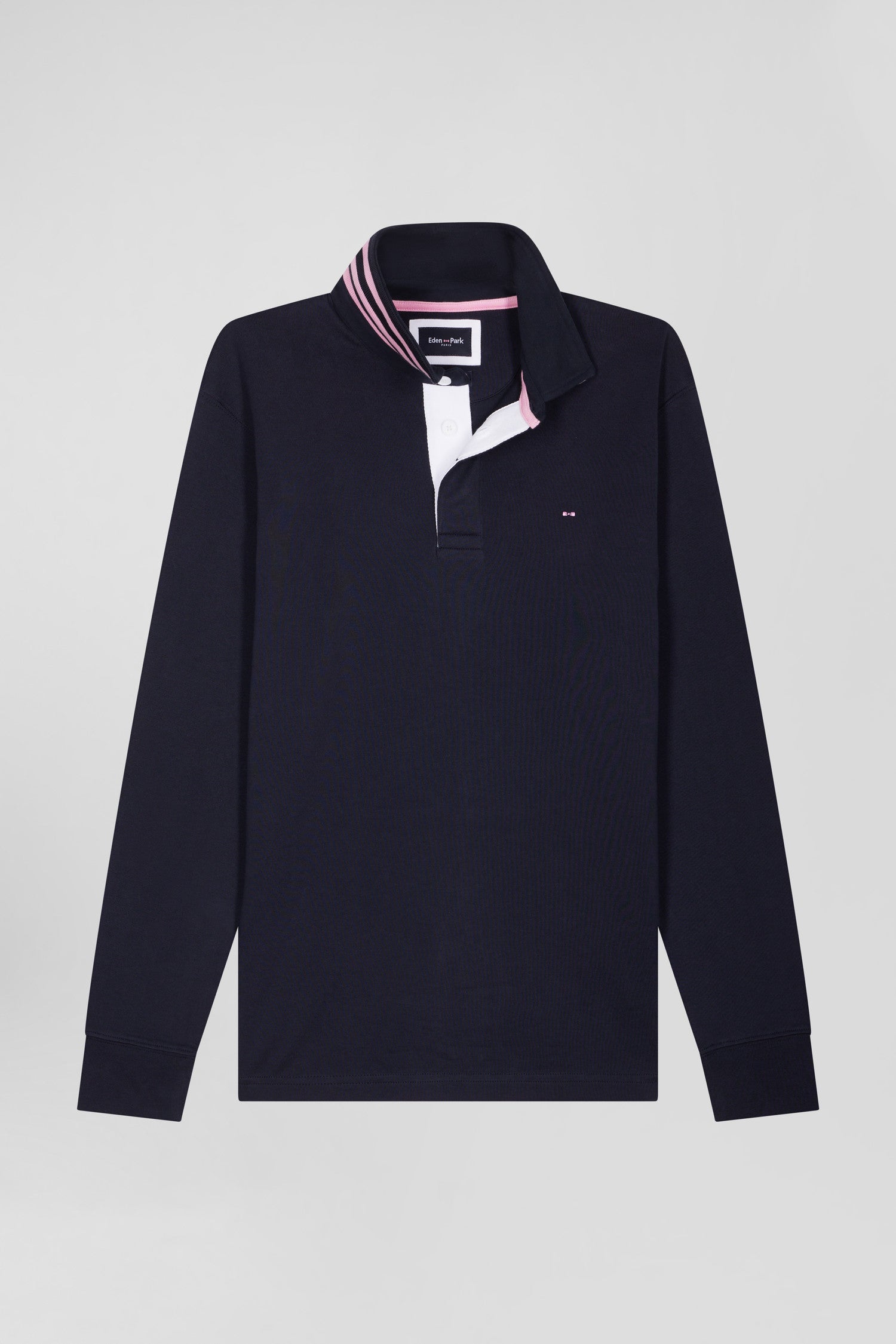 Regular navy blue long-sleeved Pima cotton rugby shirt