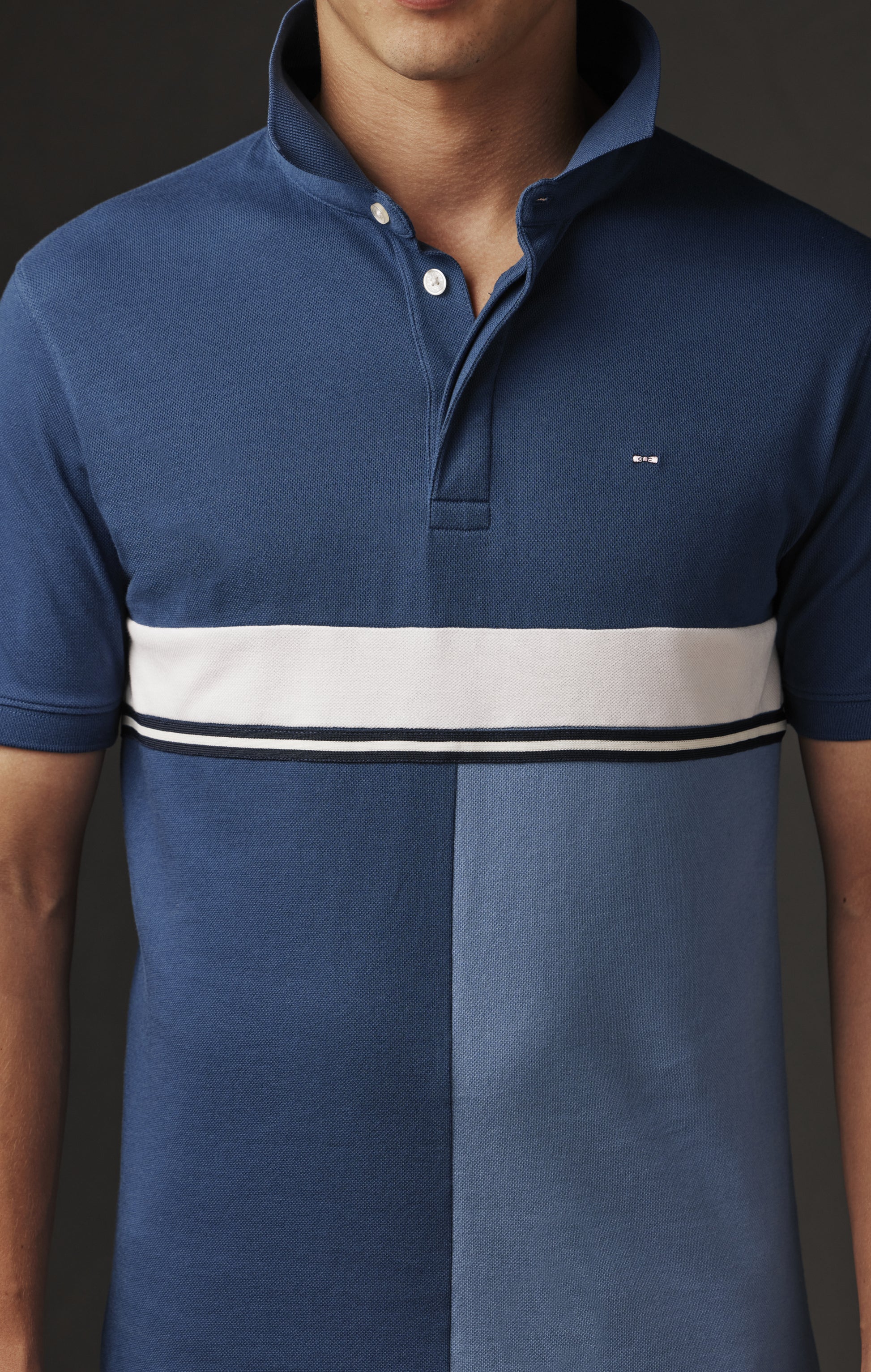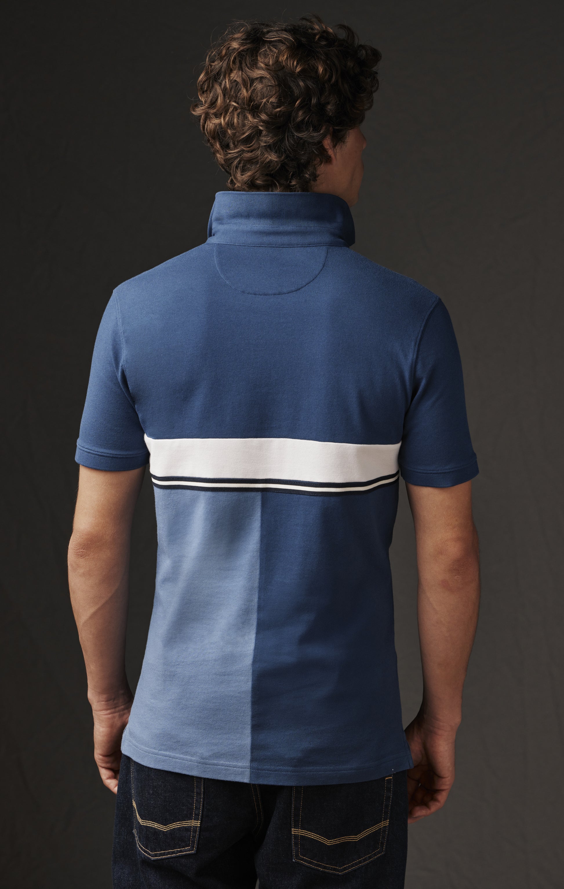 To create this men's jersey, our Parisian atelier selected two stretch cotton jerseys from the Eden Park archives, one dark blue, the other lighter. These men's jerseys were cut and then combined in a patchwork to create a graphic piece with an elegant monochrome effect, highlighted by the addition of a striped braid and a white stripe taken from the House's dormant fabric stocks. This Pap'Atelier swimsuit is a one-off offered on our website in size M in a limited edition. Its alter ego, combining the same colors in a mirrored assembly, bears witness to our commitment to making the most of all our resources, for more sustainable fashion and an absolutely unique style.