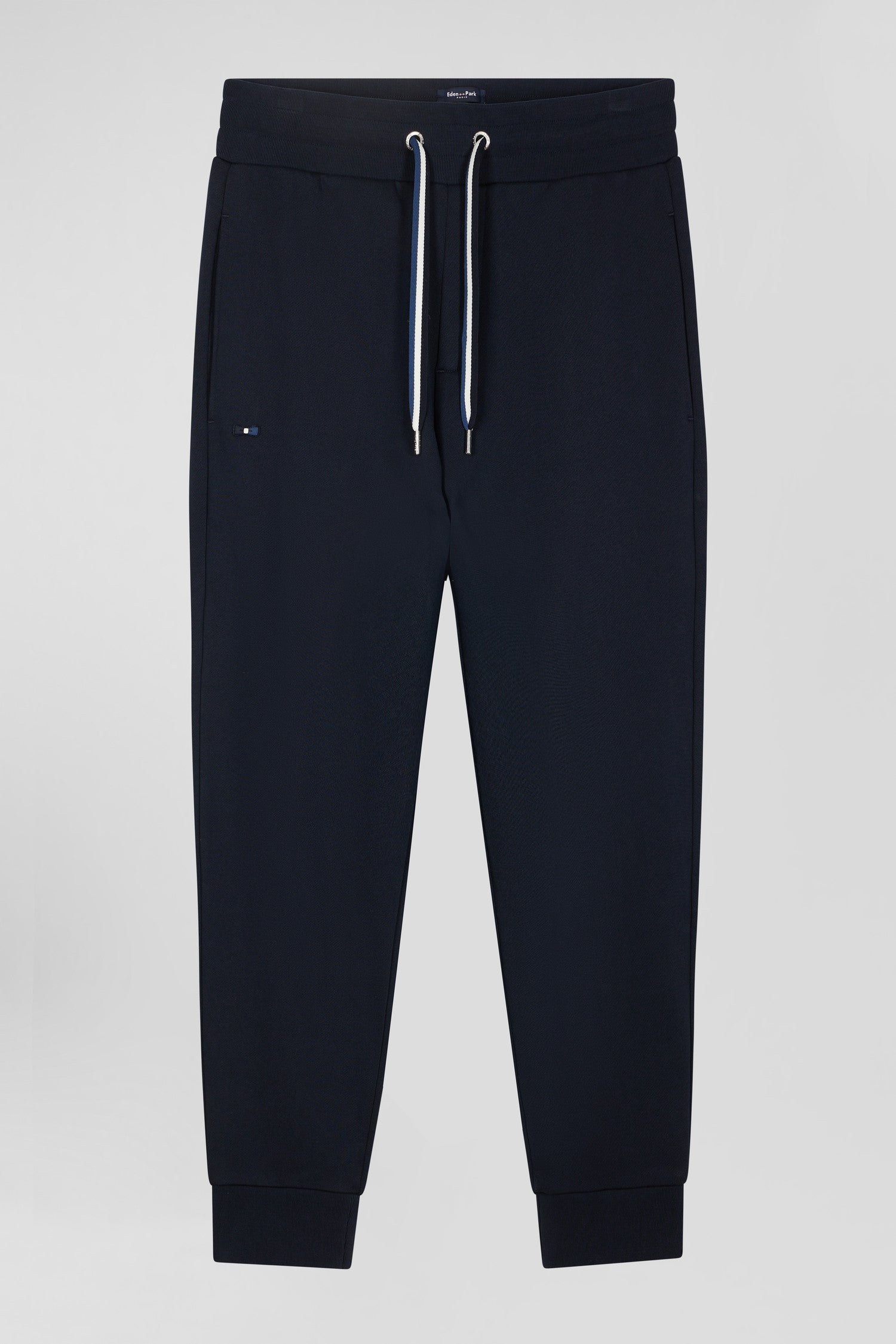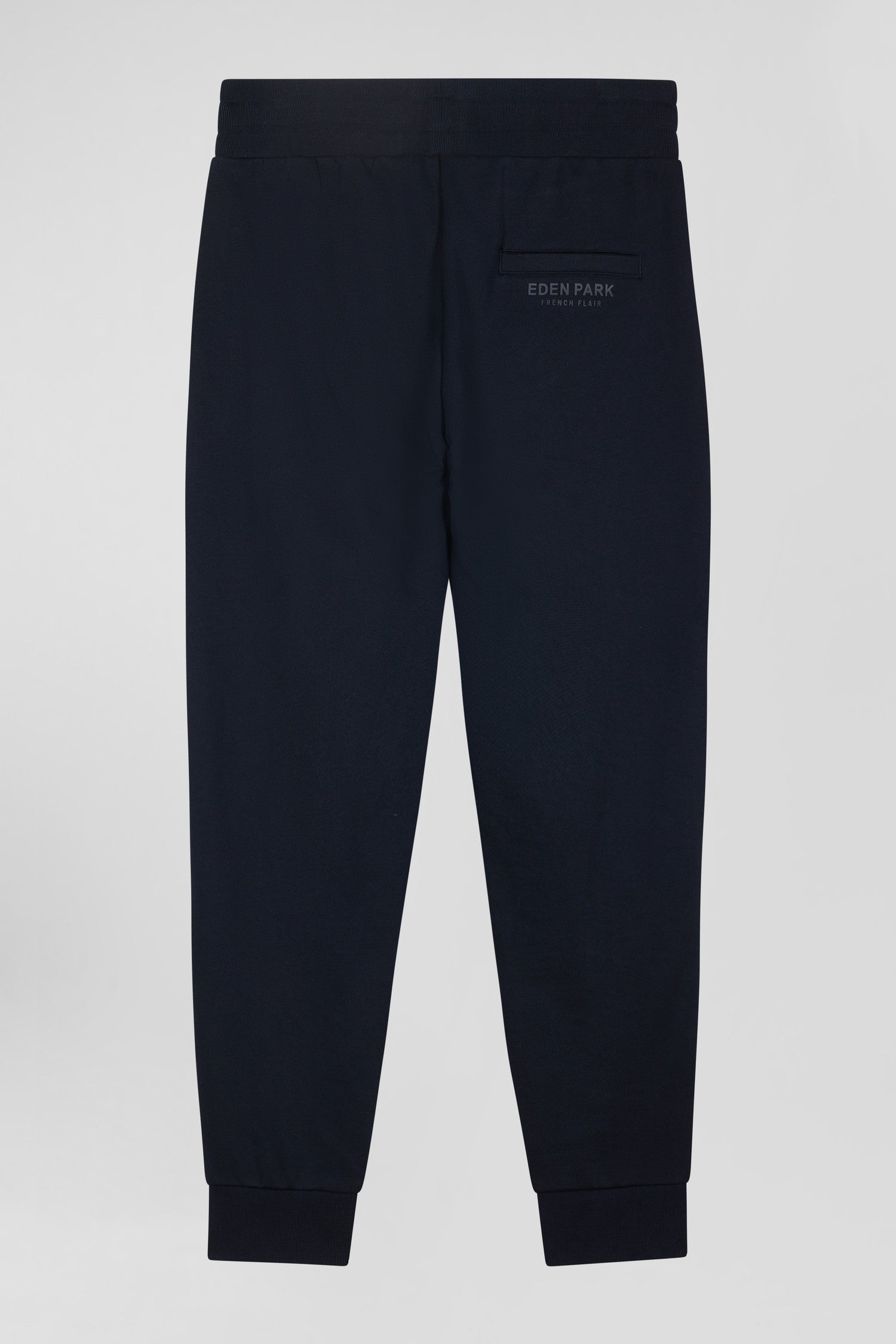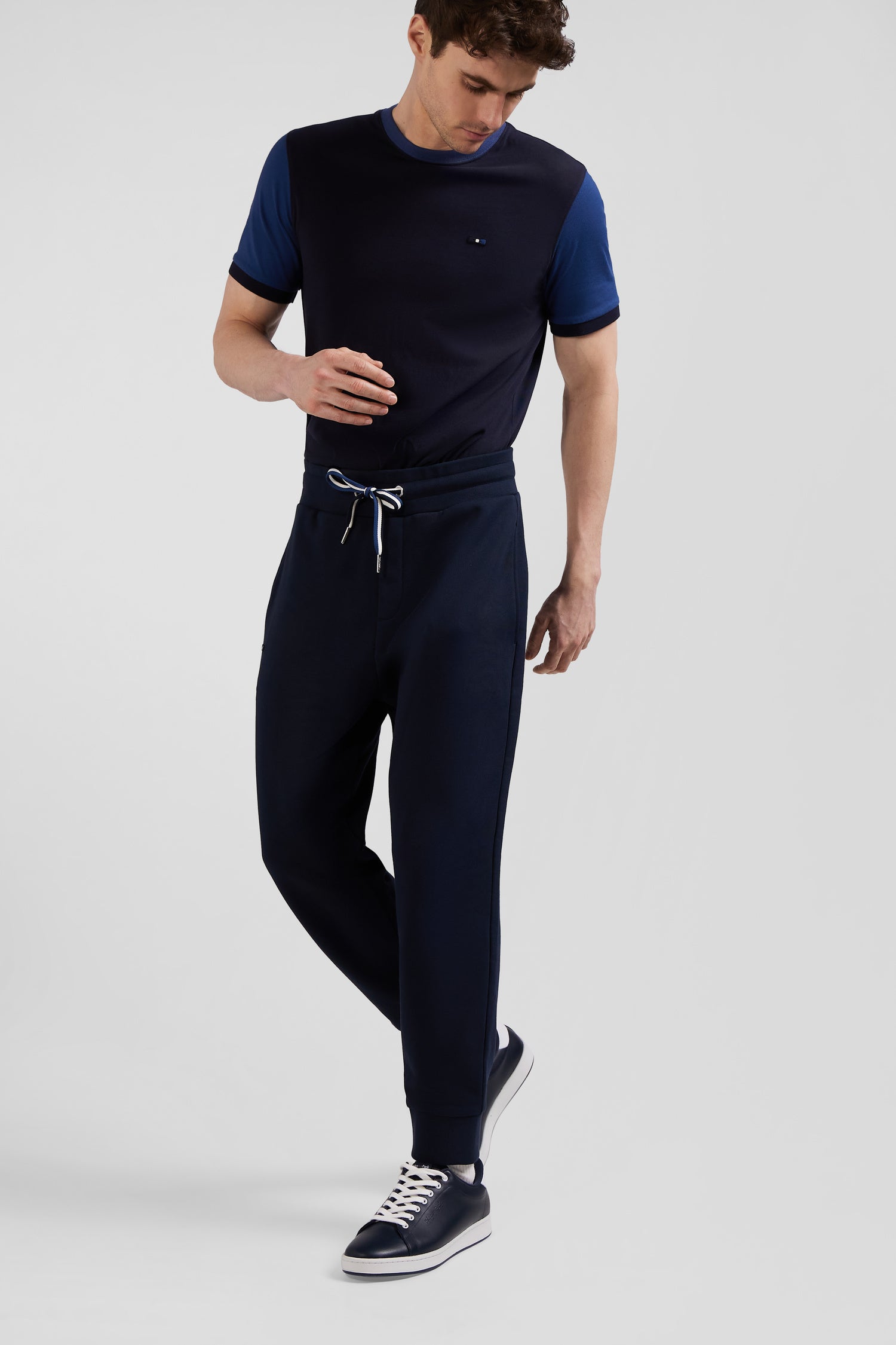 With tri-color drawstrings and bowtie embroidery in the same hues, these jogging pants assert the sporty origins of our French Maison. The side pockets are complemented by a piped back pocket, ensuring that these men's jogging pants, with their slightly carrot cut, fall beautifully.