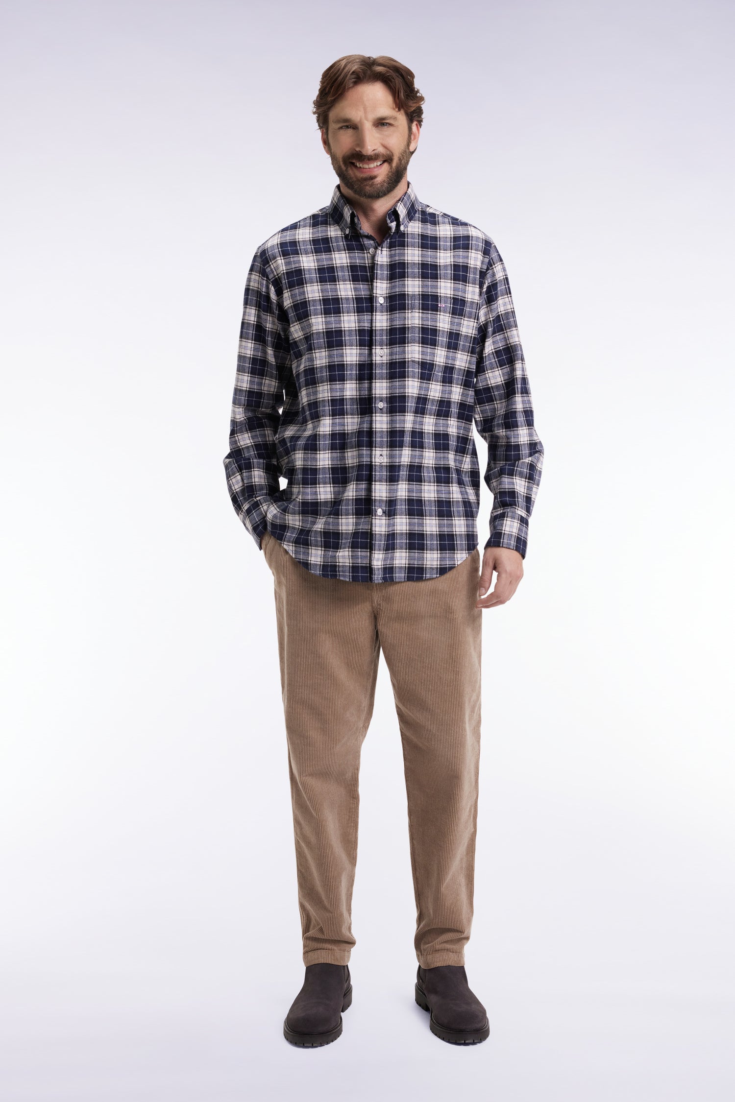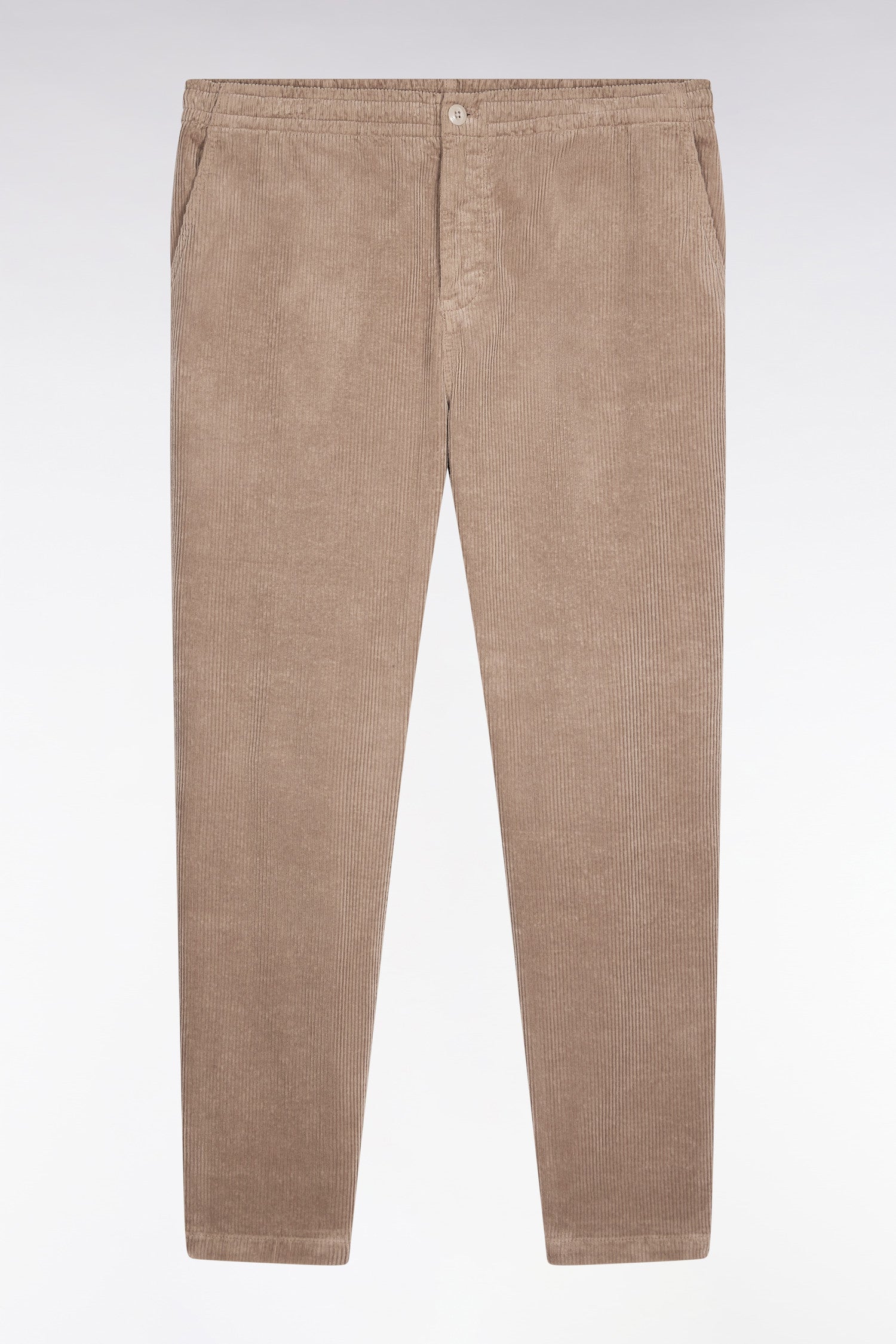 A perfect blend of comfort and style, these corduroy pants revisit the tailoring spirit with an elasticated rise for greater freedom of movement. Their modern, slightly carrot cut combines casual elegance with absolute comfort, somewhere between dress pants and jogging pants. An easy-to-wear piece, available in 2 timeless colors: beige or brown.