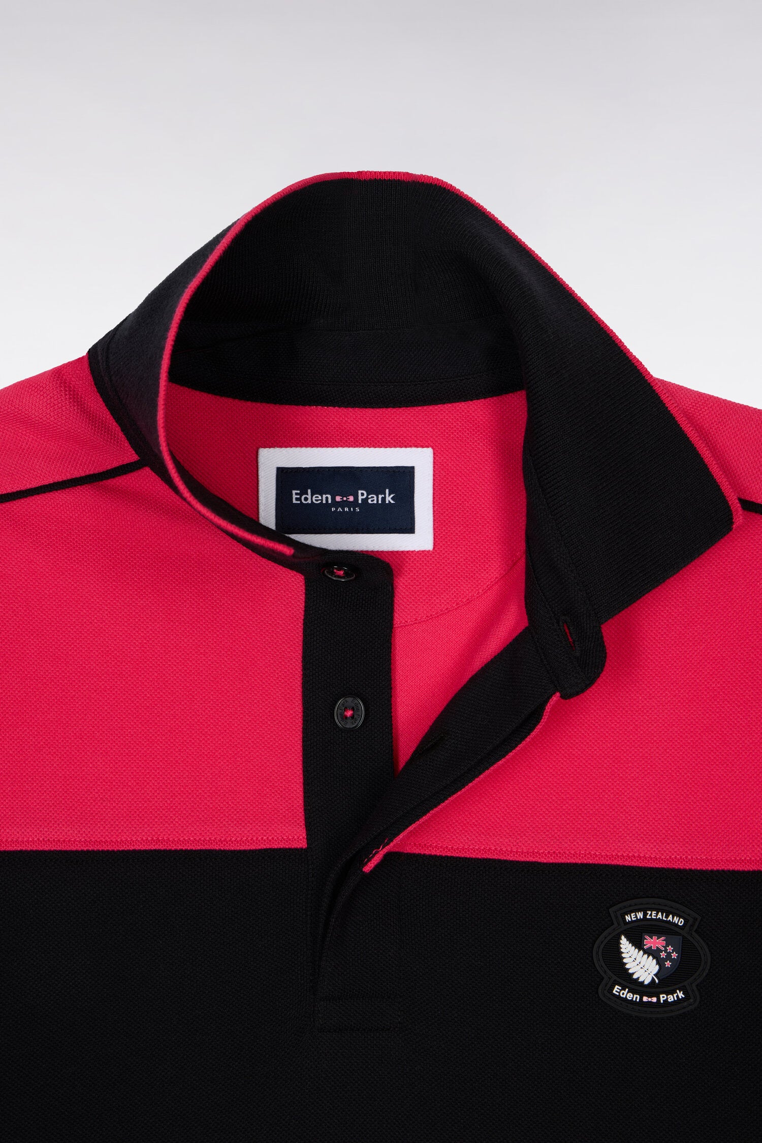Polo à manches courtes en coton fuchsia et noir New Zealand coupe regular