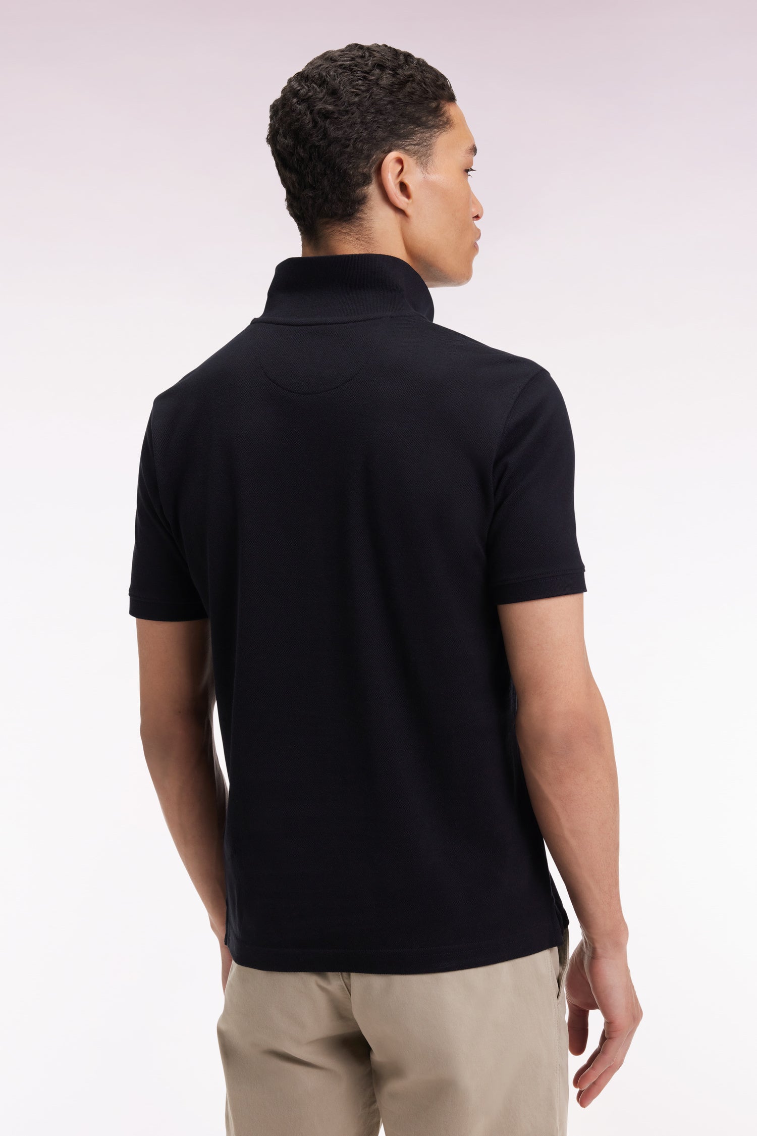 Short-sleeved polo shirt in black Pima cotton, straight cut