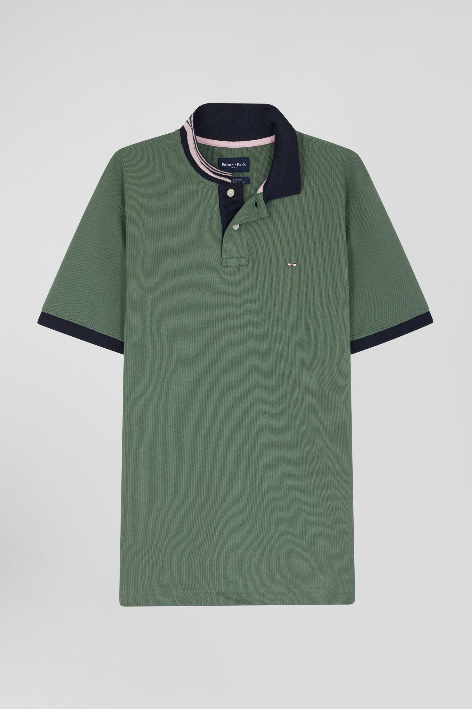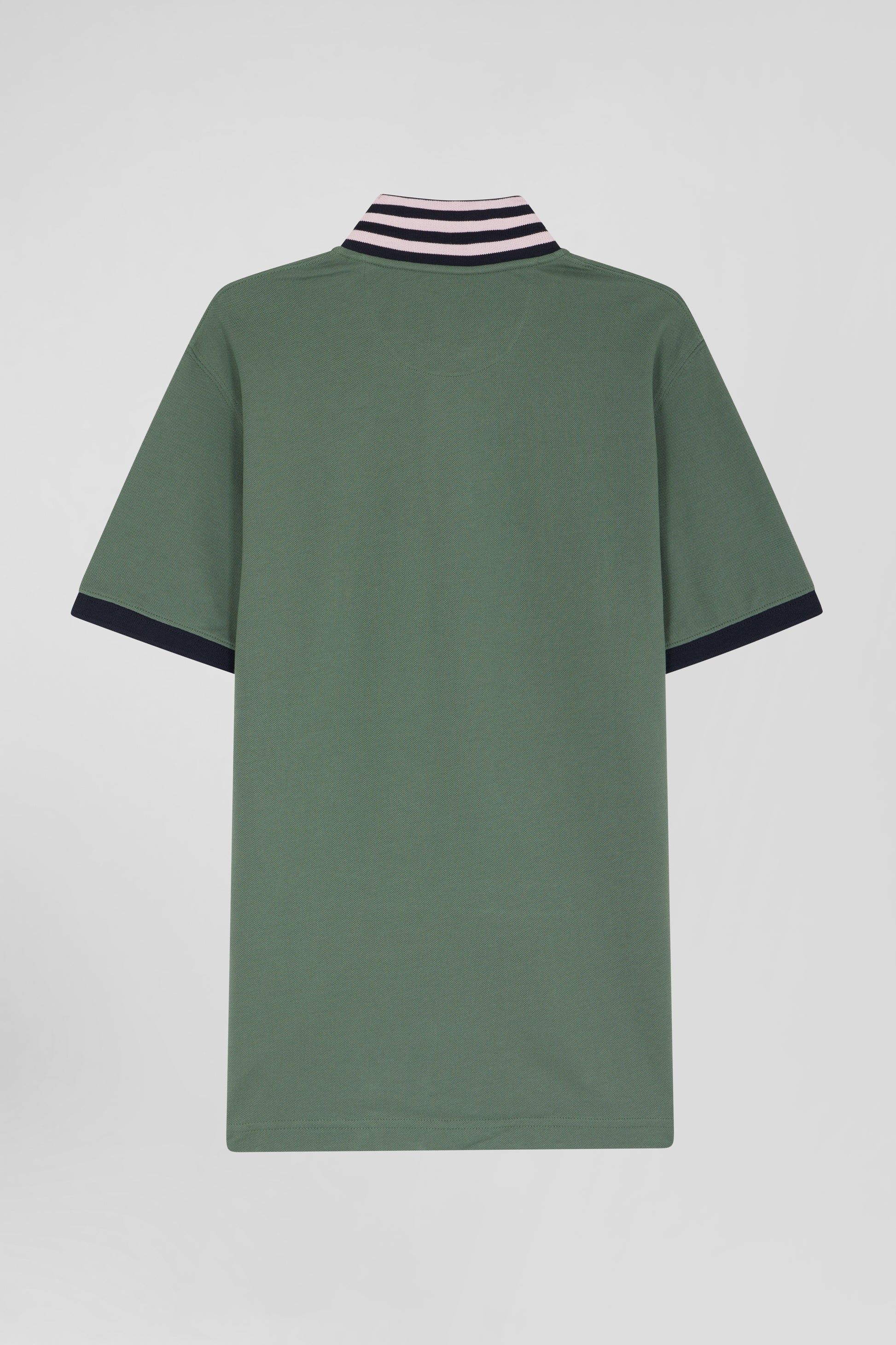 Regular green short-sleeved cotton piqué polo shirt with contrasting details