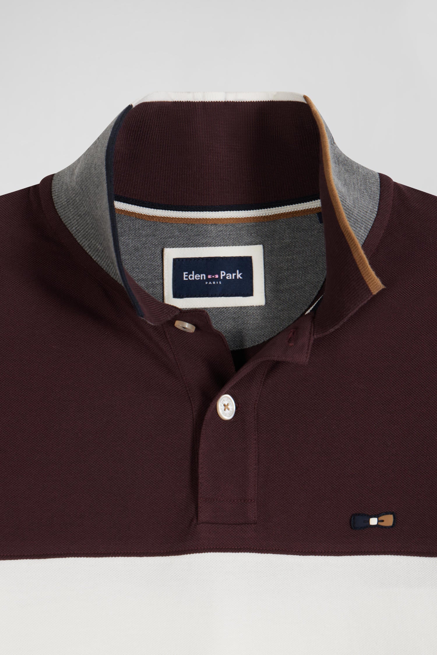 Regular burgundy colorblock long-sleeved cotton piqué polo shirt