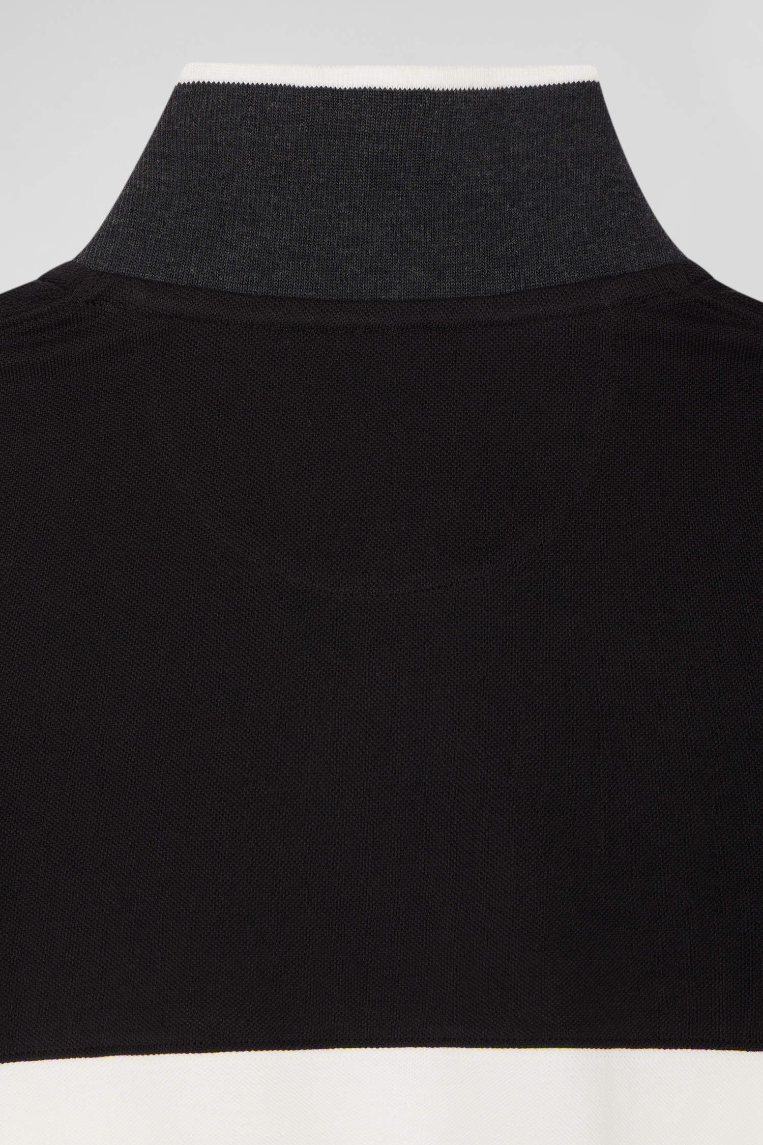 Regular black colorblock long-sleeved cotton piqué polo shirt