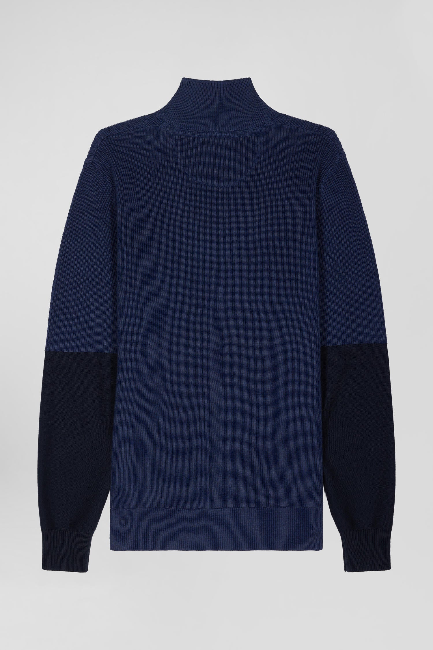 Regular dark blue semi-zipped cotton jumper with knit patterns