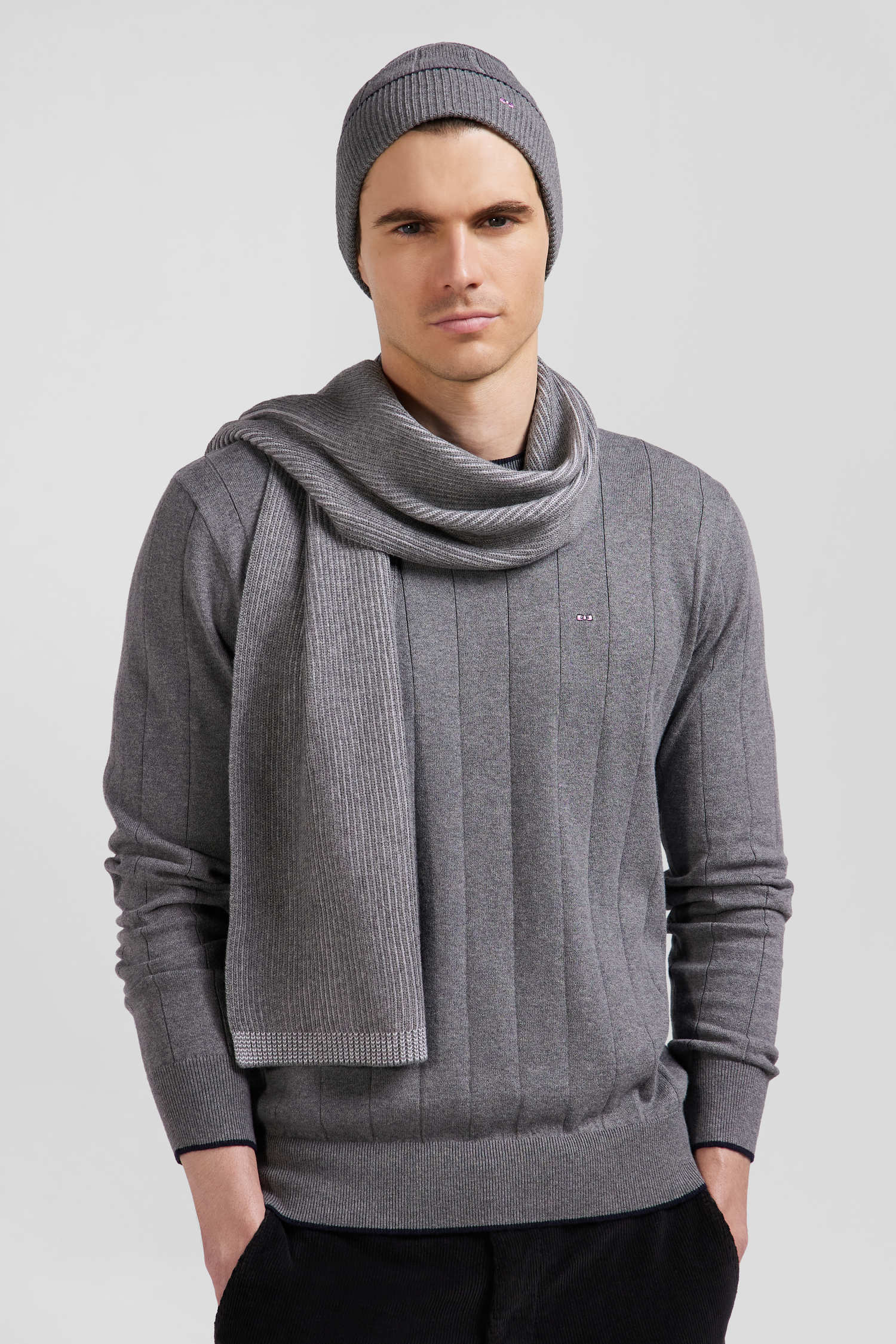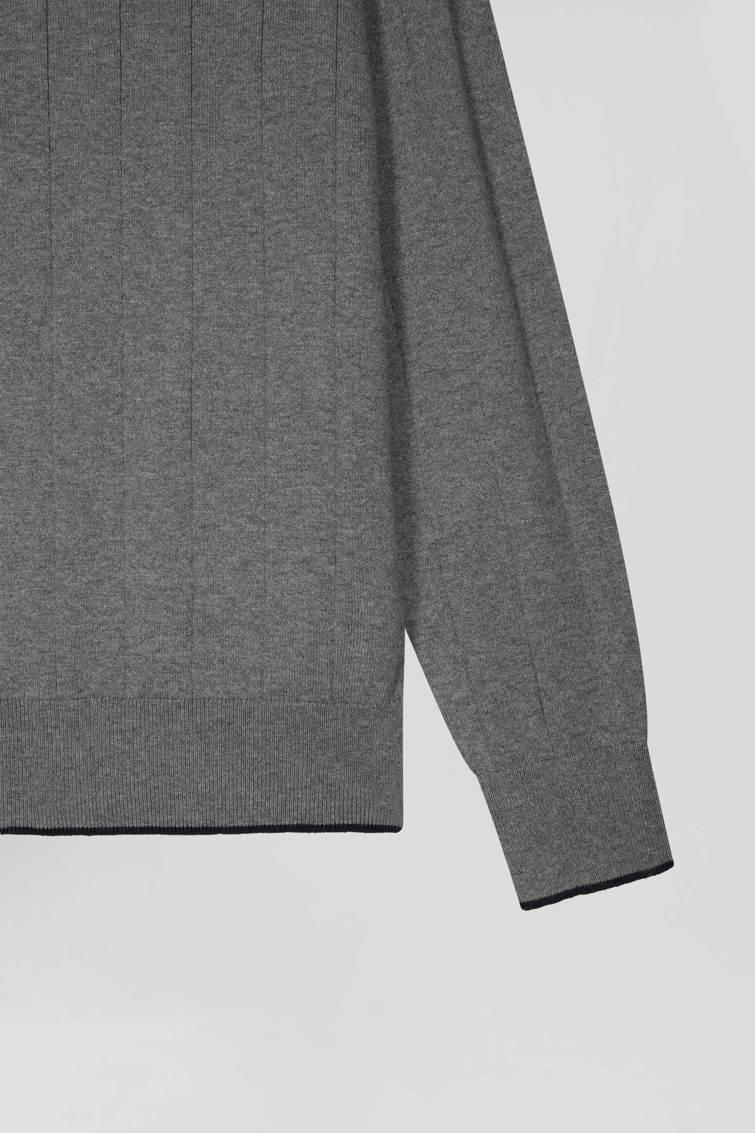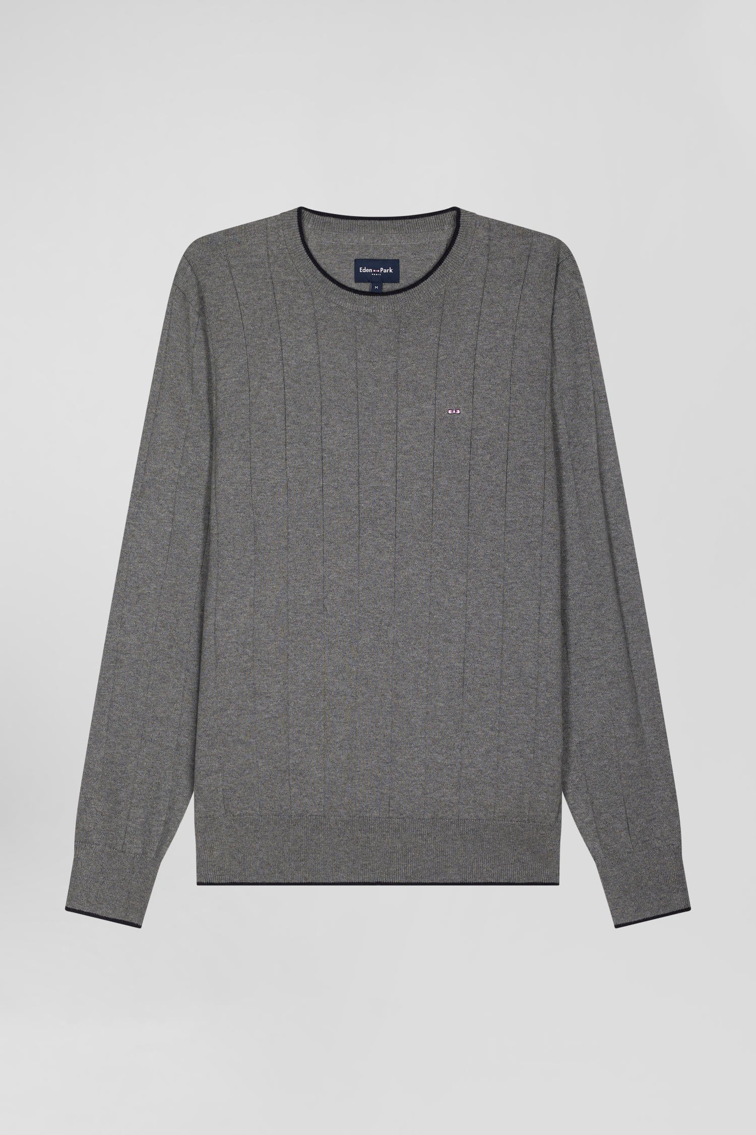 This men's round-neck sweater features a tonal stripe effect crafted through careful knitting and construction. Crafted in cotton and cashmere for added softness and warmth, this timeless sweater is adorned with our essential bow-tie embroidery.
