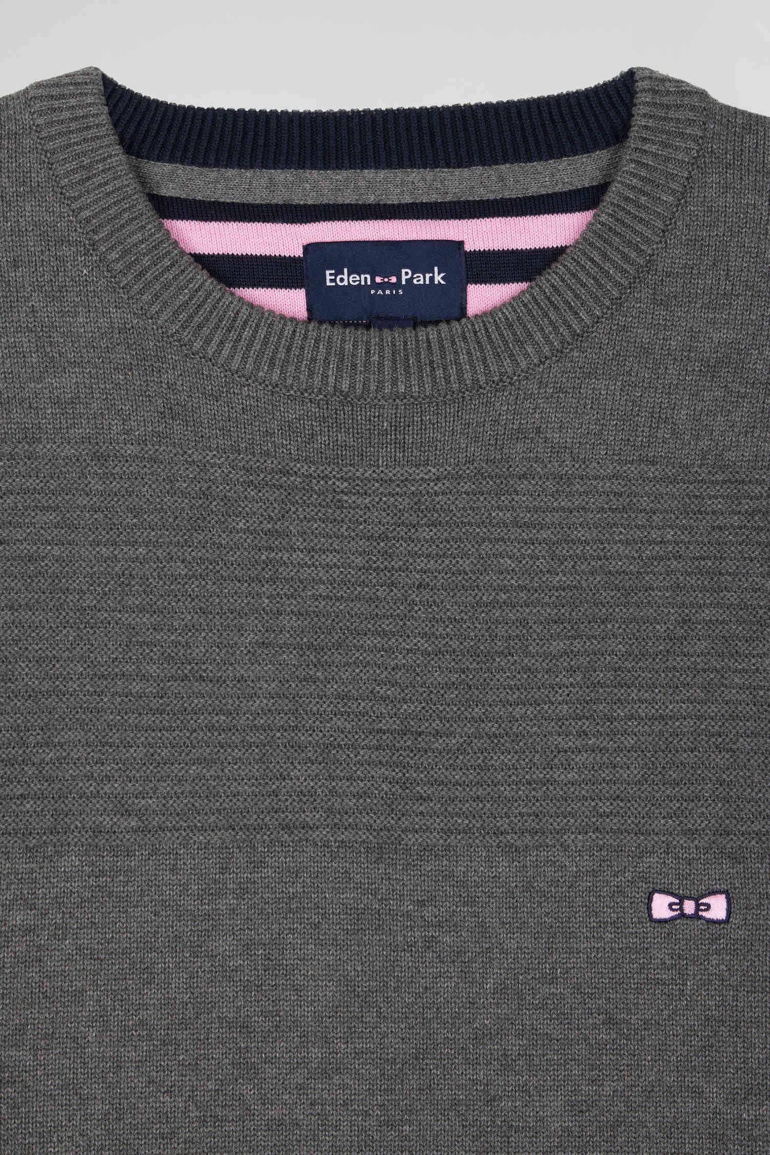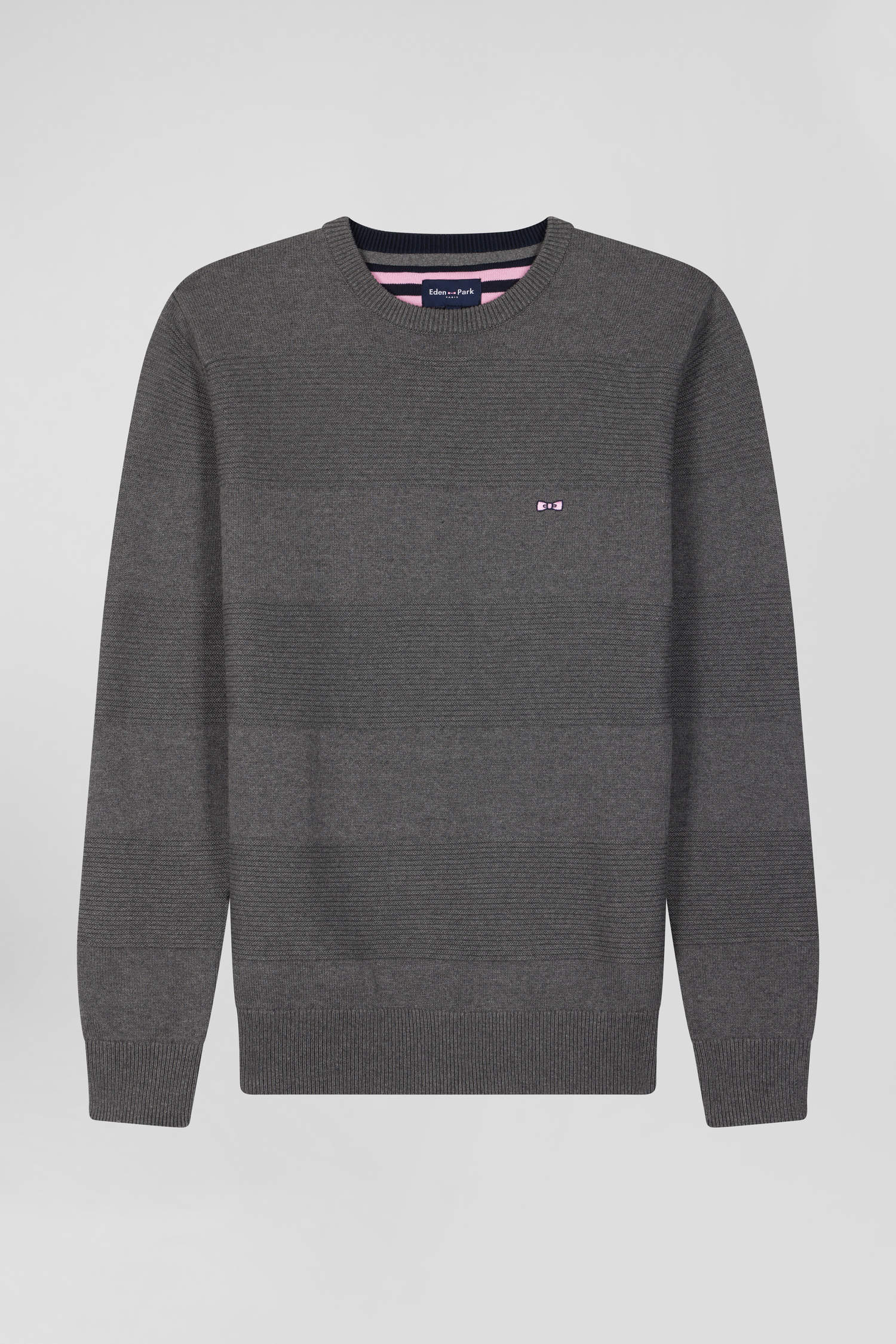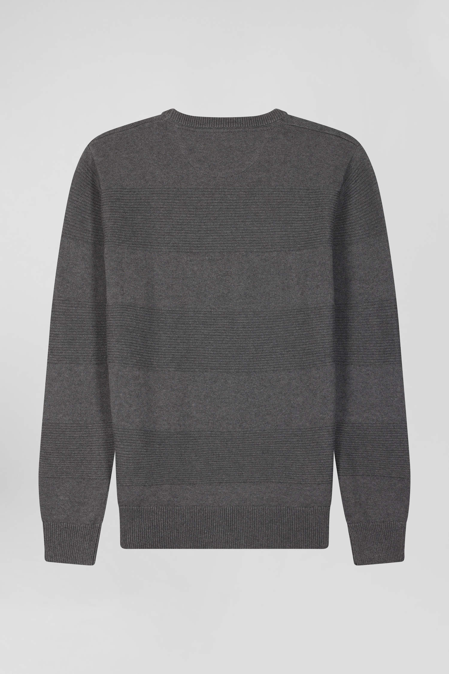 Regular grey cotton crew neck jumper with knit patterns