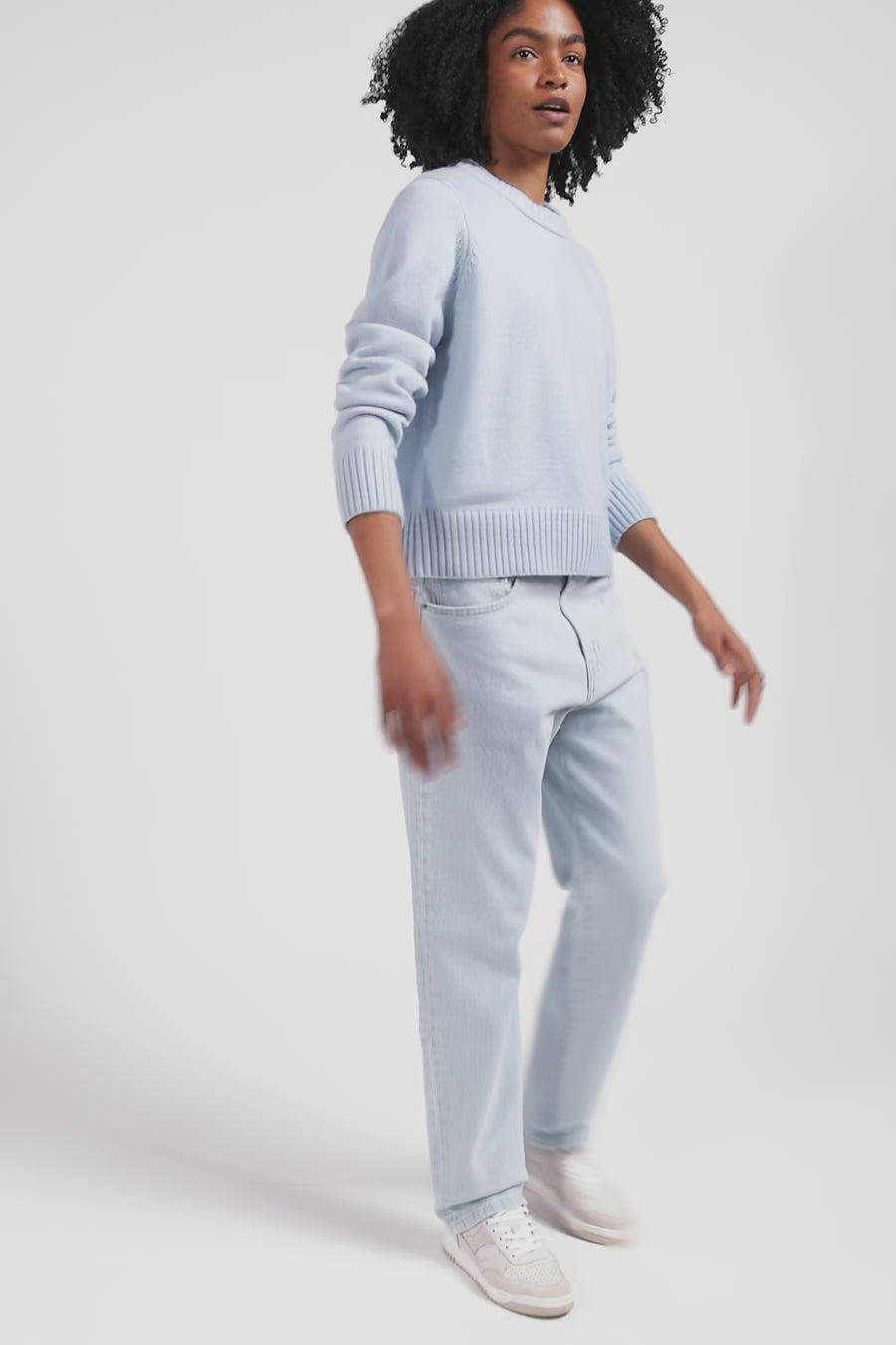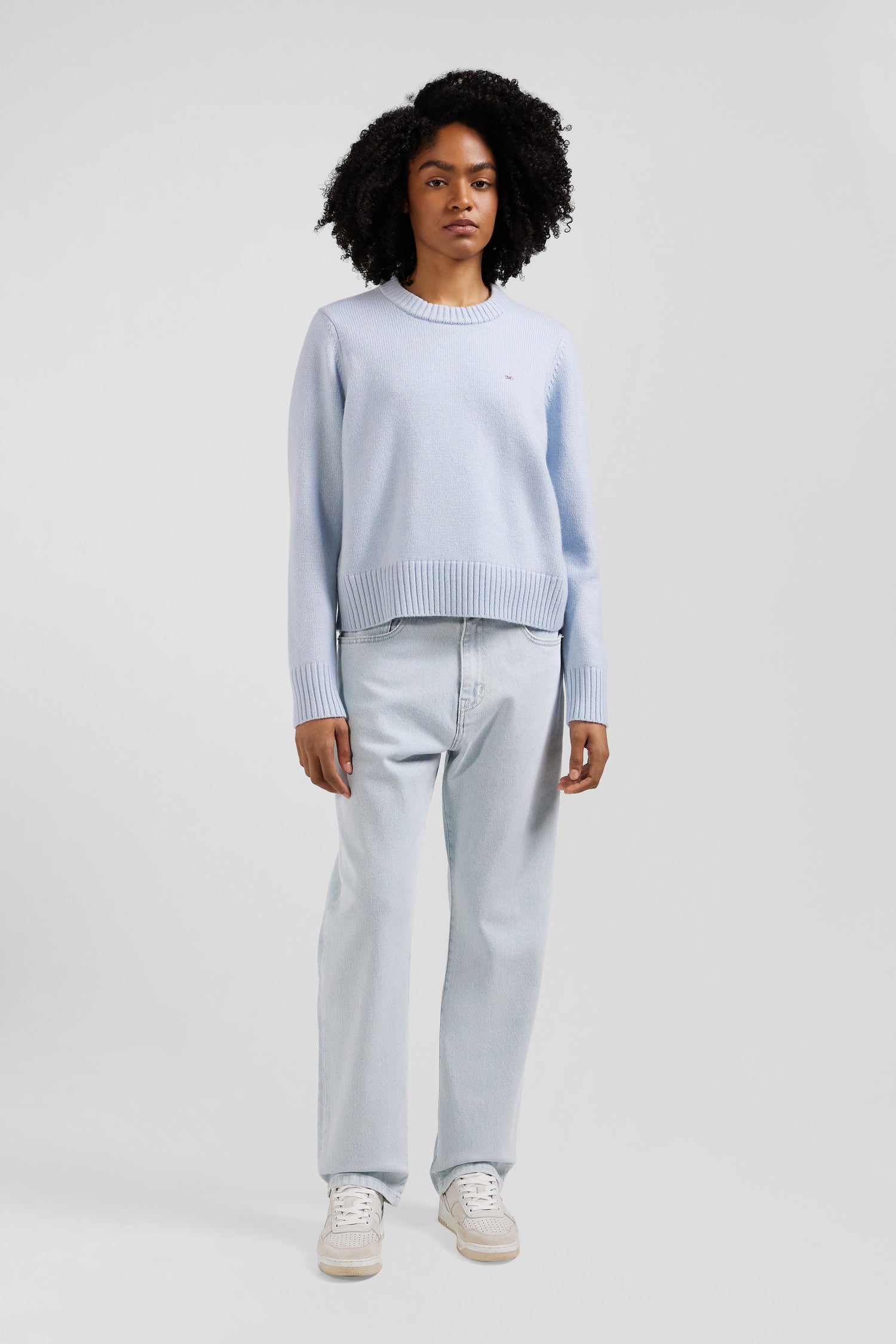 Discover our women's round-neck sweater, a timeless essential crafted in a luxurious blend of wool and cashmere. Available in soft shades of sky and gray, this women's sweater combines comfort and elegance. Its manufacturing quality guarantees warmth and softness to this winter piece, perfect to complete any outfit with refinement.