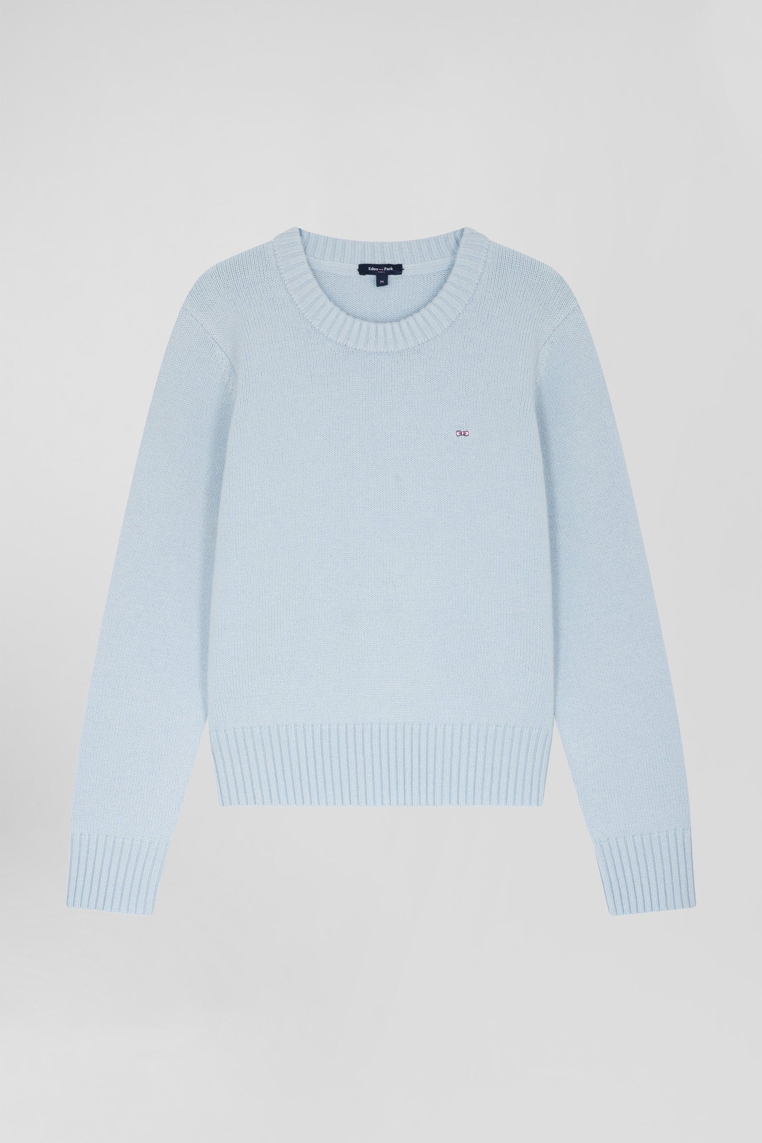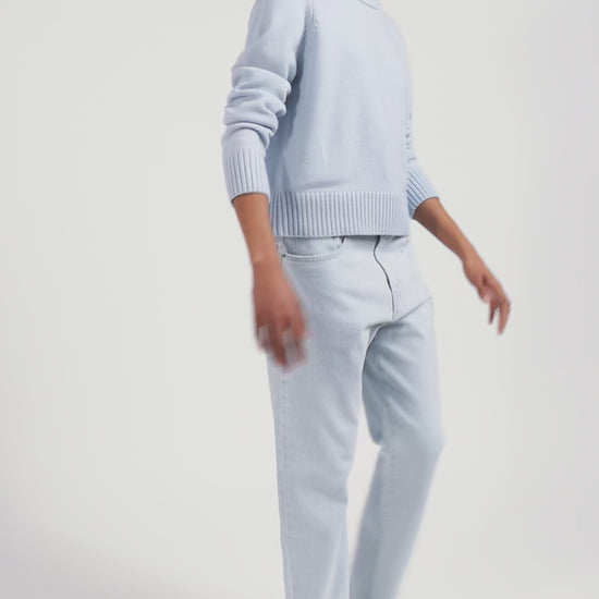 Regular sky blue round-neck wool and cashmere jumper
