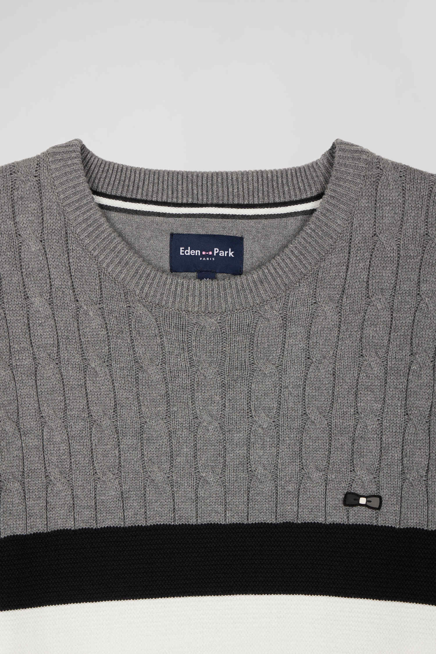 - Three-tone knitted ribbon inside collar