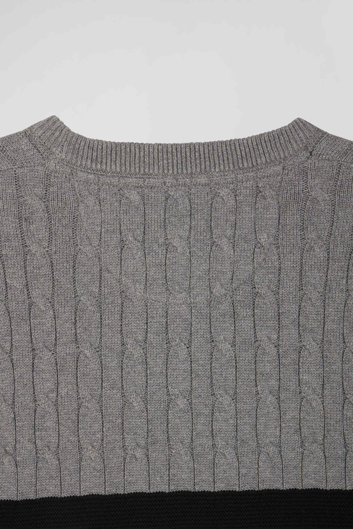 Regular grey fancy knit cotton crew neck jumper