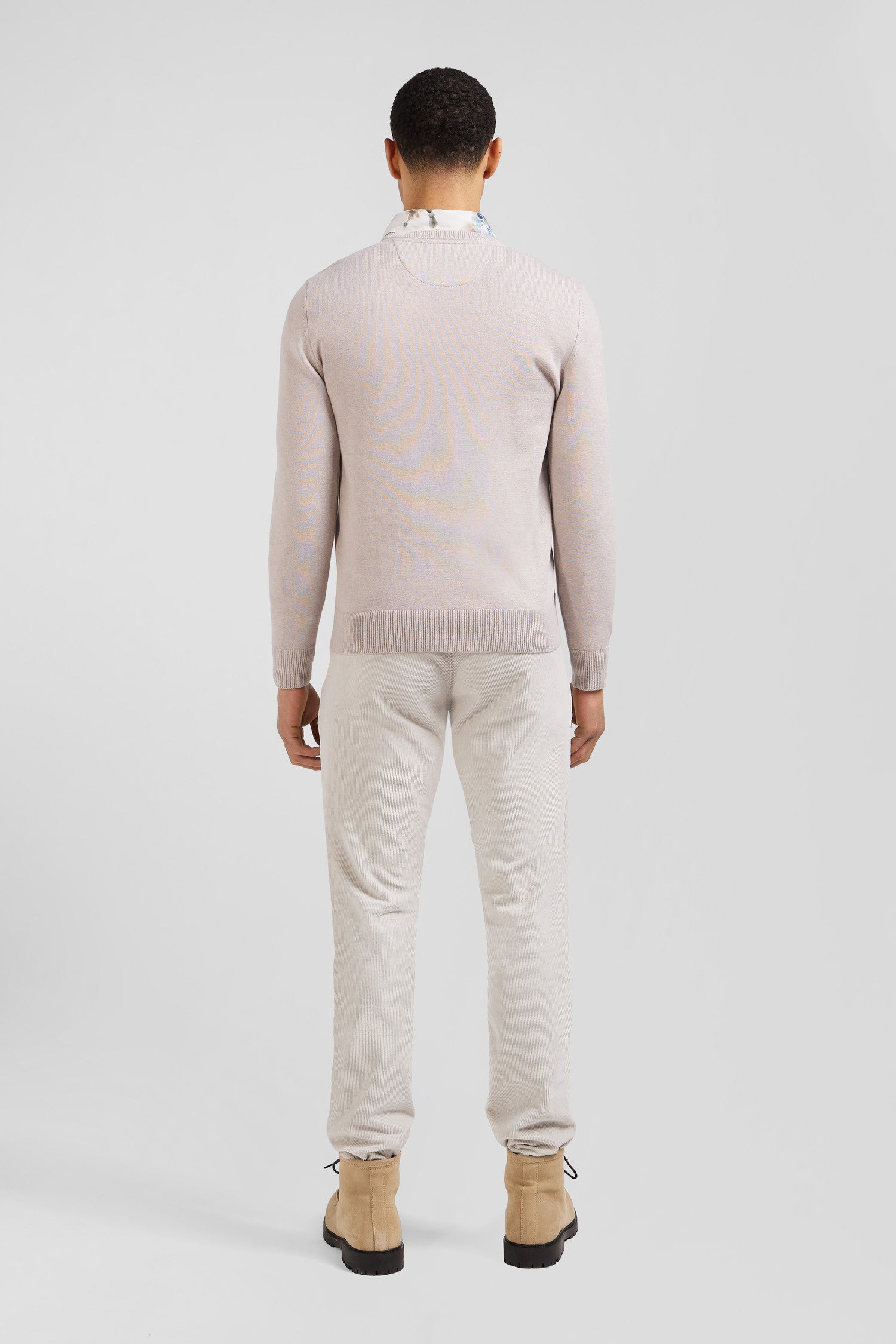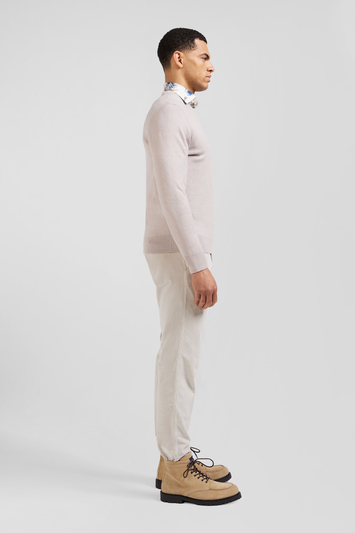 Regular ecru stretch cotton velvet chino trousers