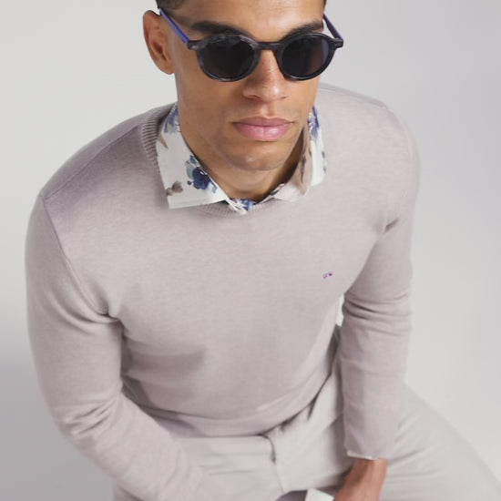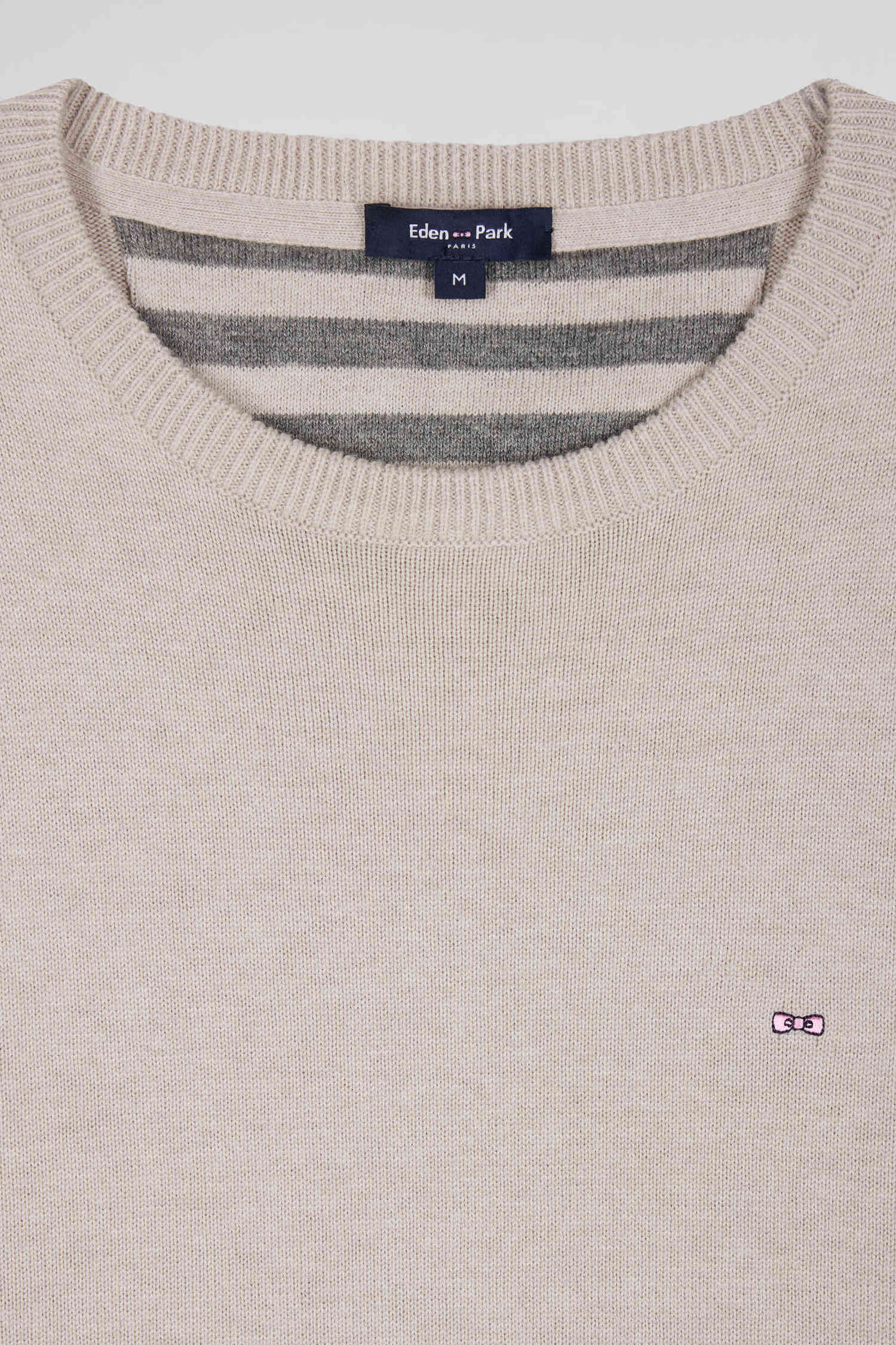 Regular beige wool and cotton crew neck jumper