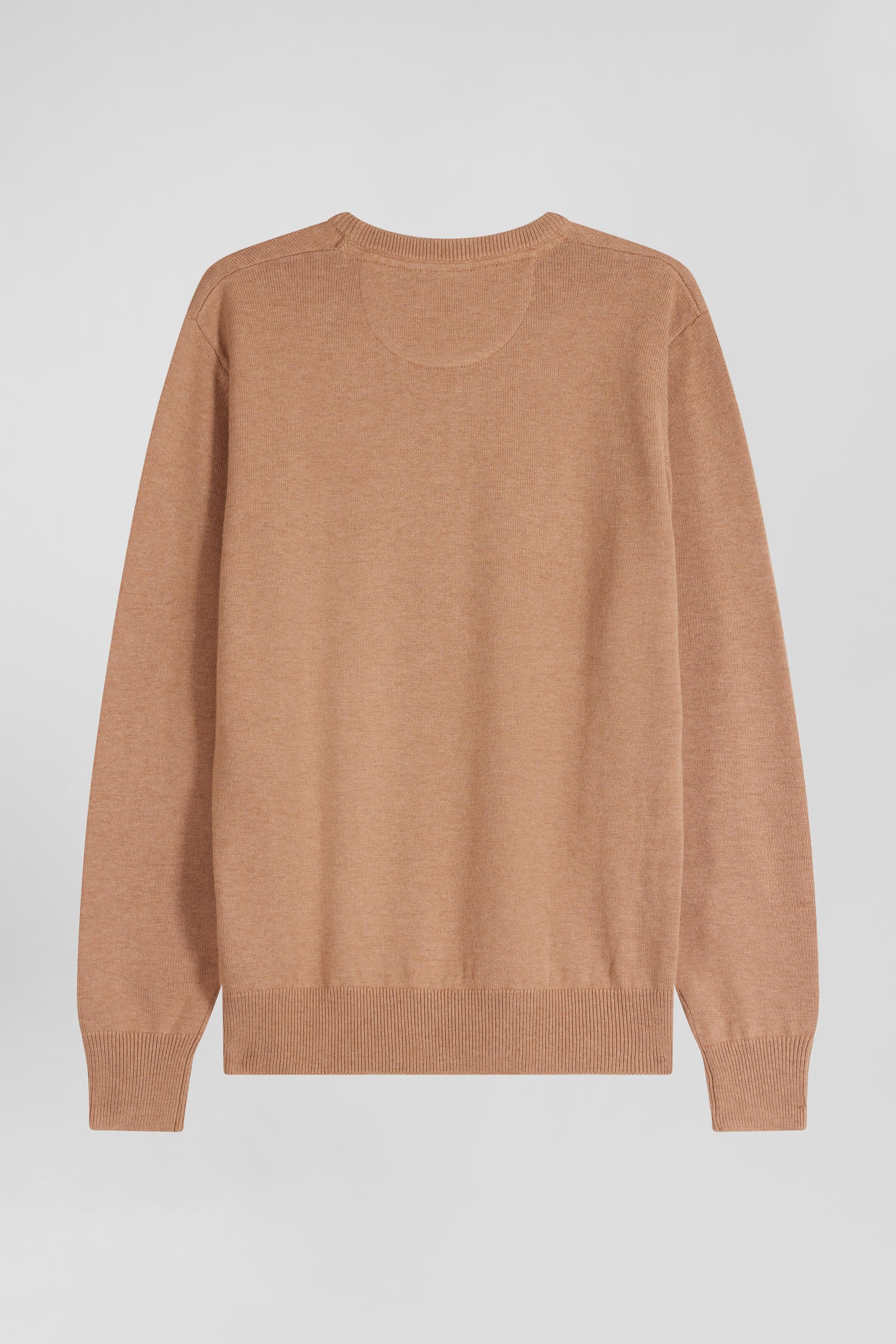 Regular camel wool and cotton crew neck jumper