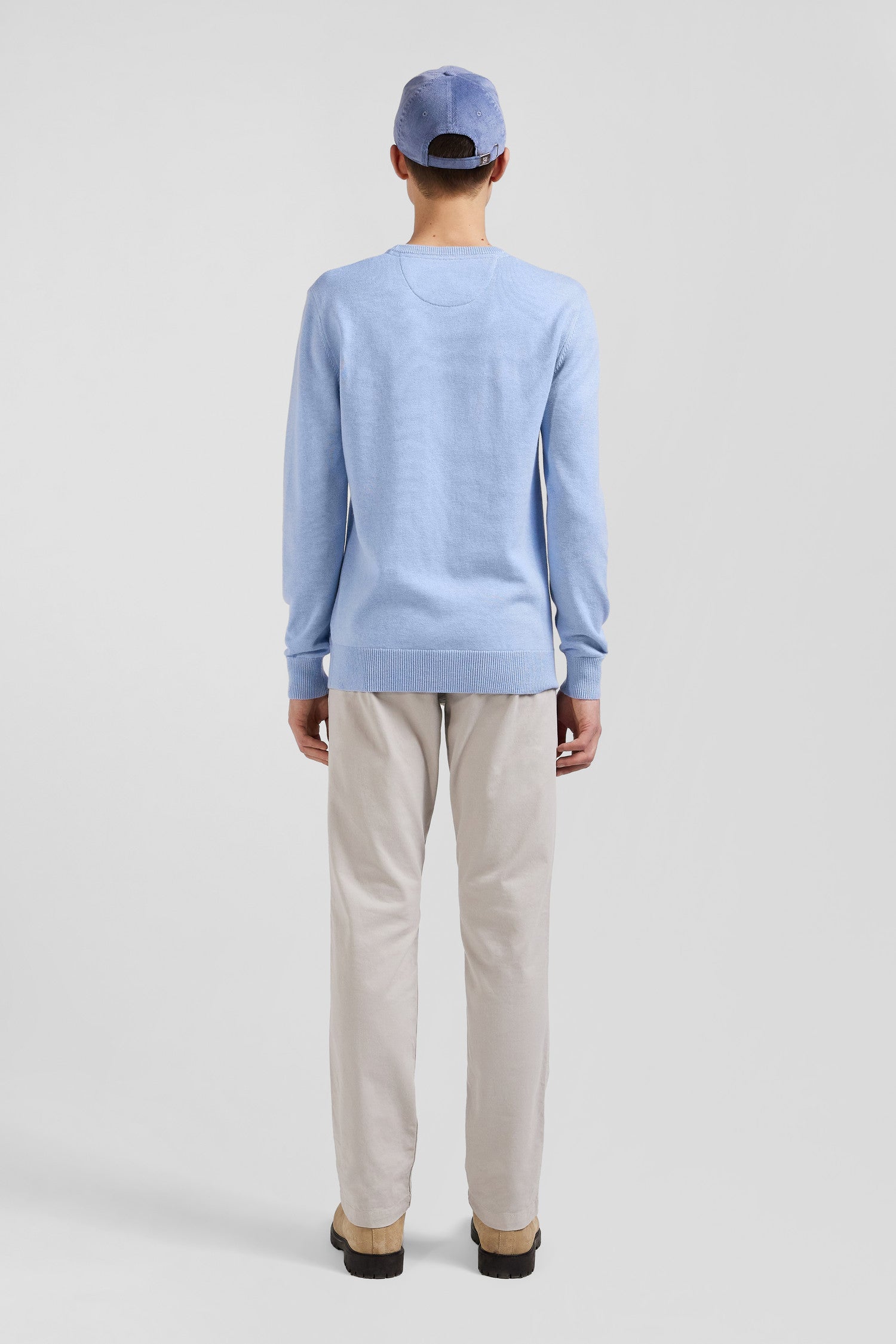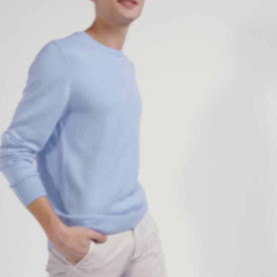 Regular sky blue wool and cotton crew neck jumper