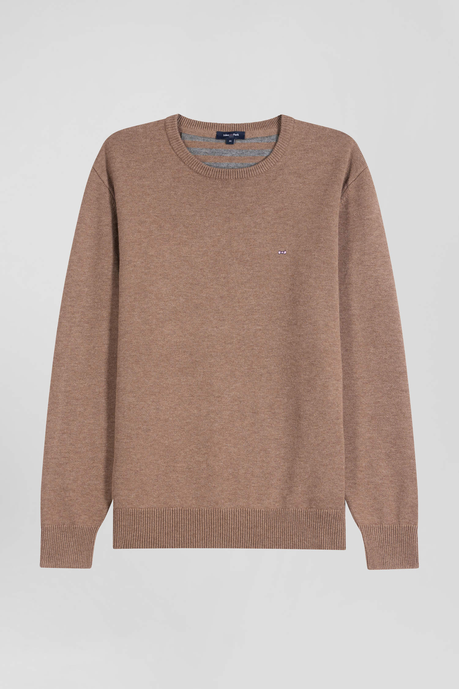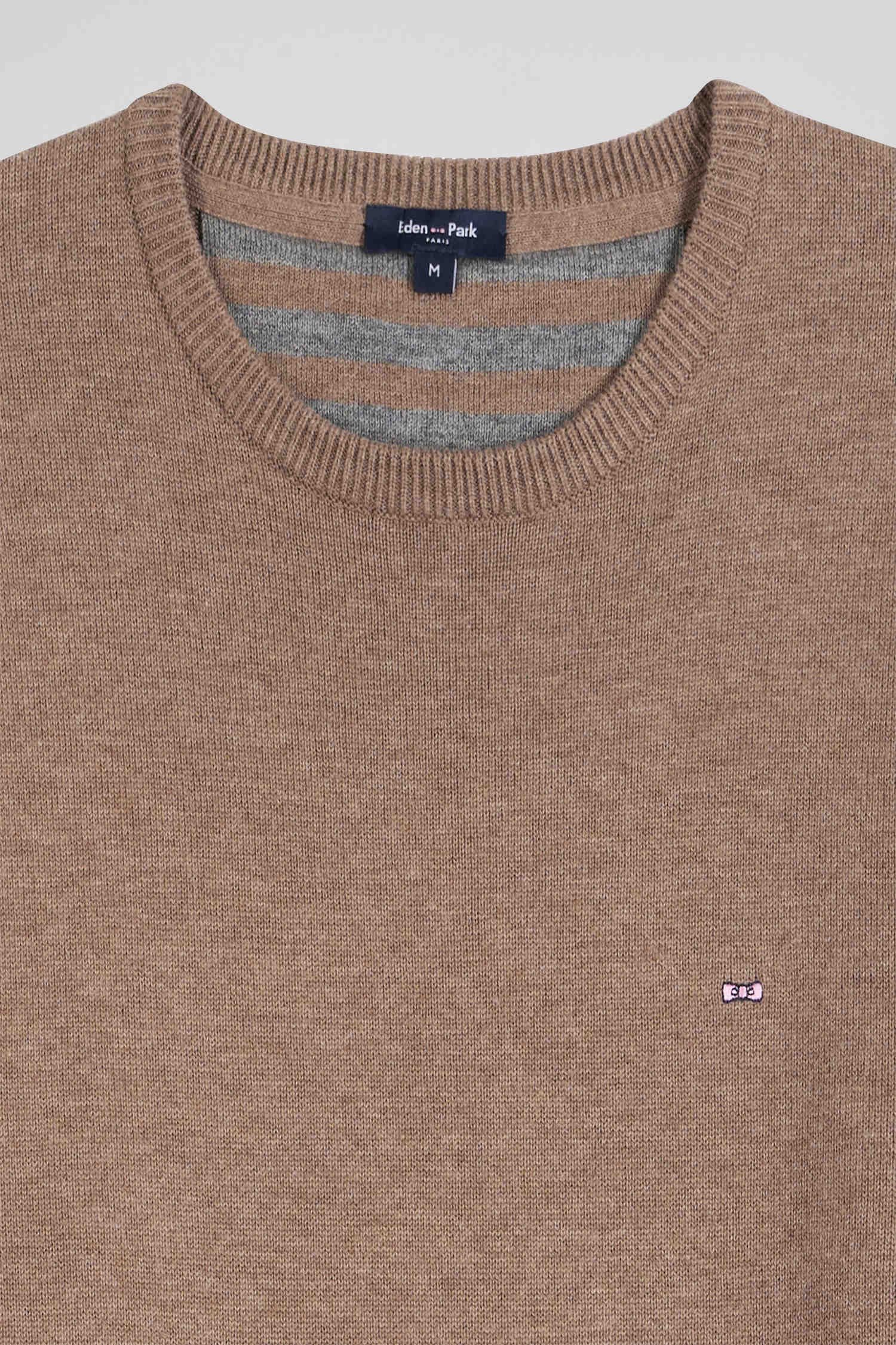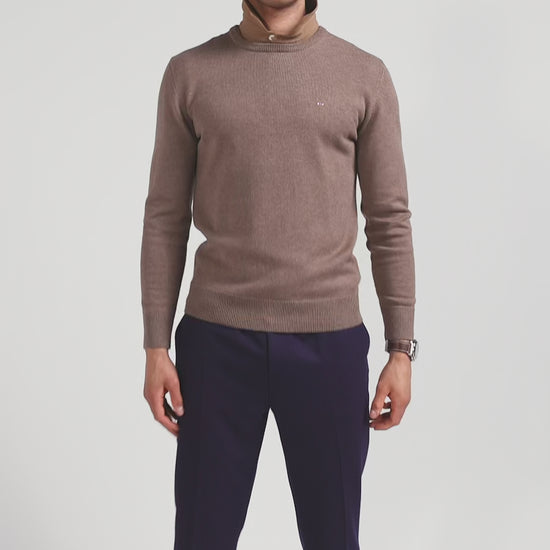 Regular brown wool and cotton crew neck jumper