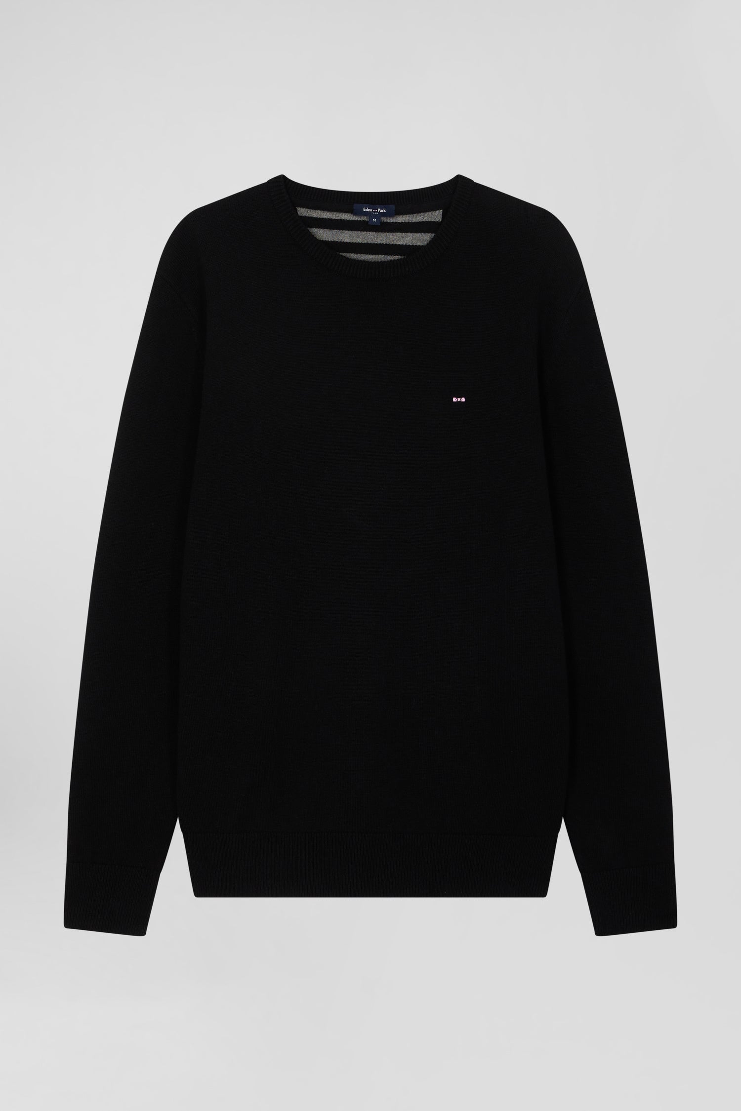 Regular black wool and cotton crew neck jumper