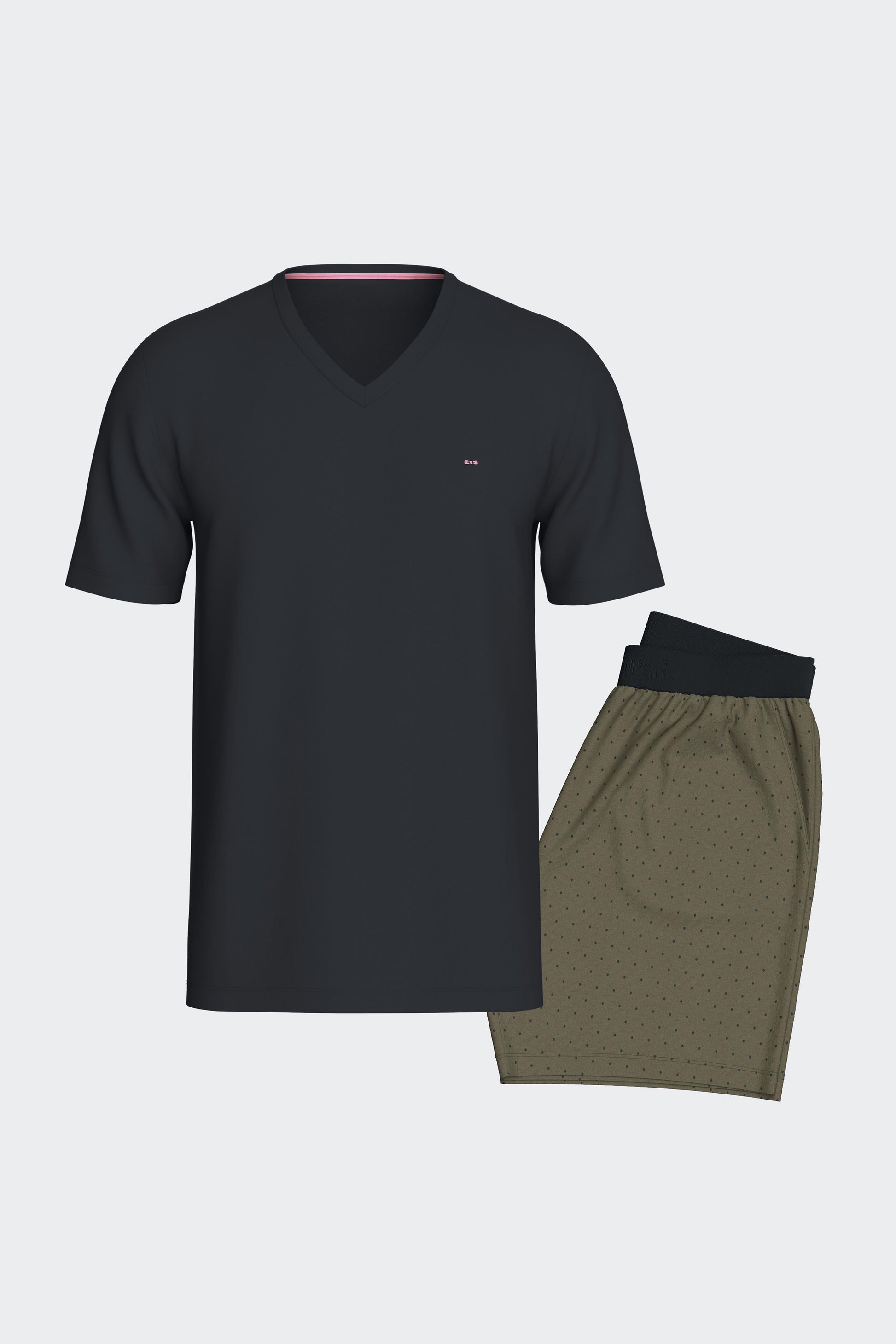 Pyjama court en coton kaki et marine