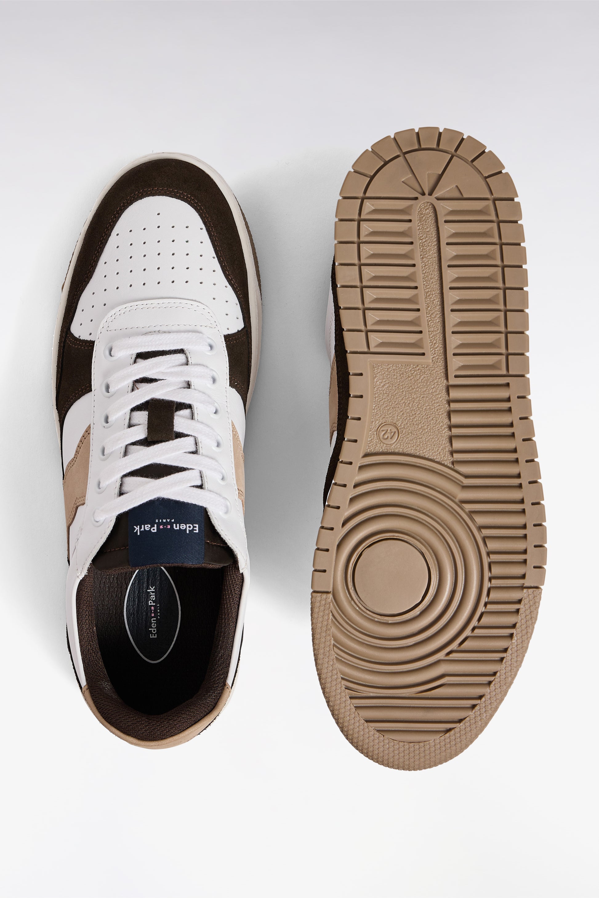 This pair of low-rise sneakers skilfully mixes smooth leather, suede and contrasting inserts. Its structured silhouette rests on a sturdy sole, underlining its graphic allure. A modern model, at the crossroads of style and comfort, for a sporty-chic silhouette off the pitch.