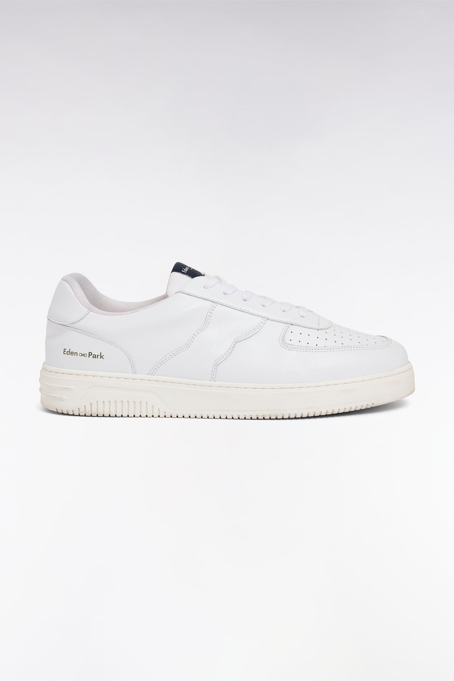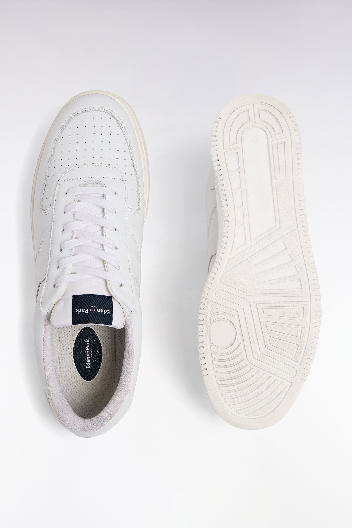 Cette basket basse associe une base en cuir lisse blanc à des empiècements contrastés qui apportent fraîcheur et modernité à la silhouette grâce à leur découpe nœud papillon. Son design épuré, ponctué de perforations discrètes sur l’avant, s'inscrit dans les codes sportswear. La semelle épaisse renforce son allure contemporaine tout en assurant confort et stabilité au quotidien. Facile à associer, cette basket accompagne aussi bien un jean qu’un pantalon plus structuré, pour une silhouette casual chic parfaitement maîtrisée. Une paire idéale pour insuffler une touche dynamique au vestiaire masculin en toute saison.