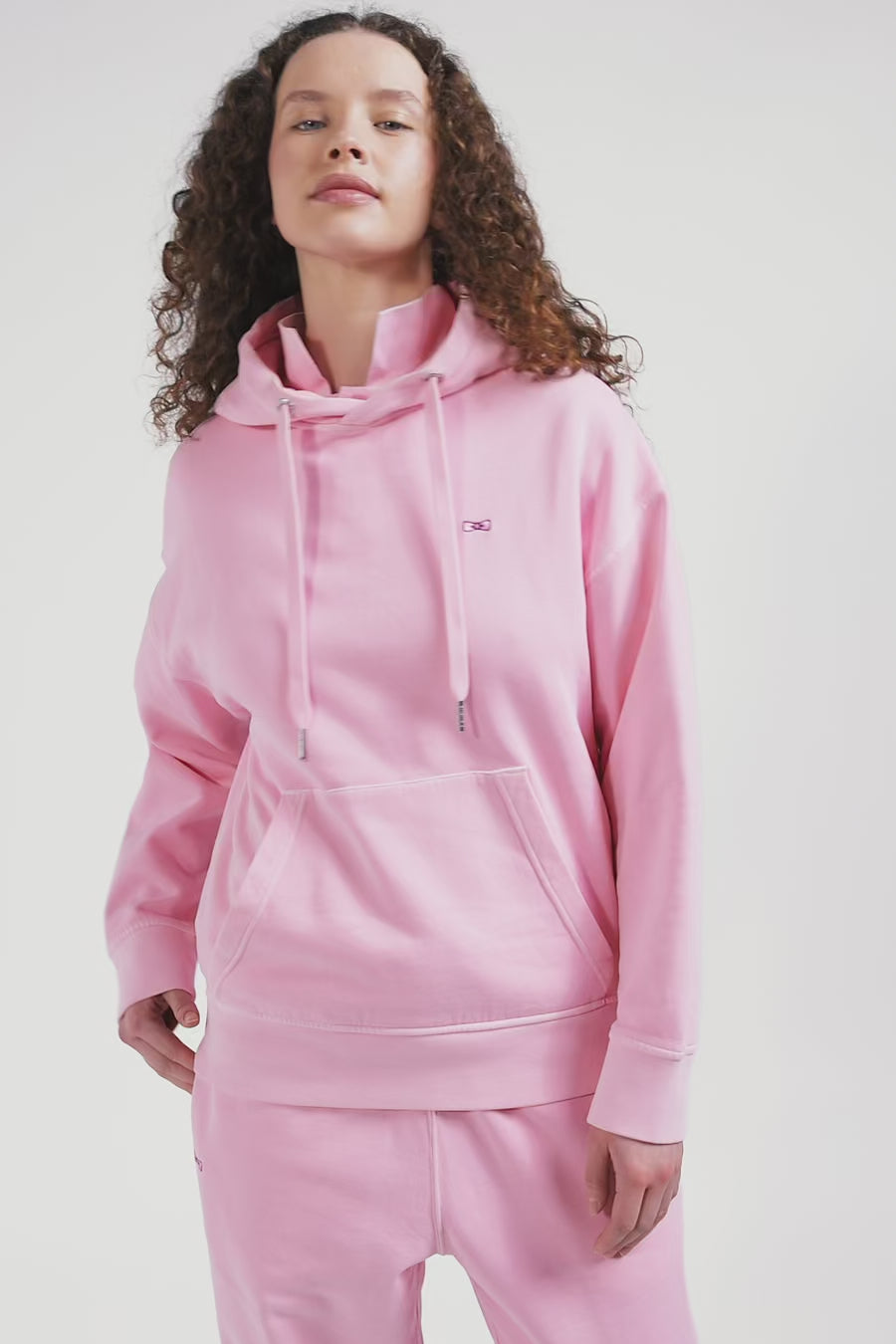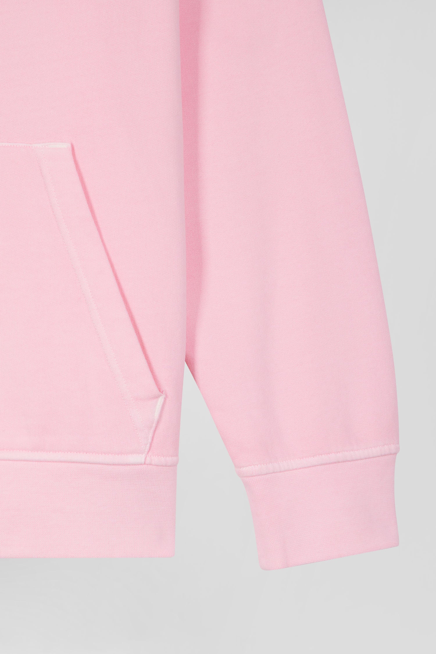 Purity and comfort perfectly define this hooded sweatshirt in overdyed cotton fleece for a more vintage washed effect. This everyday essential boasts a comfortable, trendy oversized cut that can be worn by both men and women, playing on its size and volume. This unisex sweatshirt is available in a wide range of pastel colors.